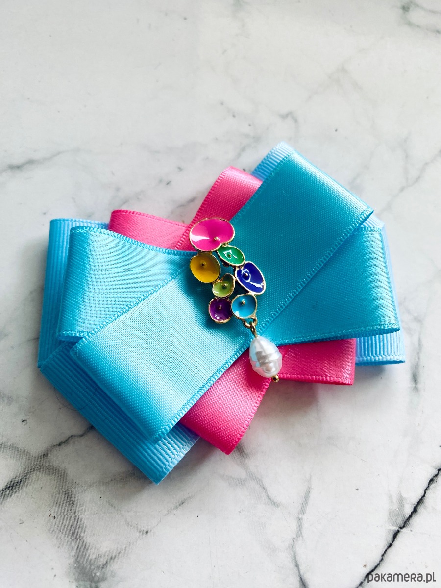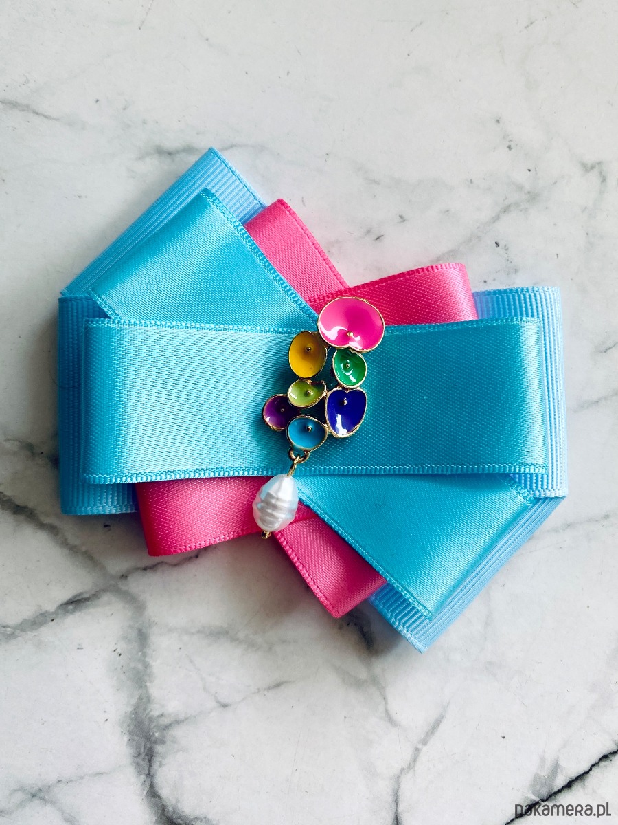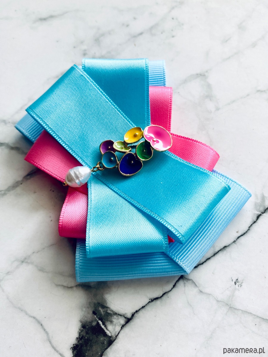 Broszka wykonana z wysokiej jakości taśm i dodatków.