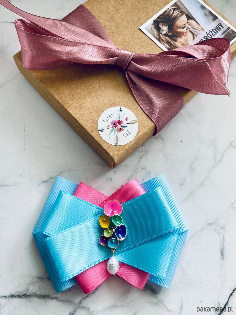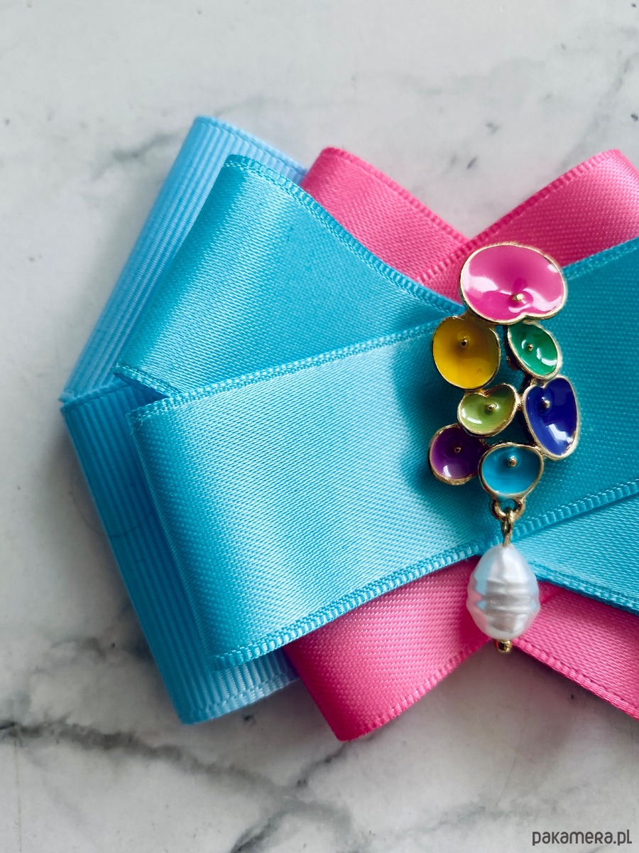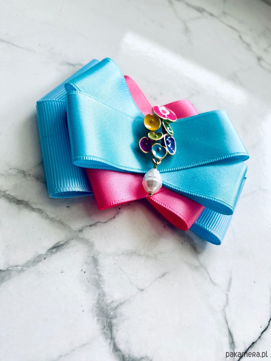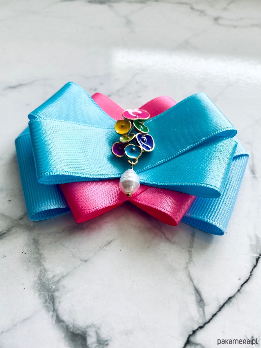 Broszka wykonana z wysokiej jakości taśm i dodatków.
