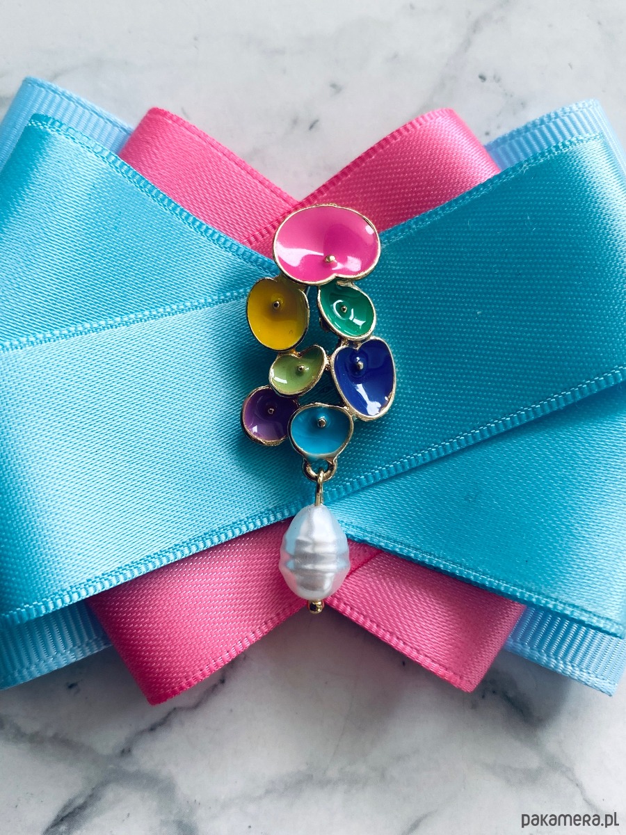 Brosza z Kolekcji COLOR z kolorowymi kwiatkami i perłą
