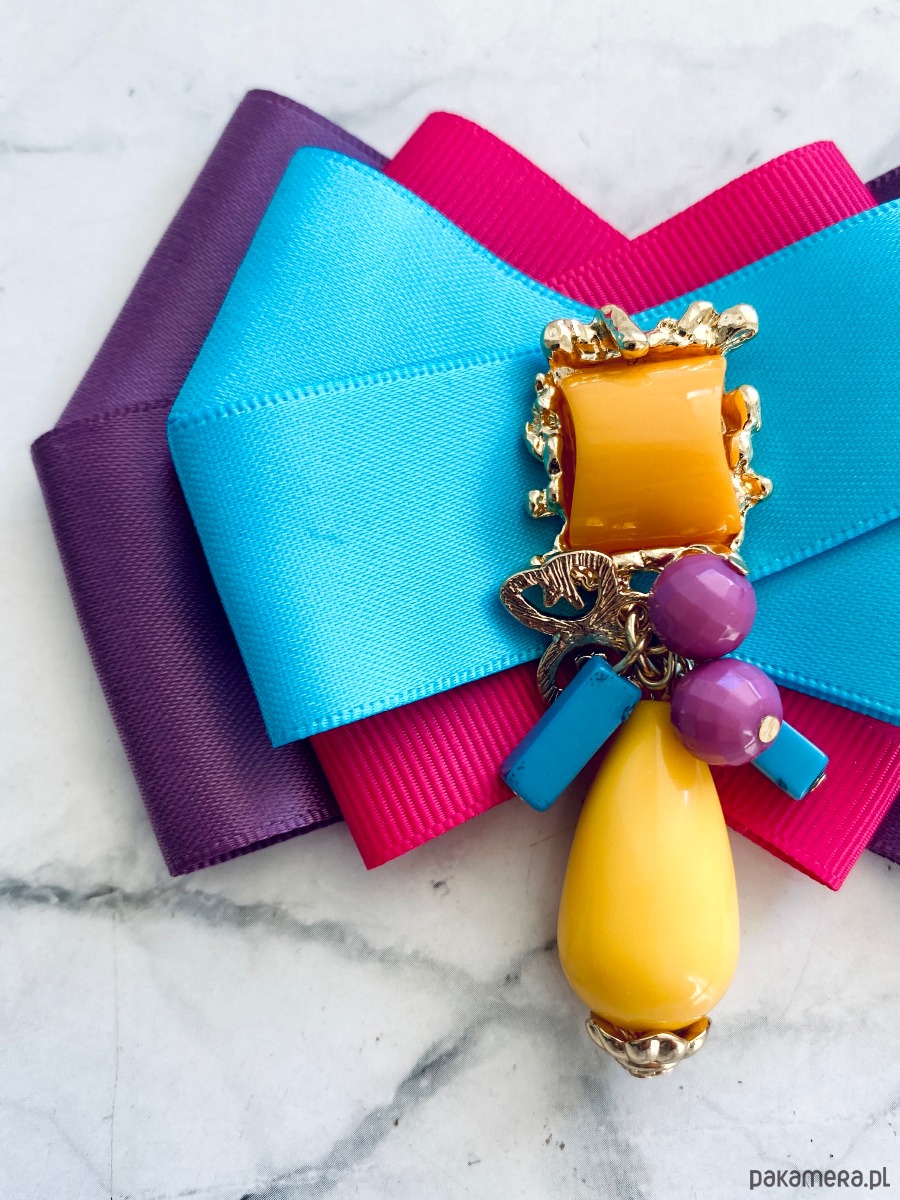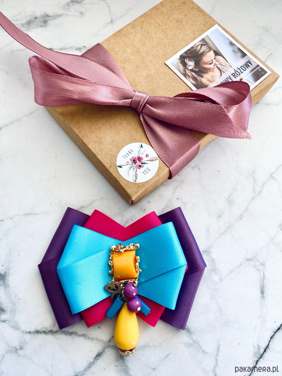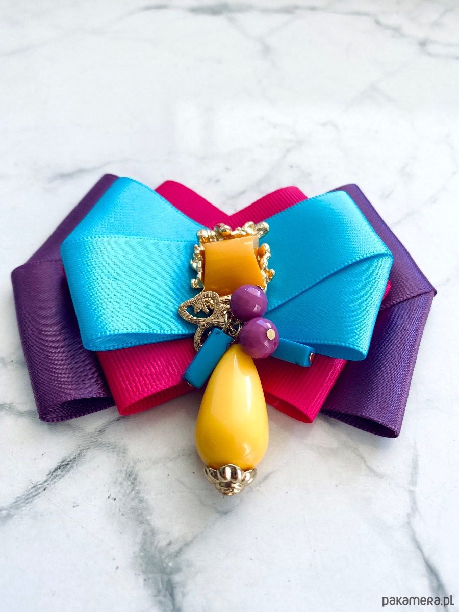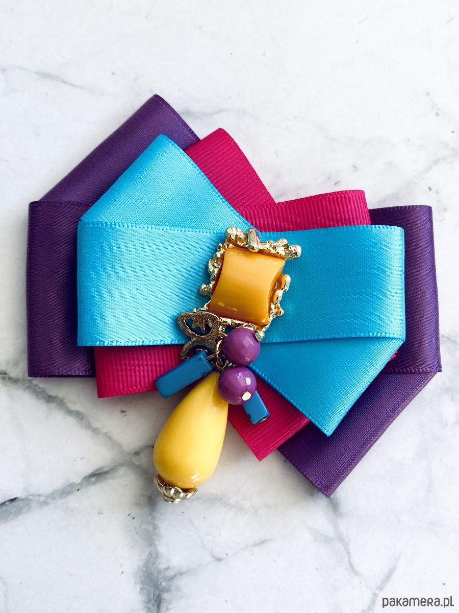 Broszka wykonana z wysokiej jakości taśm i dodatków.