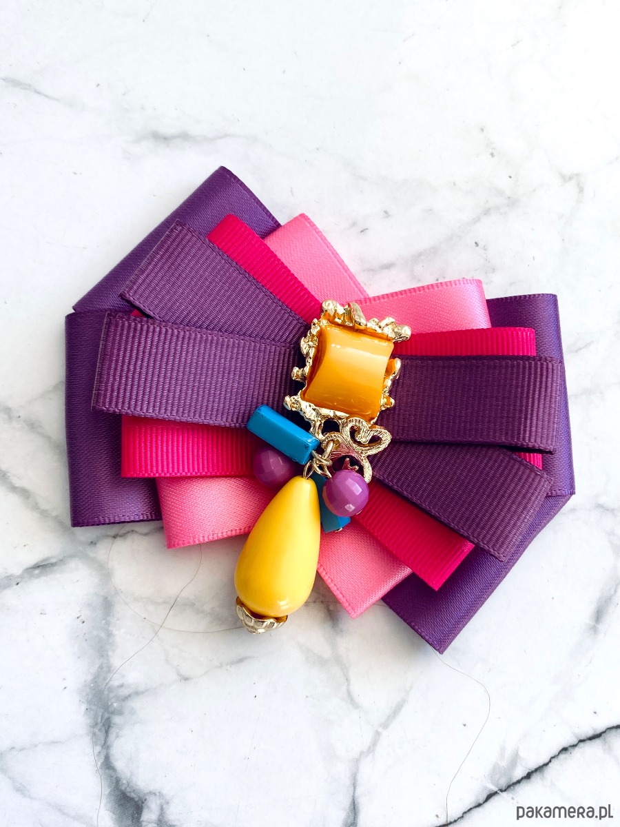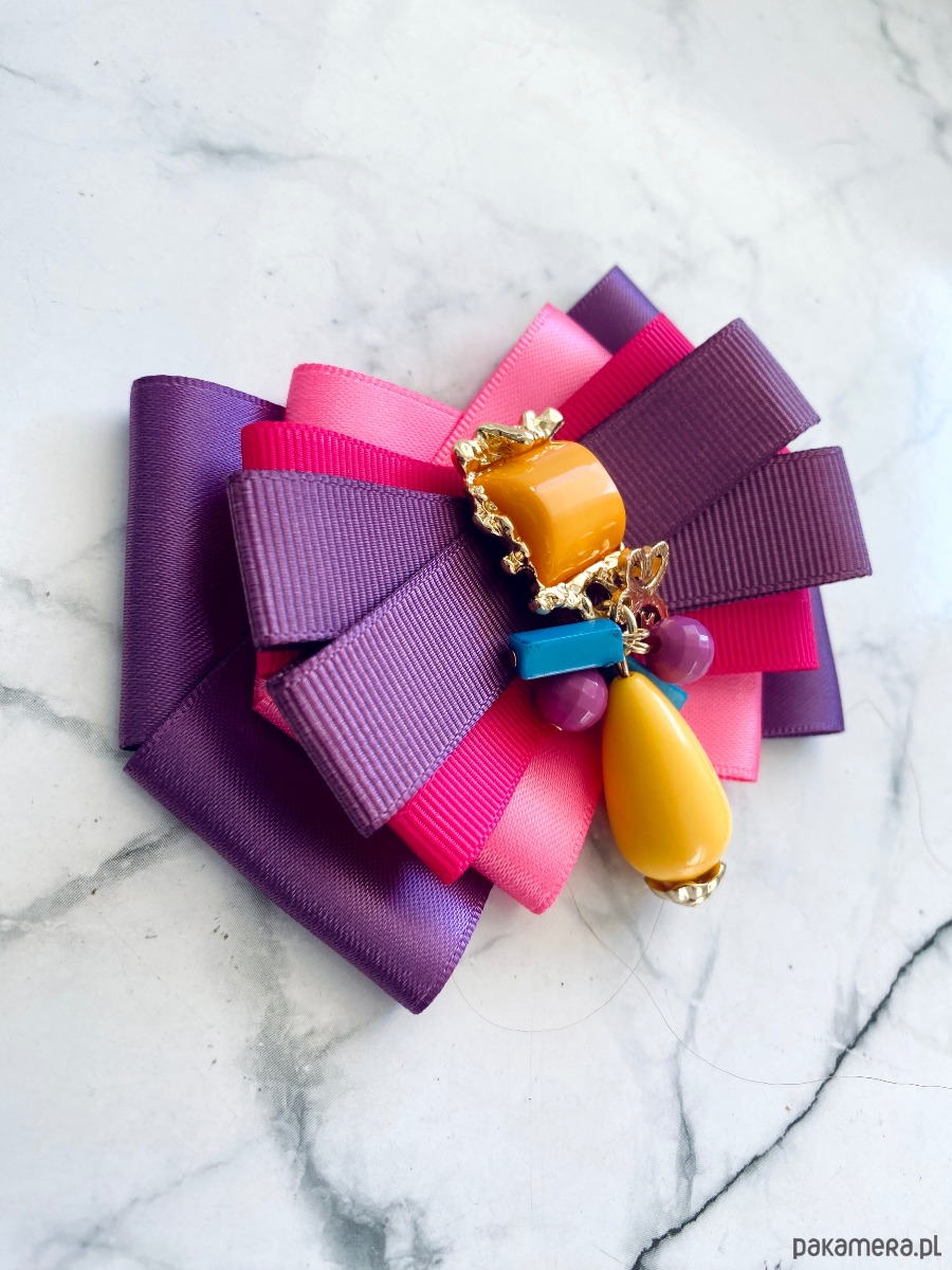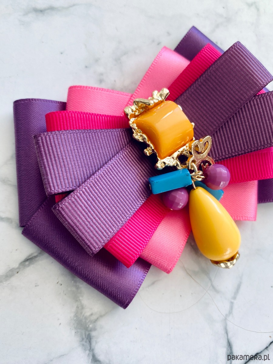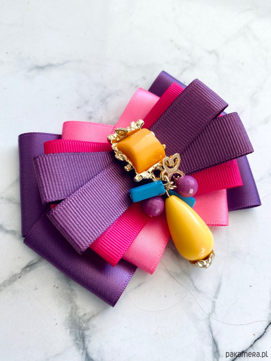 Broszka wykonana z wysokiej jakości taśm i dodatków.