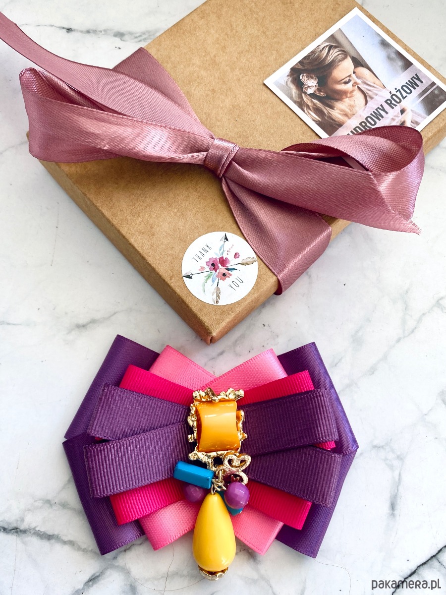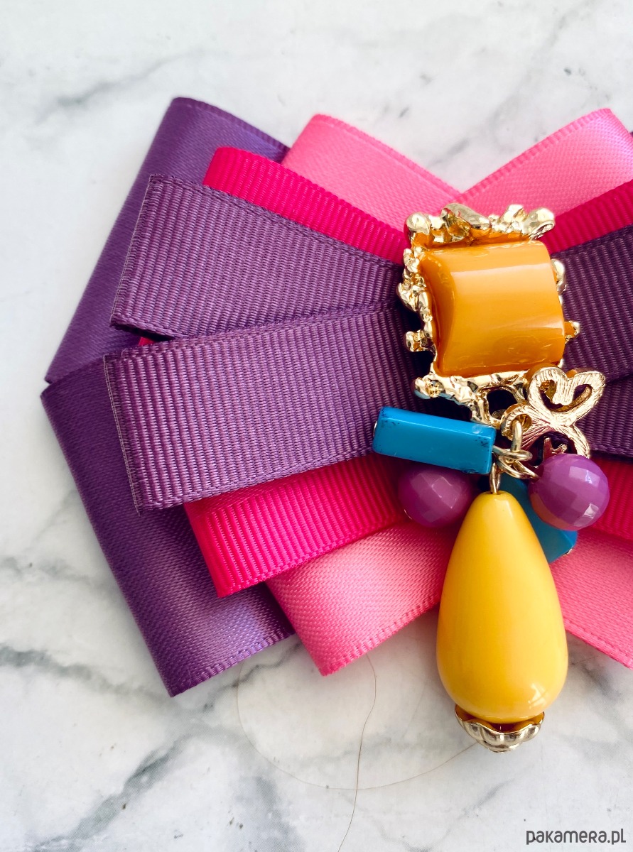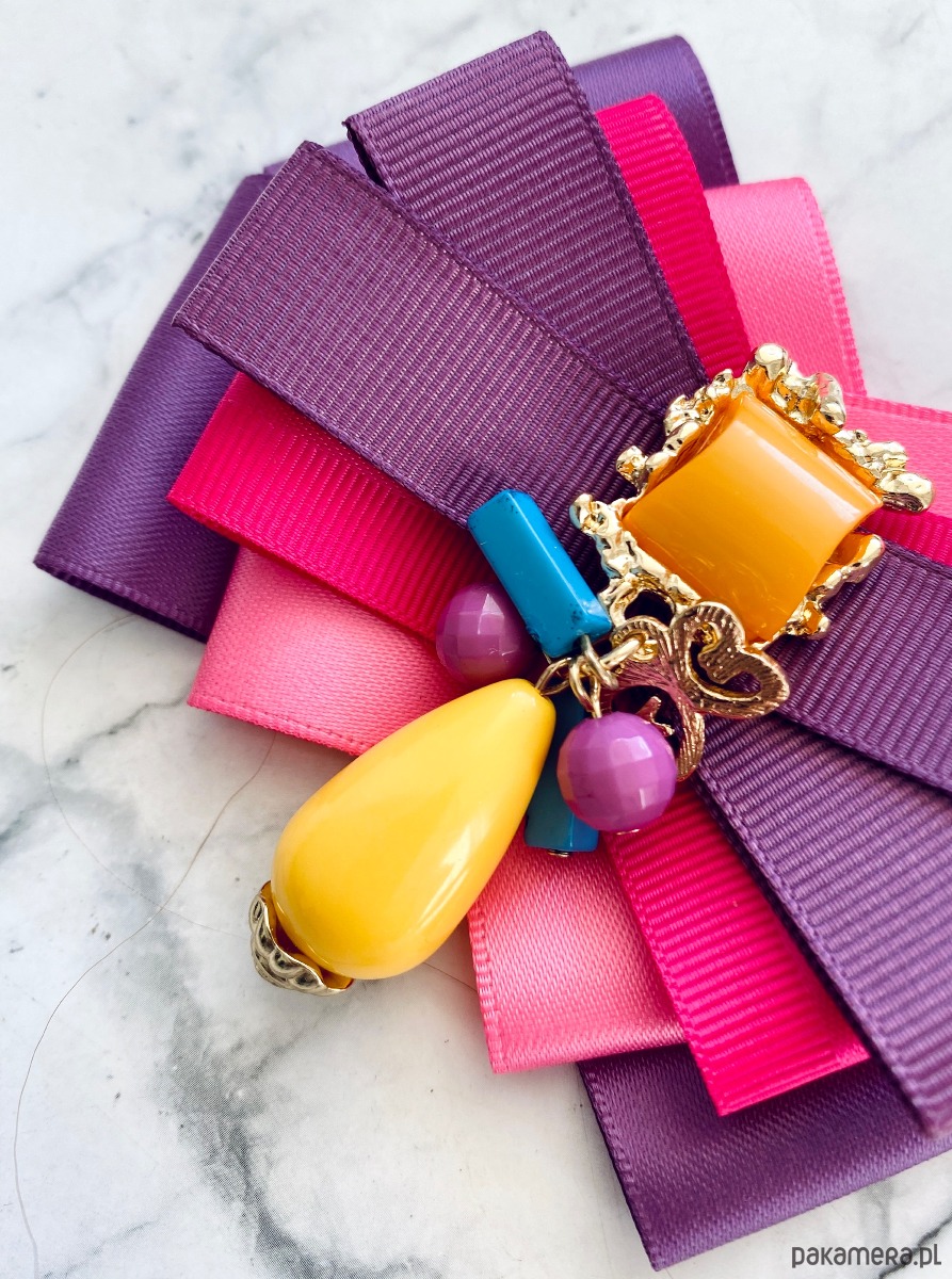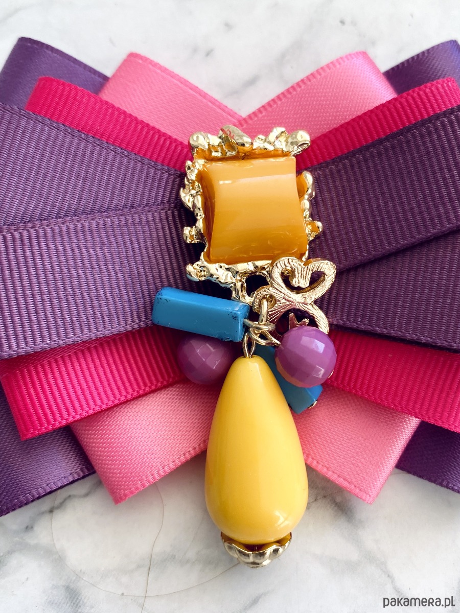 Broszka wykonana z wysokiej jakości taśm i dodatków.