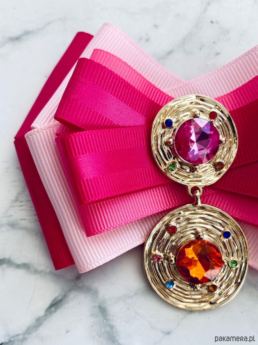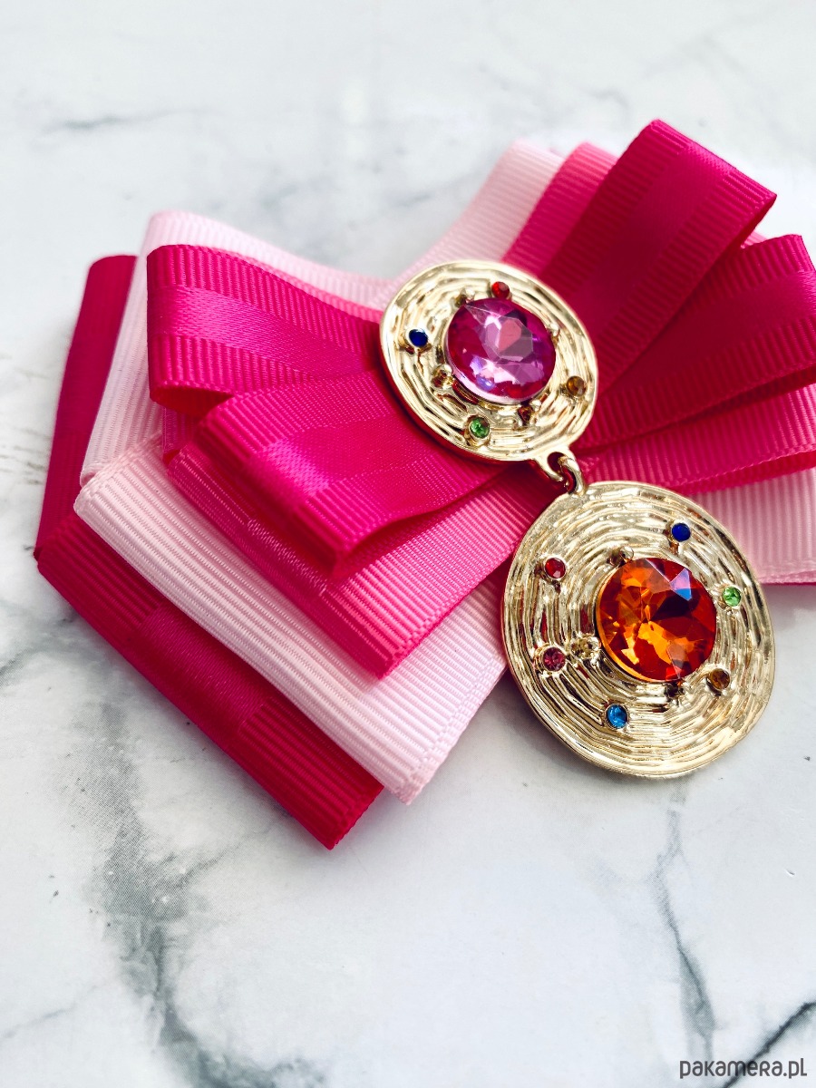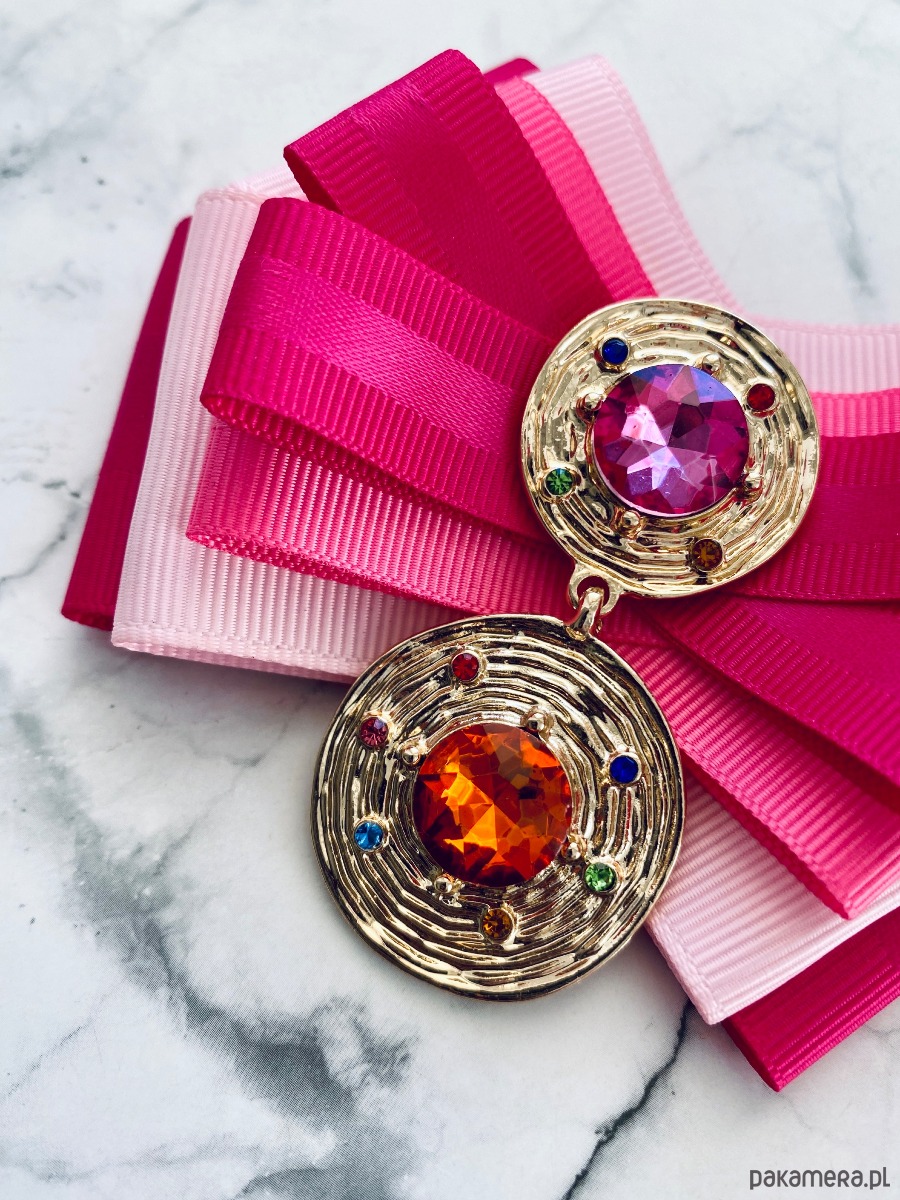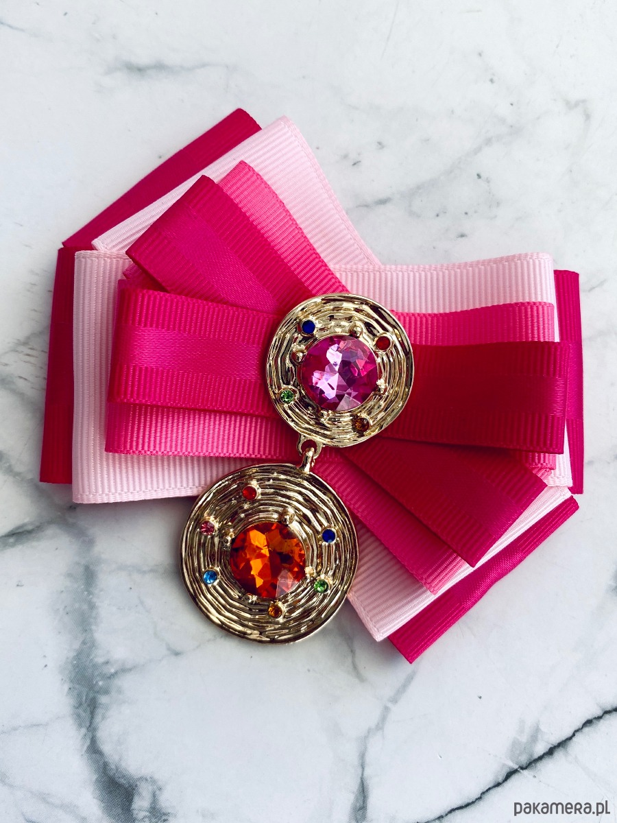 Broszka wykonana z wysokiej jakości taśm i dodatków.
