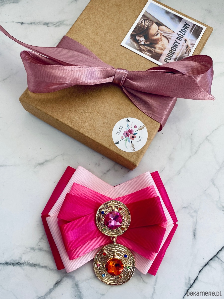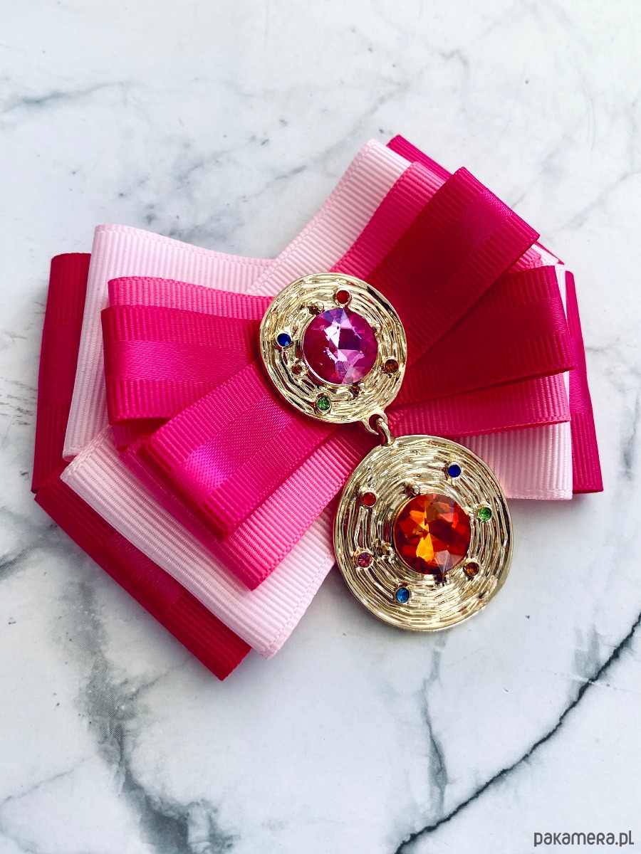 Broszka wykonana z wysokiej jakości taśm i dodatków.