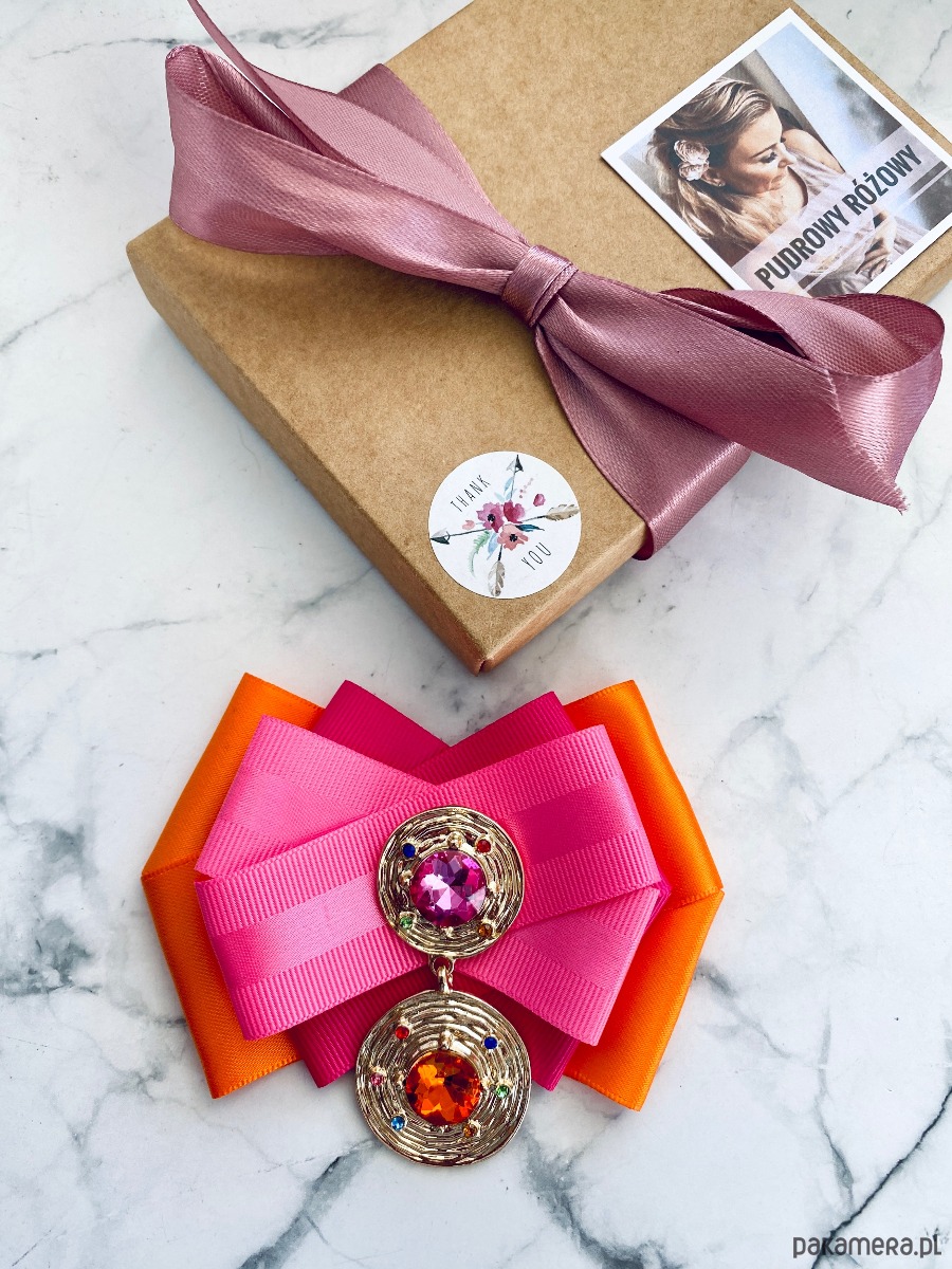 Broszka wykonana z wysokiej jakości taśm i dodatków.