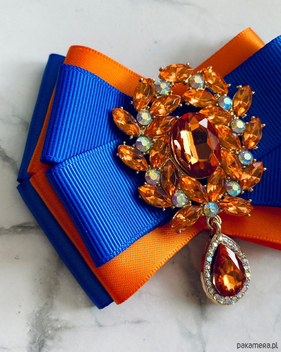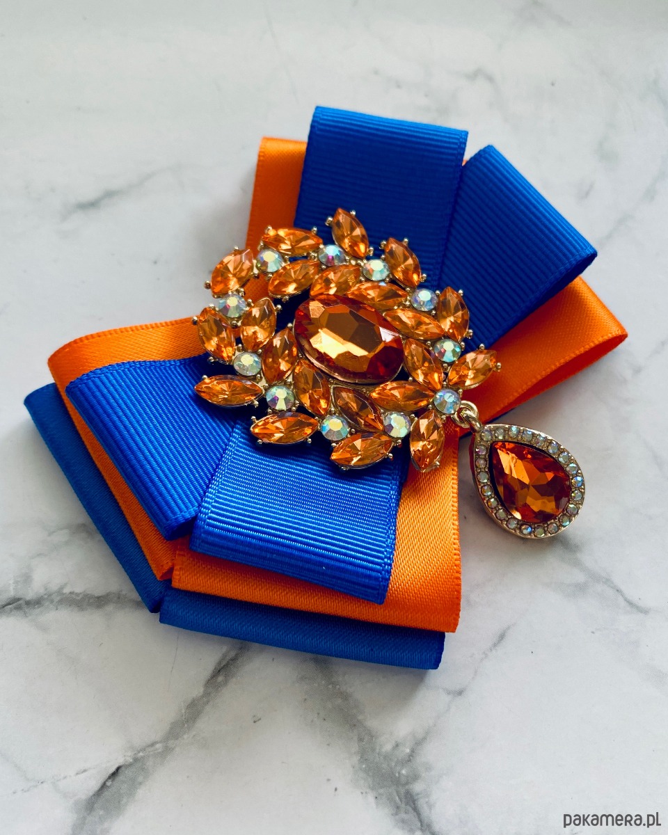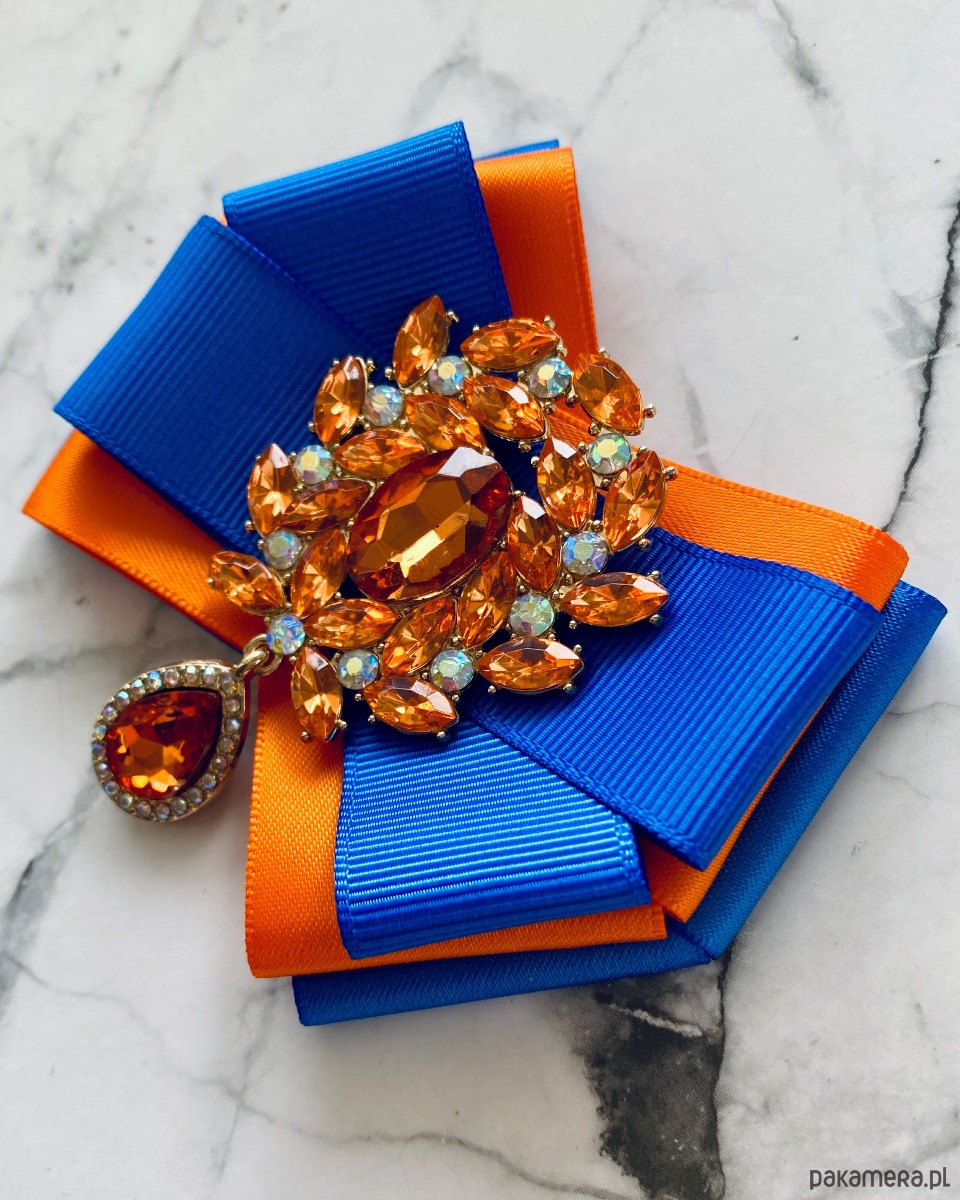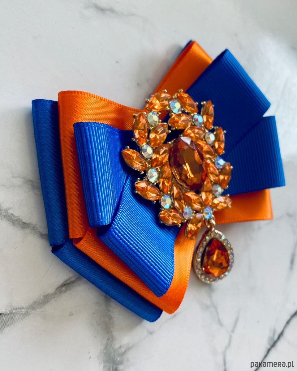 Broszka wykonana z wysokiej jakości taśm i dodatków.