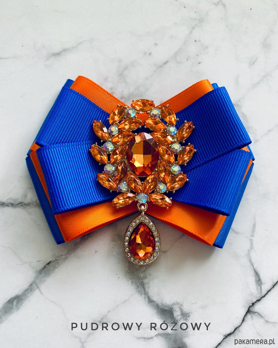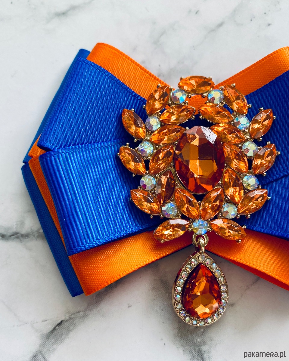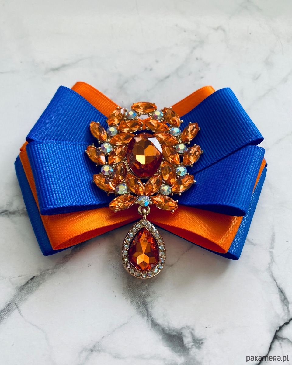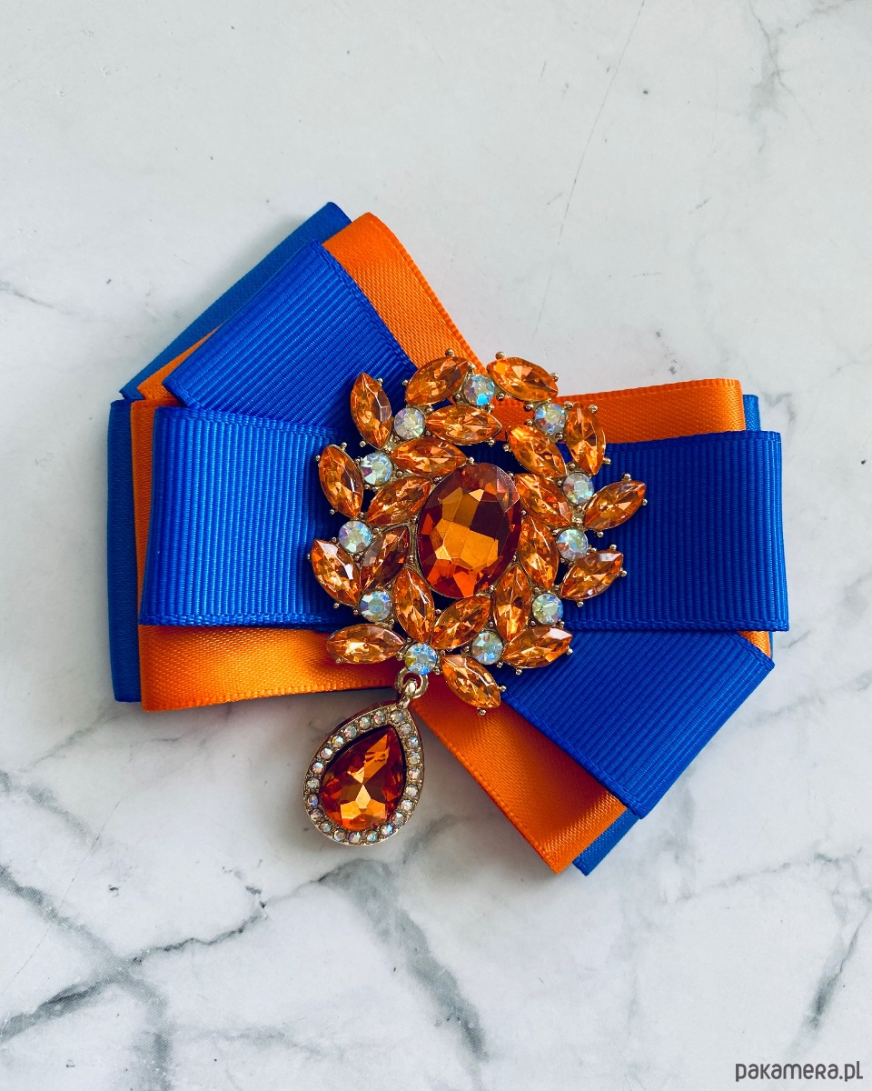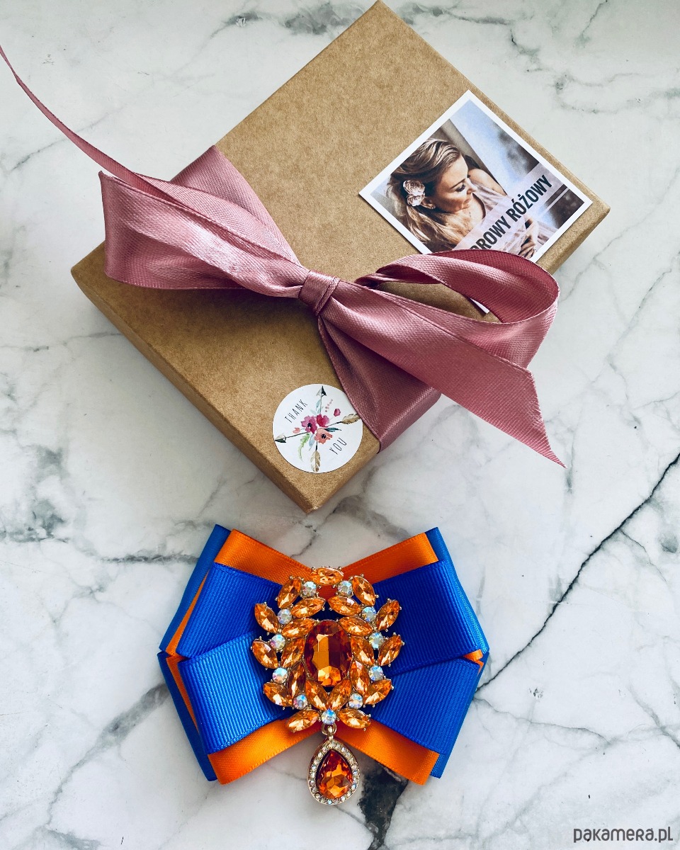 Broszka wykonana z wysokiej jakości taśm i dodatków.