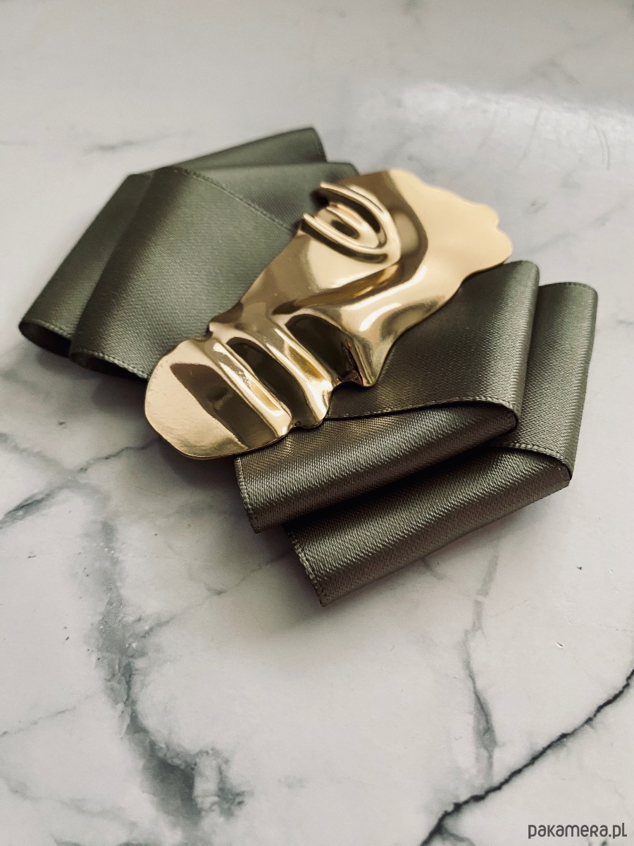 Broszka wykonana z wysokiej jakości taśm i dodatków.