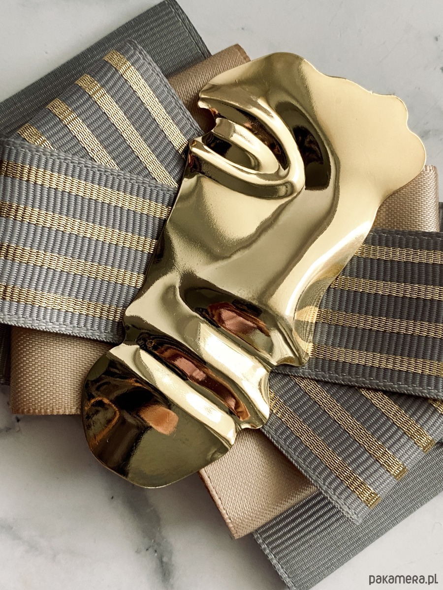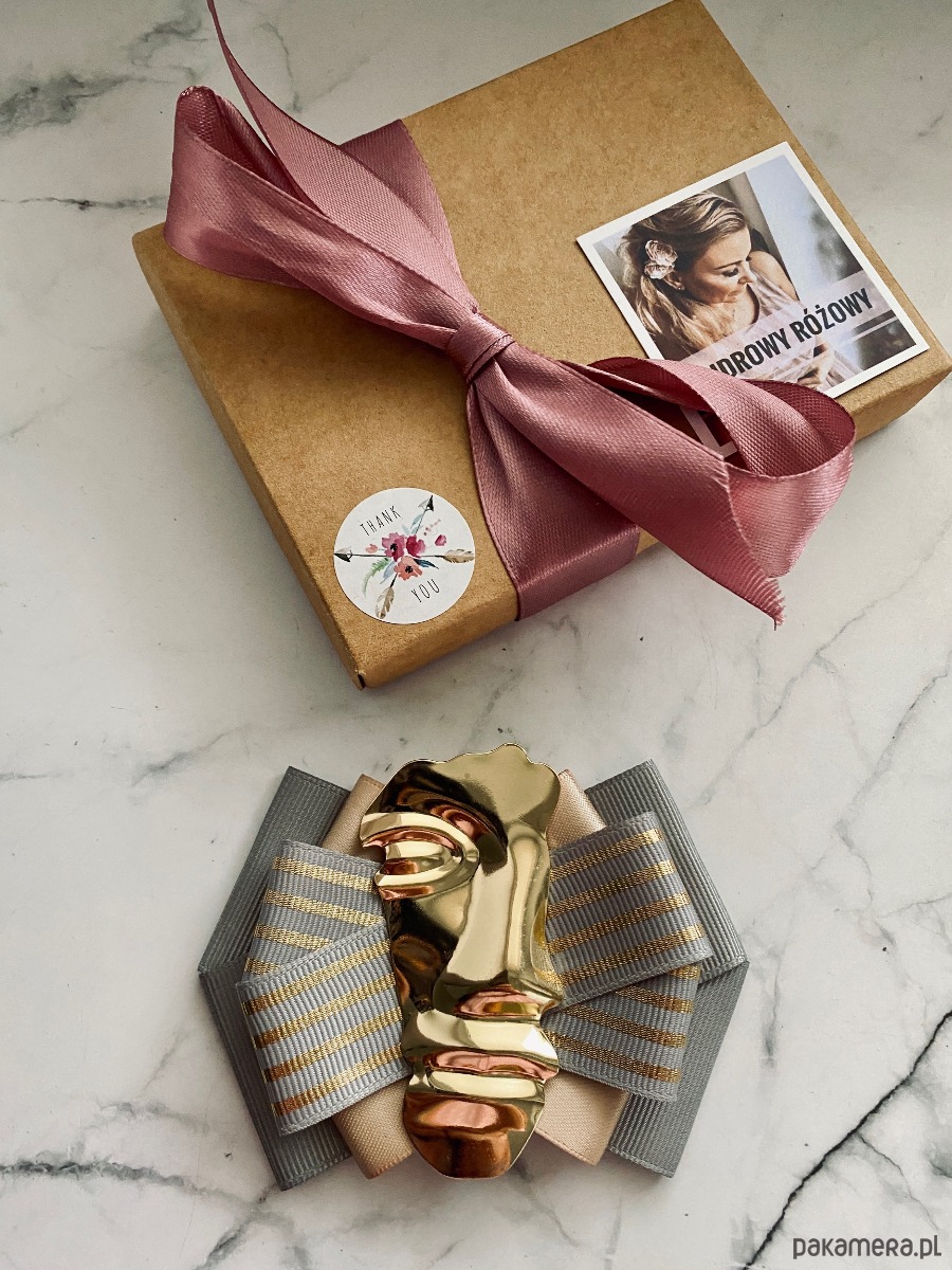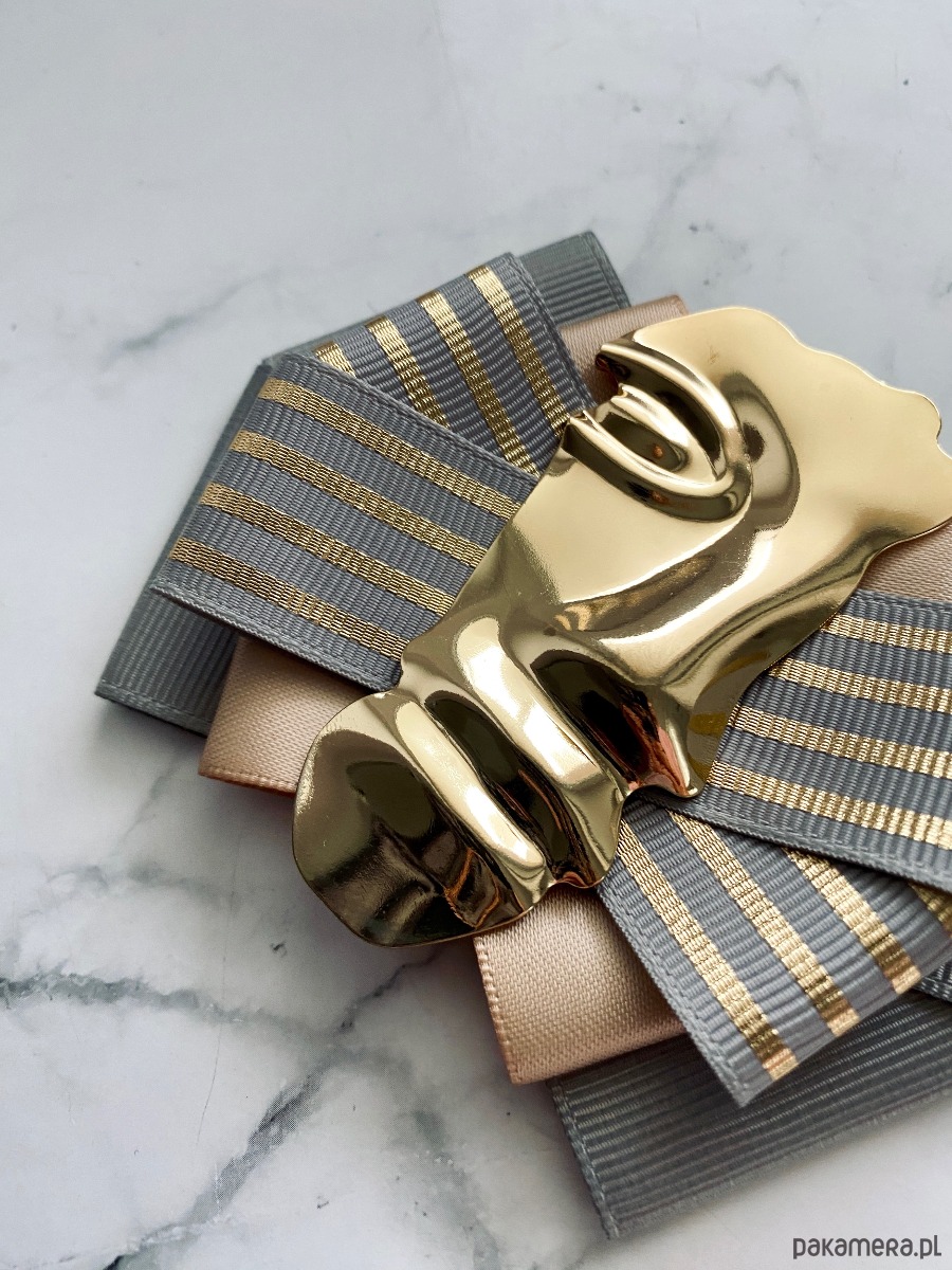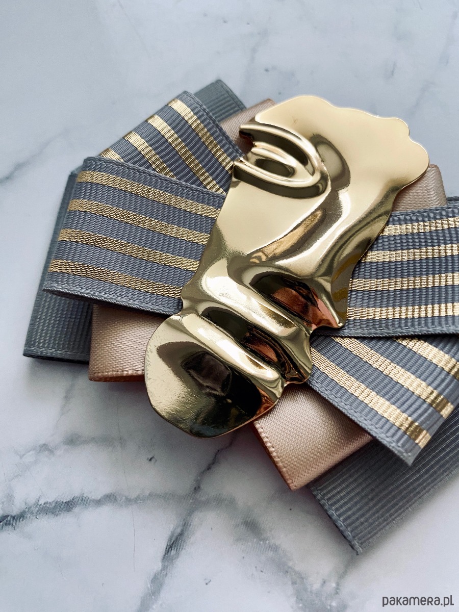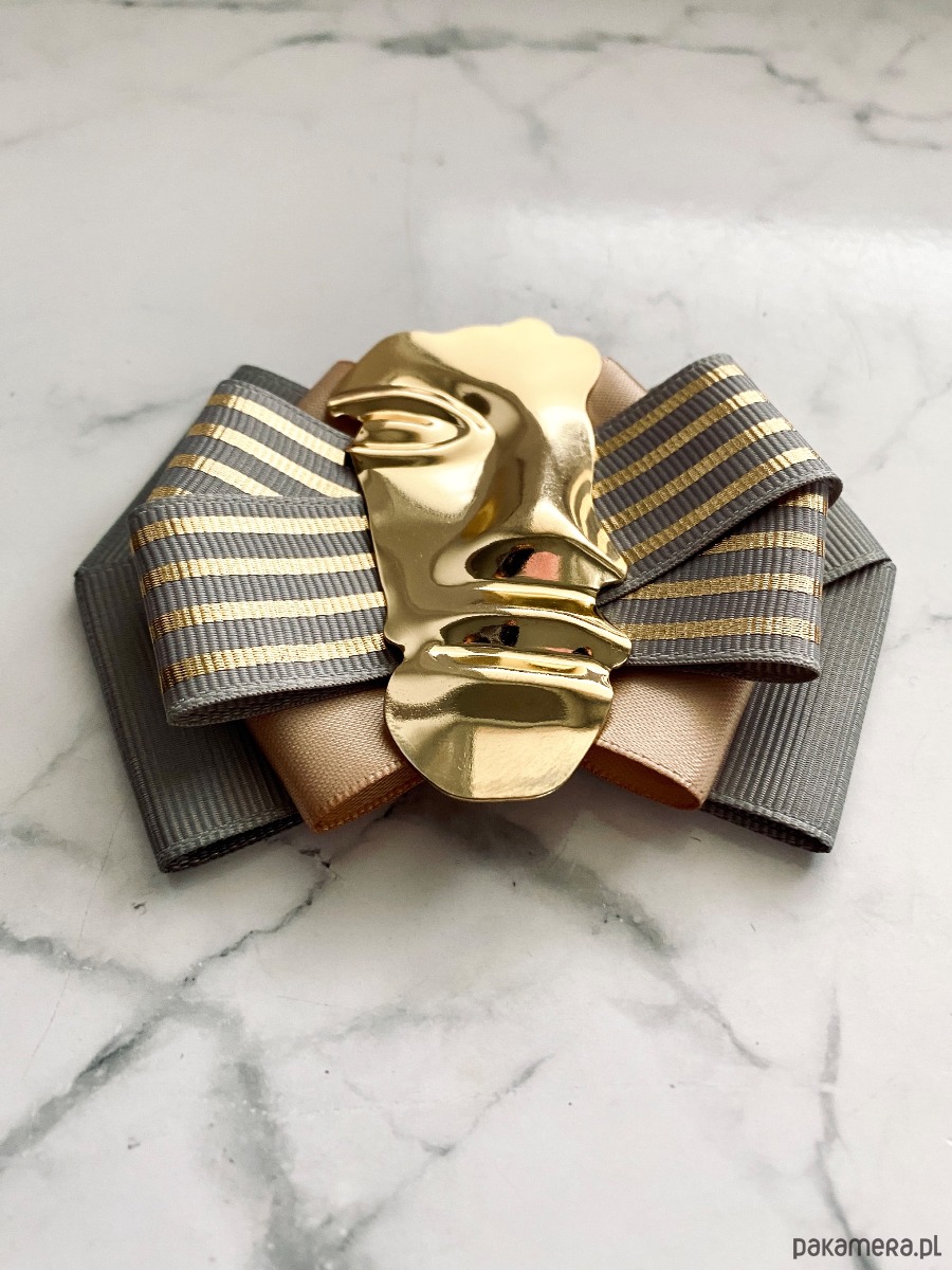 Broszka wykonana z wysokiej jakości taśm i dodatków.