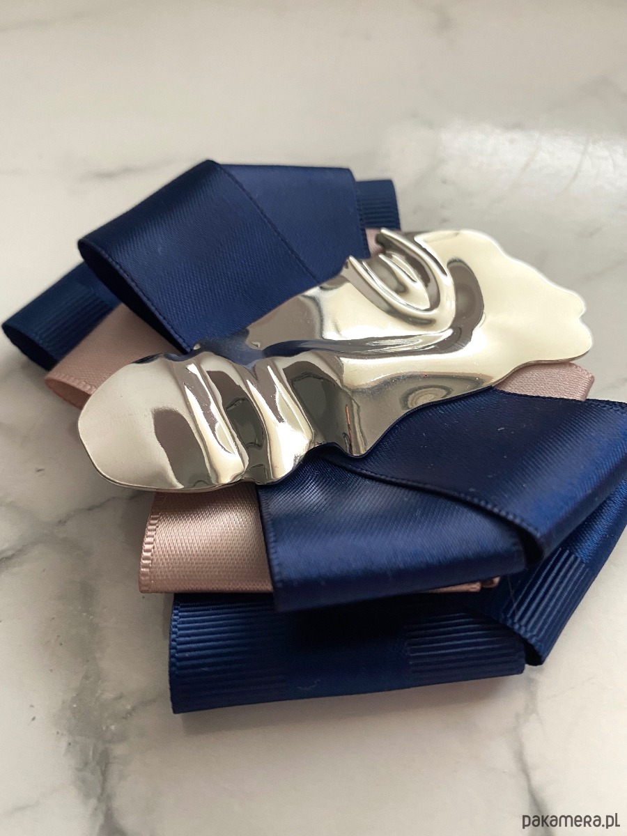 Broszka wykonana z wysokiej jakości taśm i dodatków.