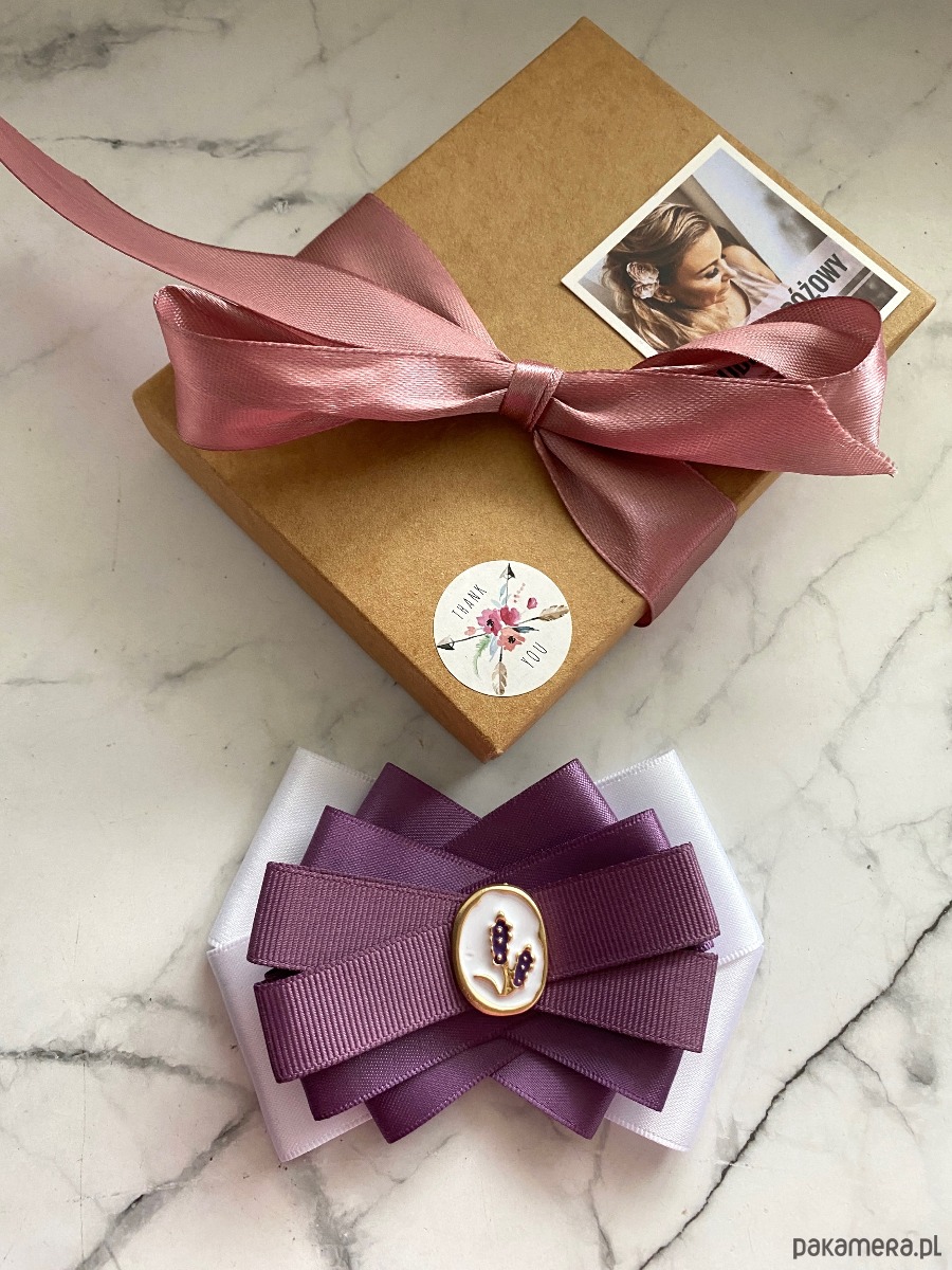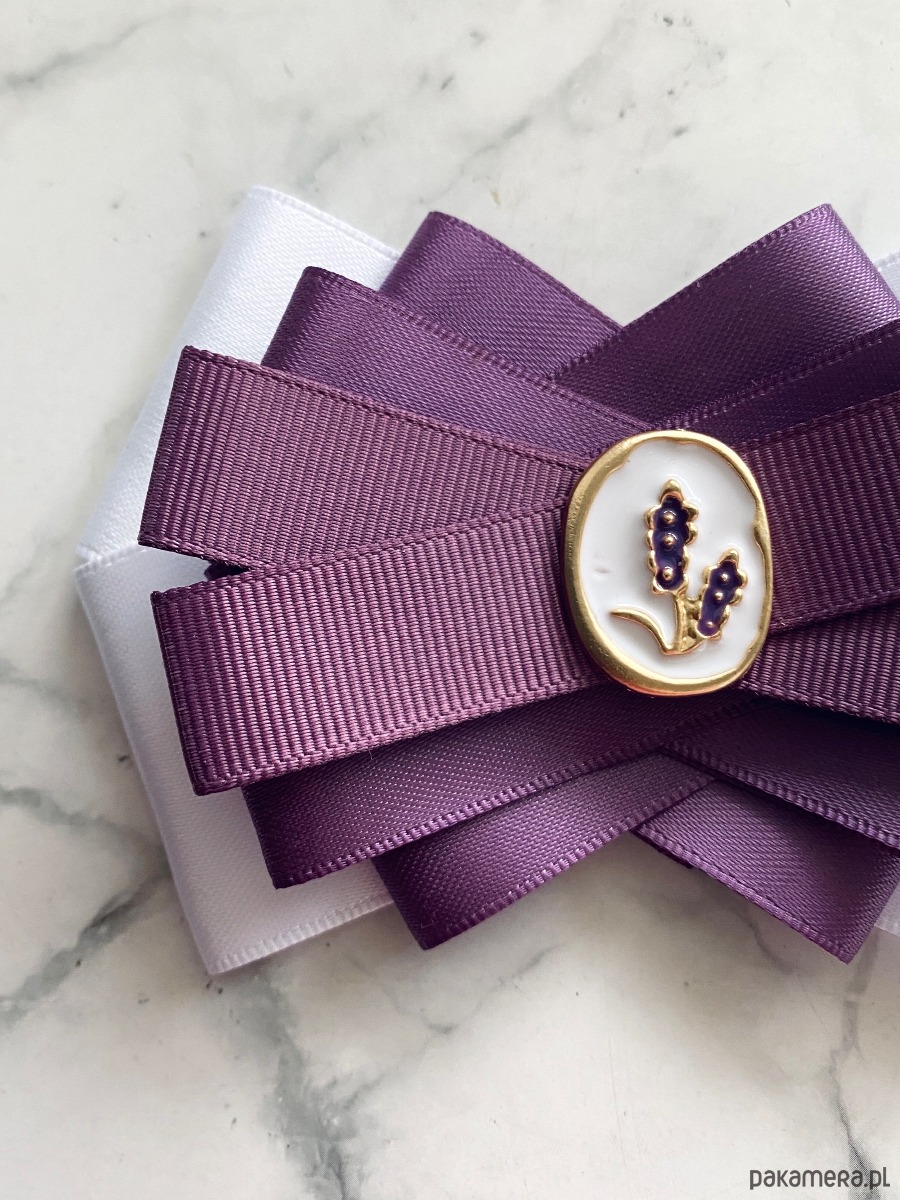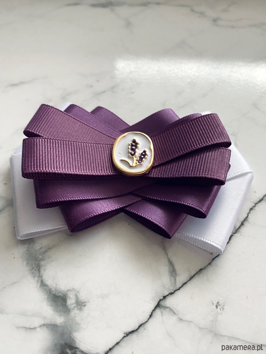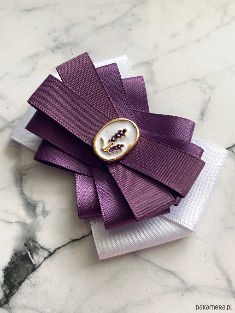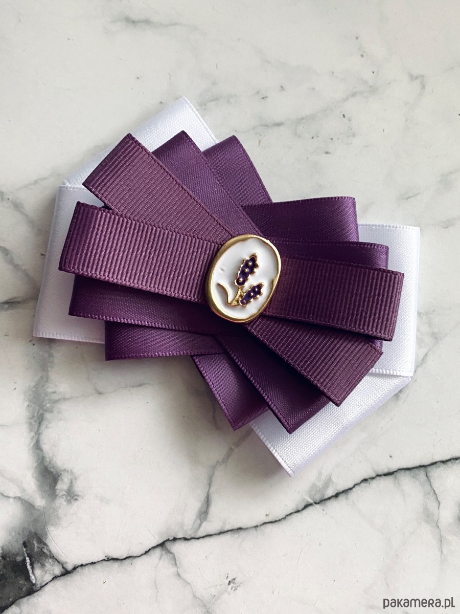 Delikatna i bardzo kobieca Brosza w odcieniach fioletu z subtelną ozdobą biżuteryjną.