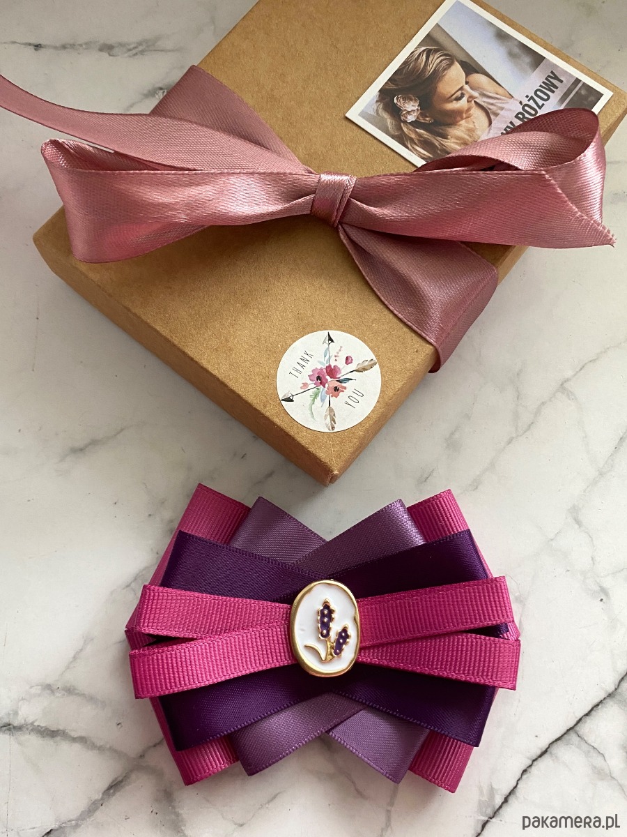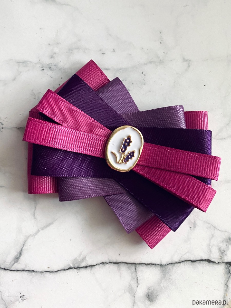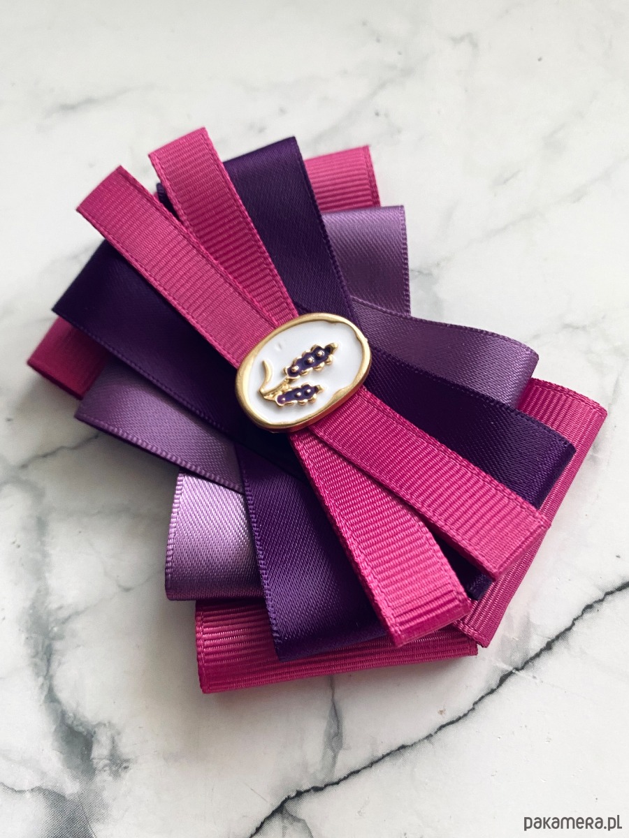 Delikatna i bardzo kobieca Brosza w odcieniach fioletu z subtelną ozdobą biżuteryjną.