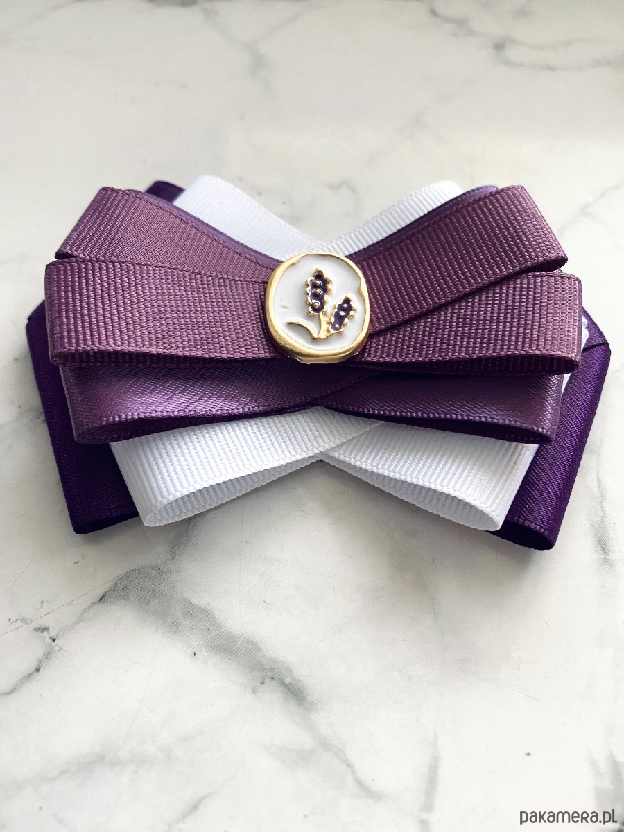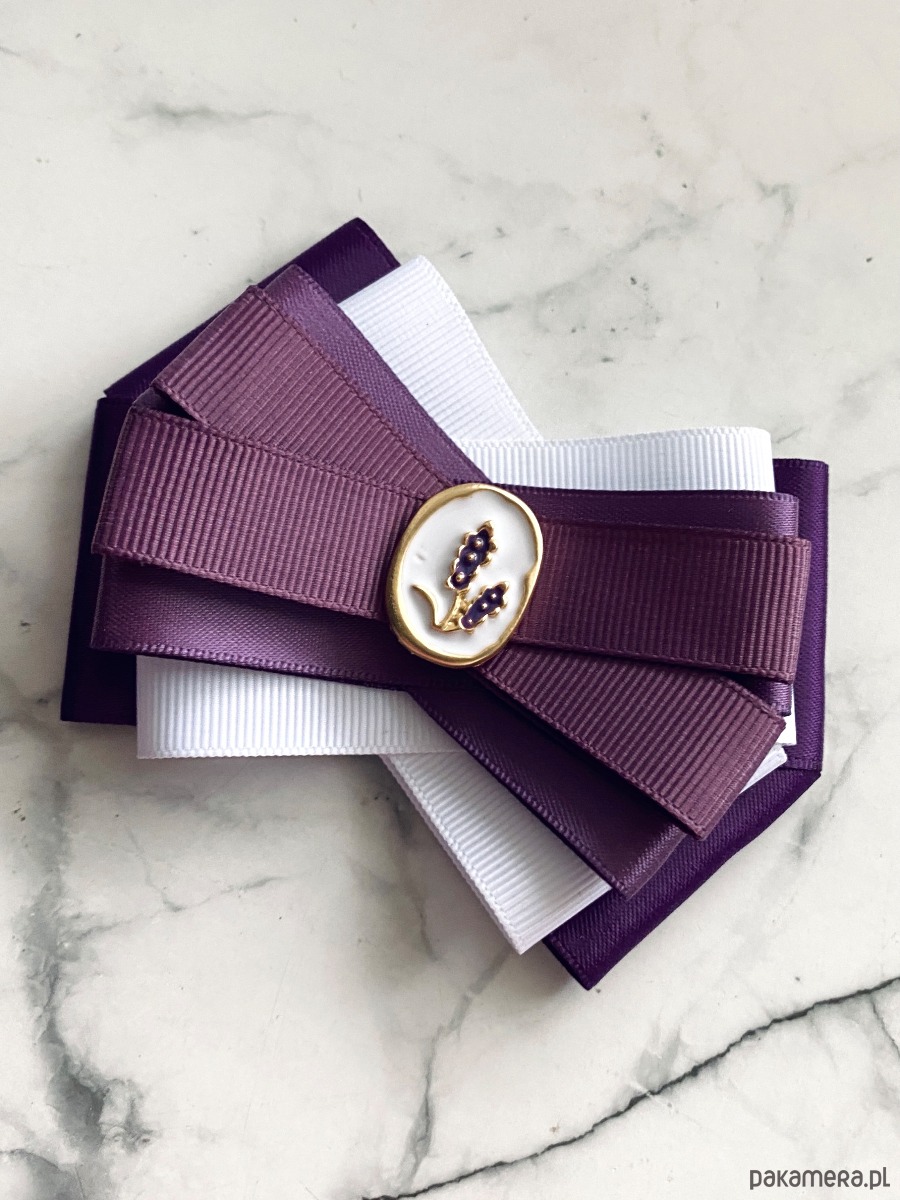 Delikatna i bardzo kobieca Brosza w odcieniach fioletu z subtelną ozdobą biżuteryjną.