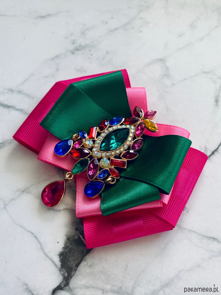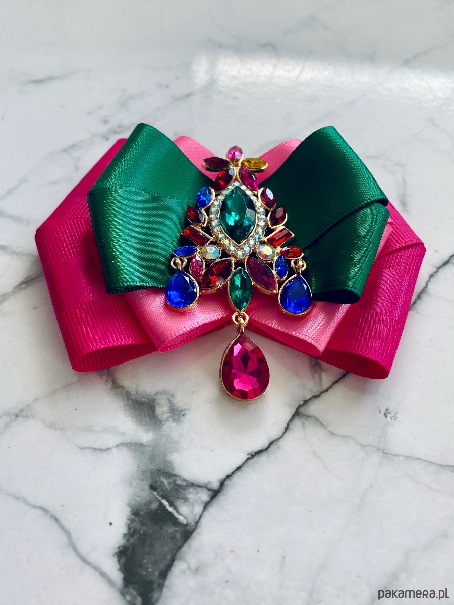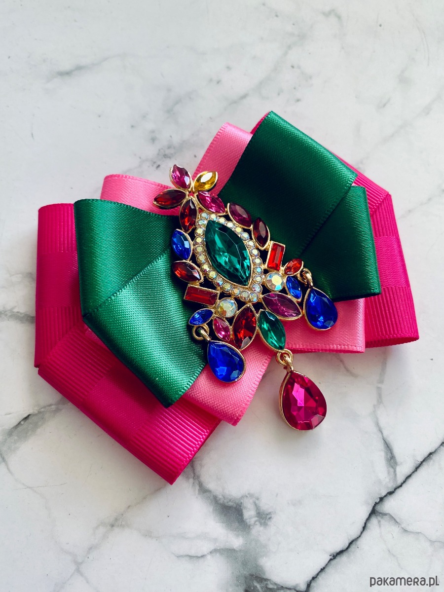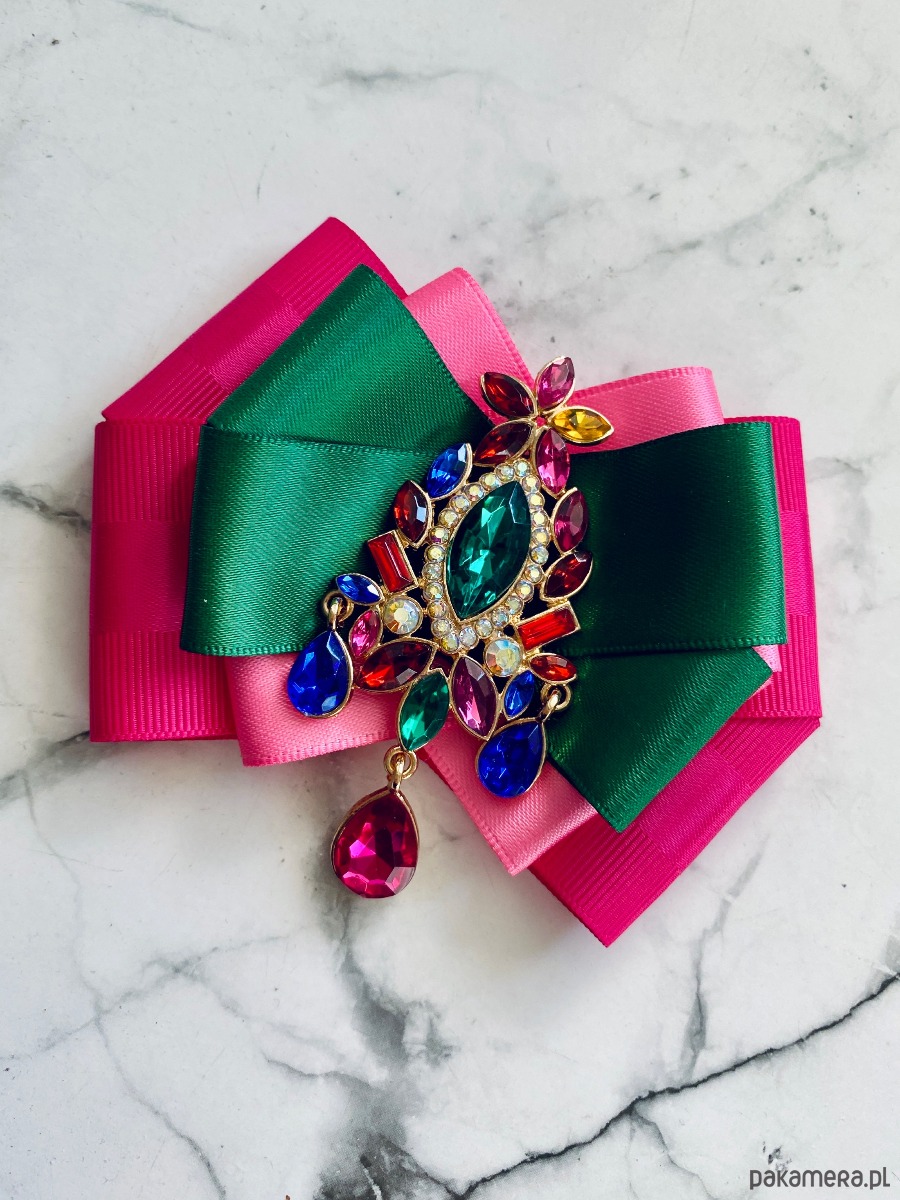 Broszka wykonana z wysokiej jakości taśm i dodatków.