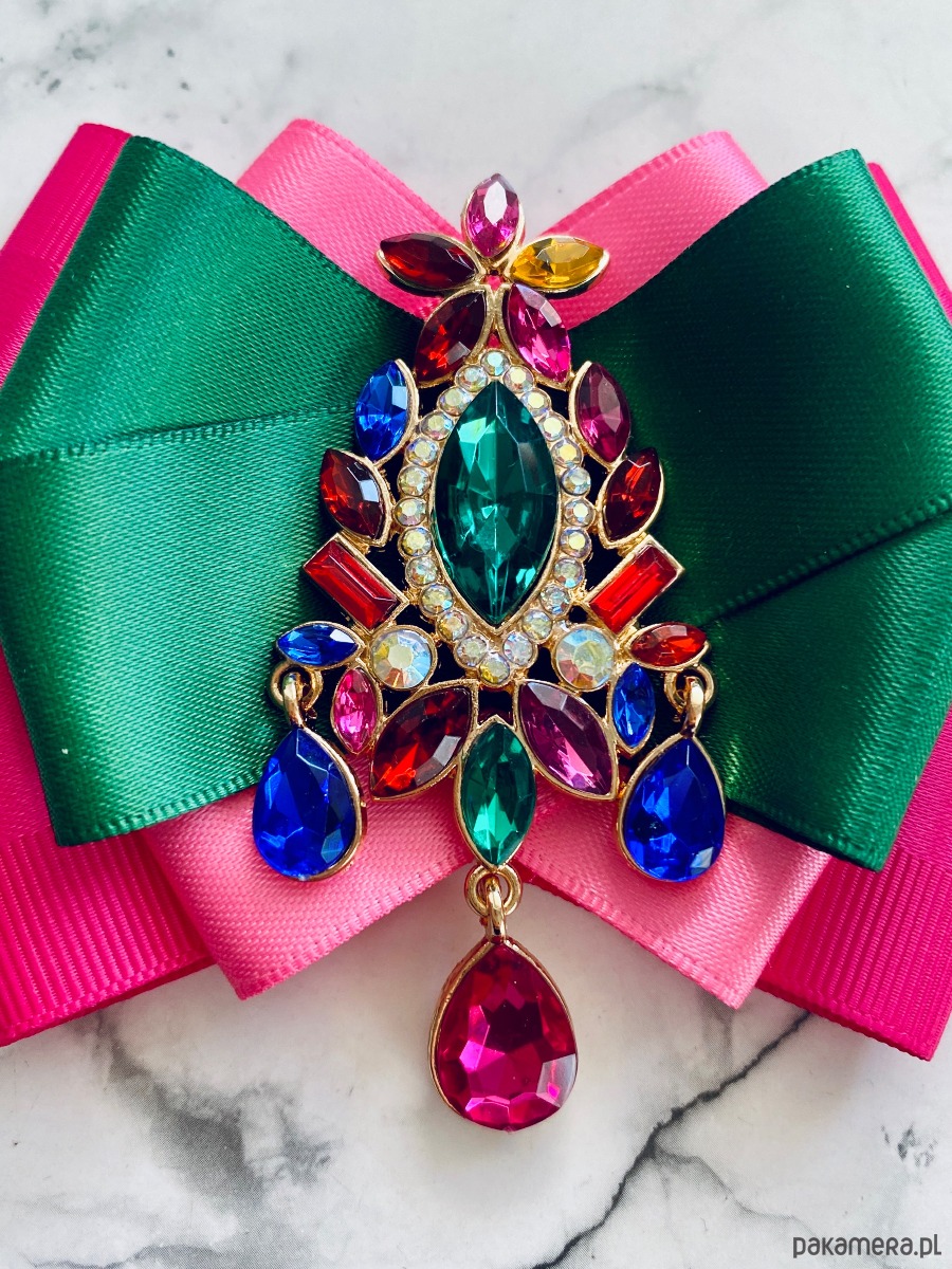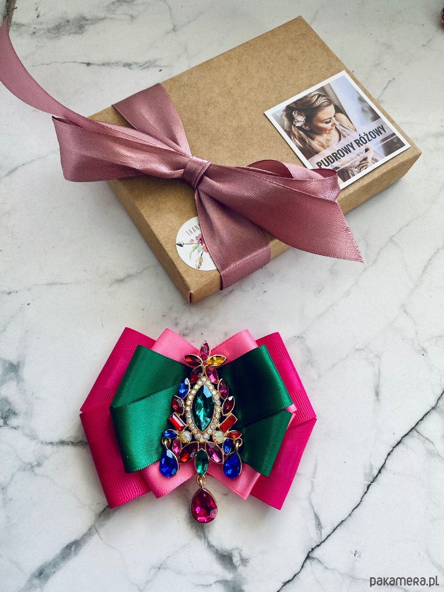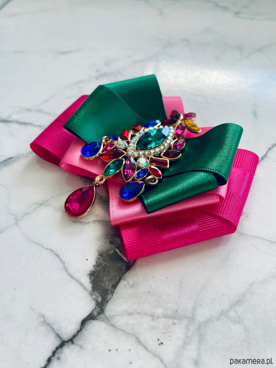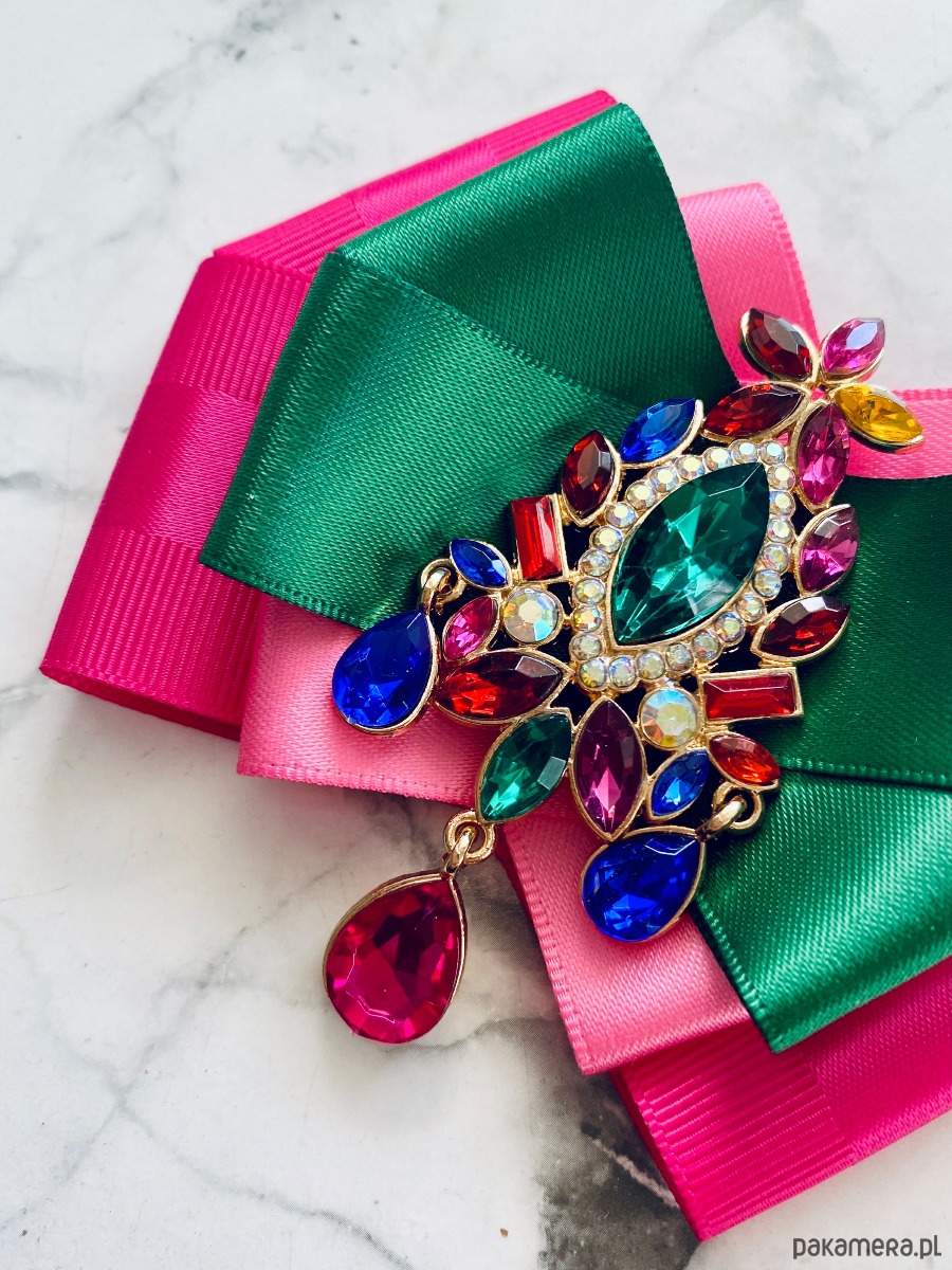 Broszka wykonana z wysokiej jakości taśm i dodatków.