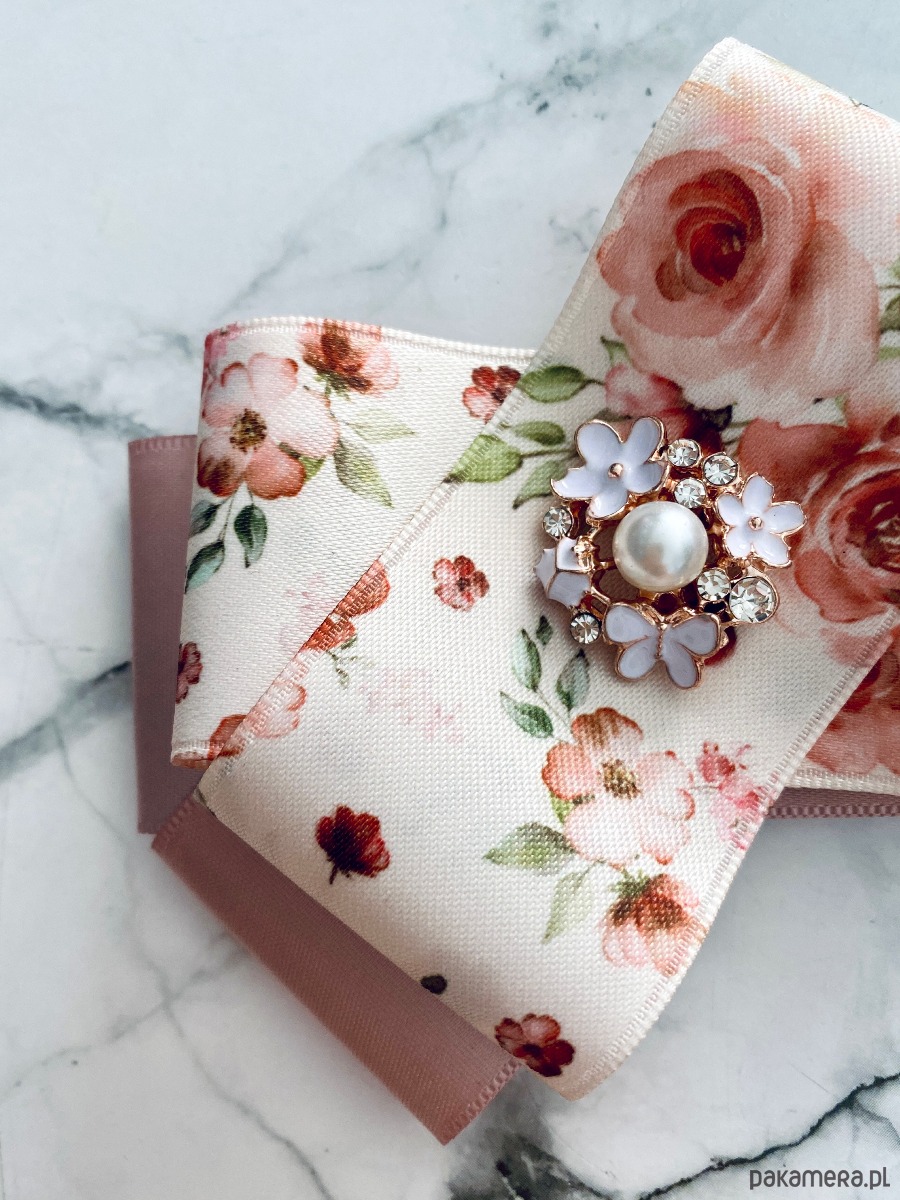 Broszka wykonana z wysokiej jakości taśm i dodatków.