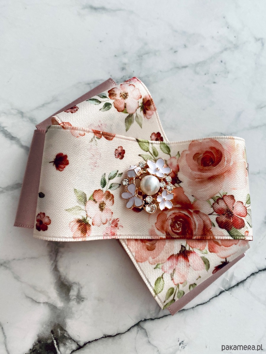 Brosza z kolekcji SOFT z satynowymi wstążkami kwiatowymi New