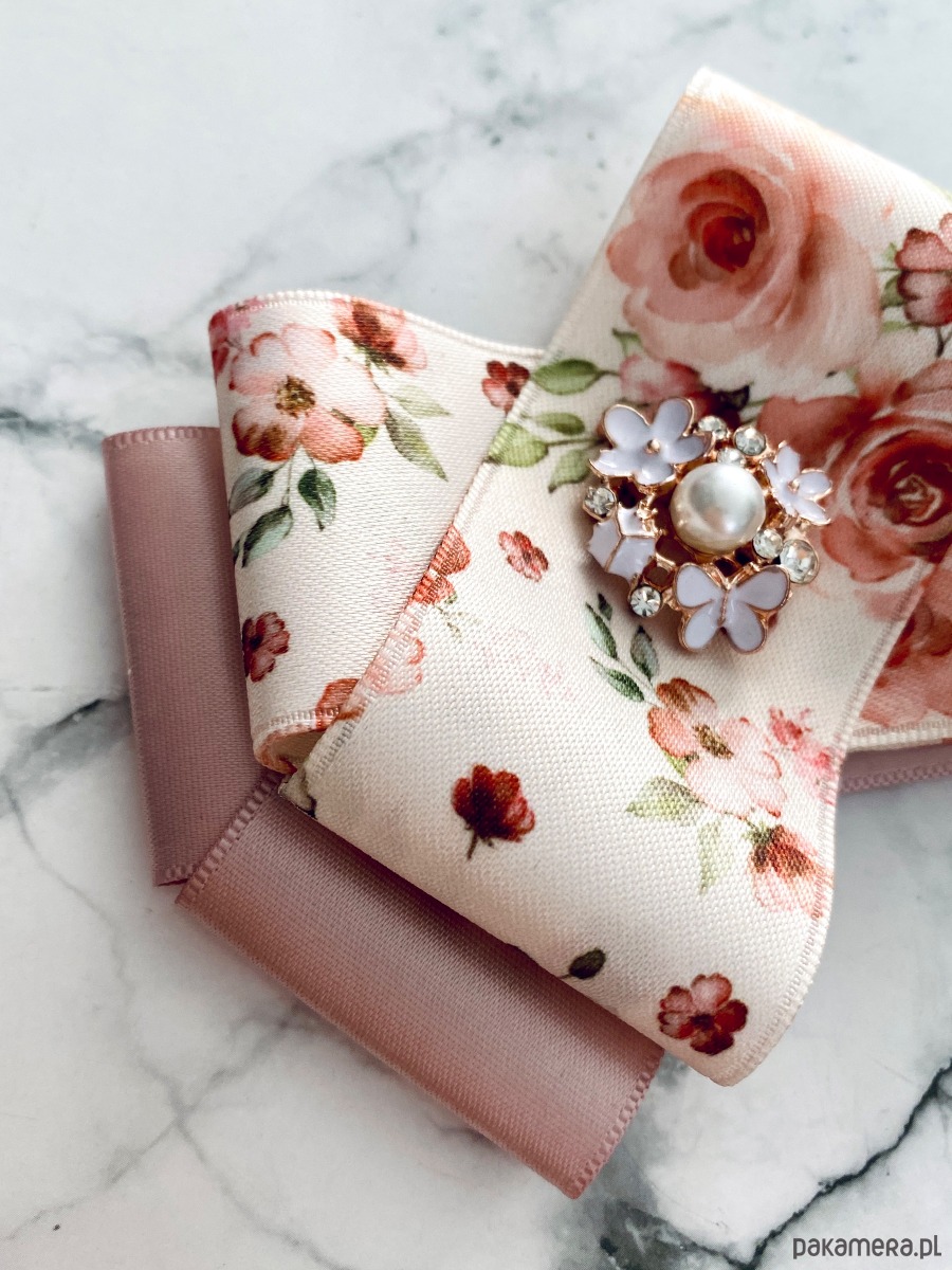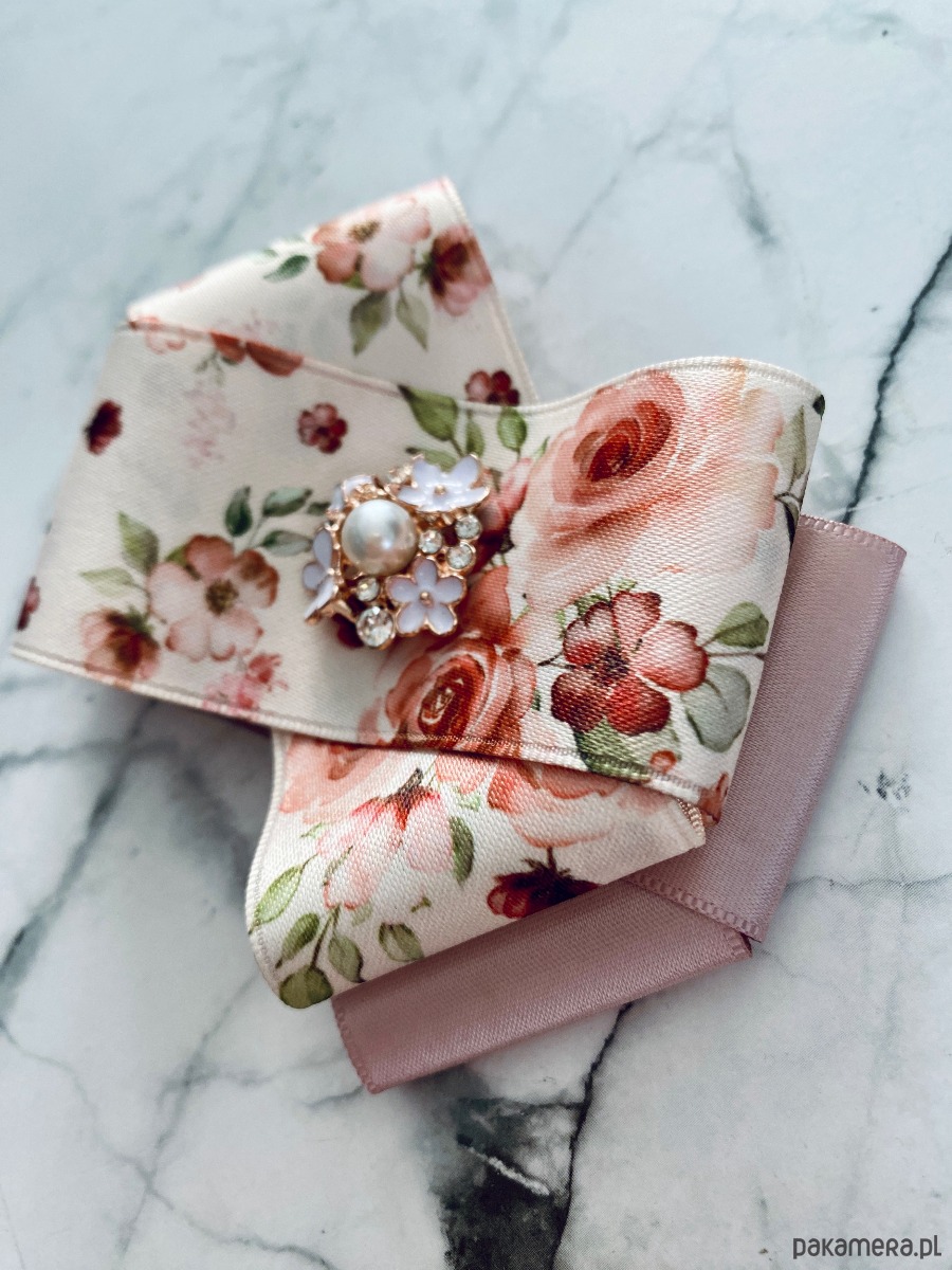 Brosza z kolekcji SOFT z satynowymi wstążkami kwiatowymi New