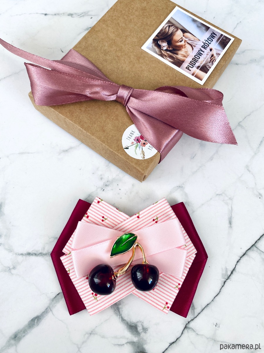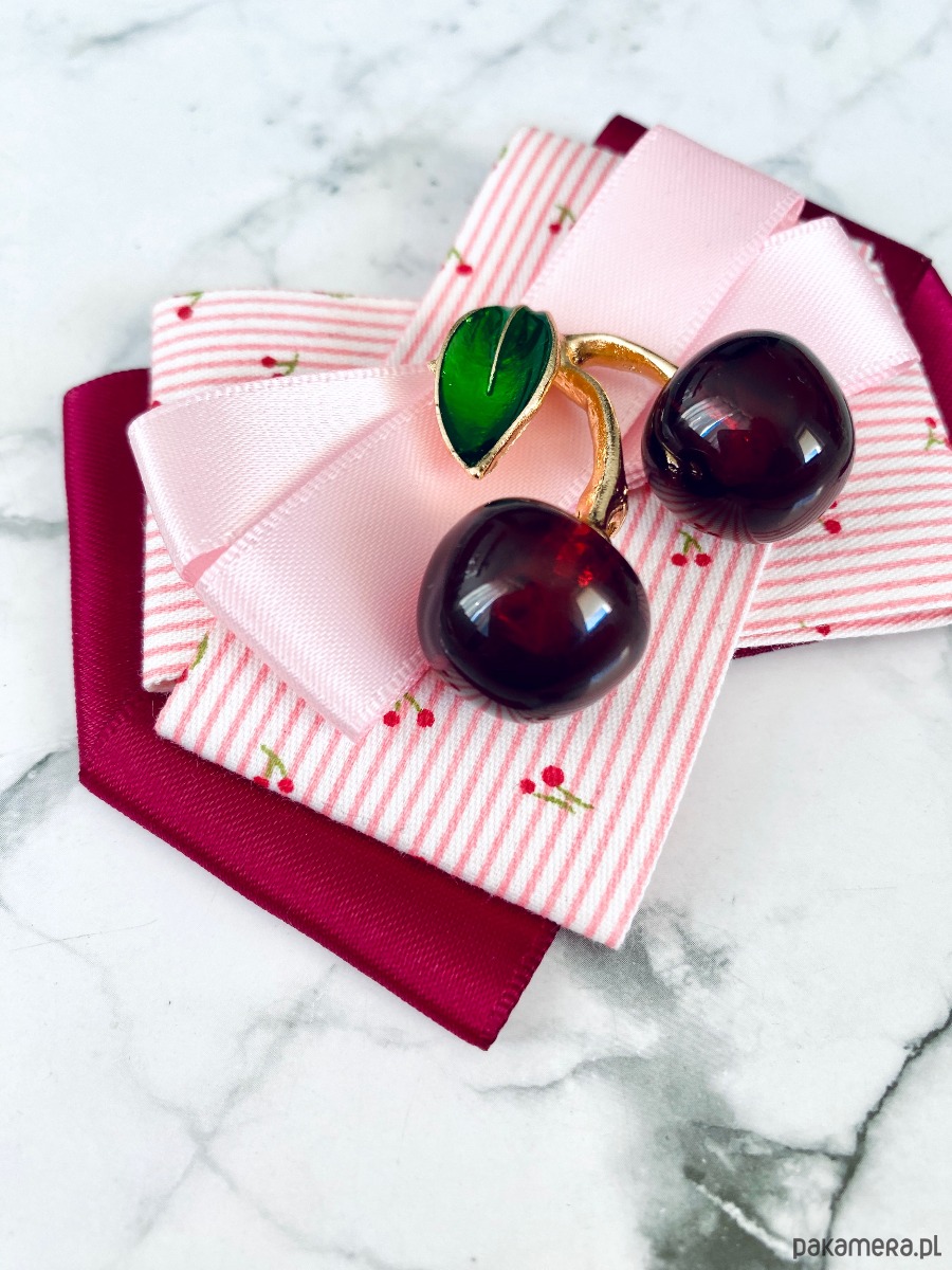 Pudrowy róż, Burgund z dodatkiem prześlicznych wstążek z malutkimi wisienkami.