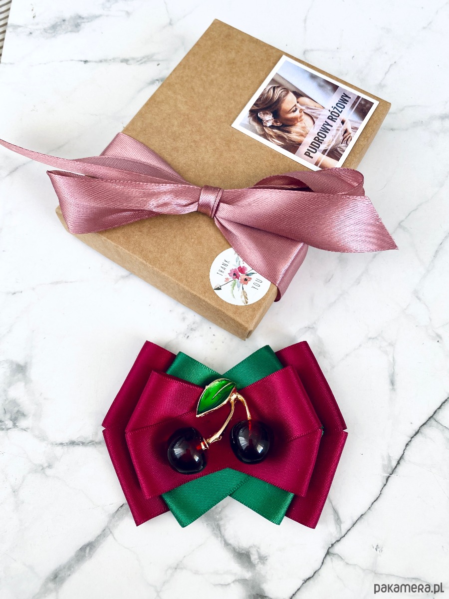 Pudrowy róż, Burgund z dodatkiem prześlicznych wstążek z malutkimi wisienkami.