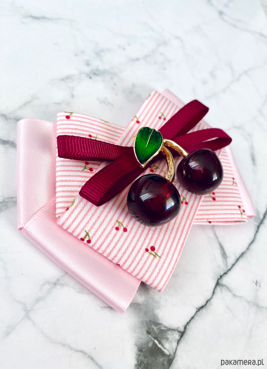 Pudrowy róż, Burgund z dodatkiem prześlicznych wstążek z malutkimi wisienkami.