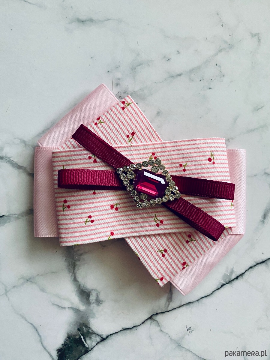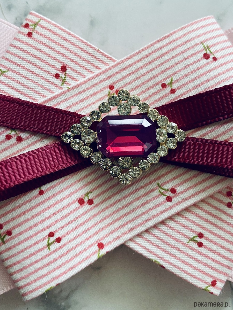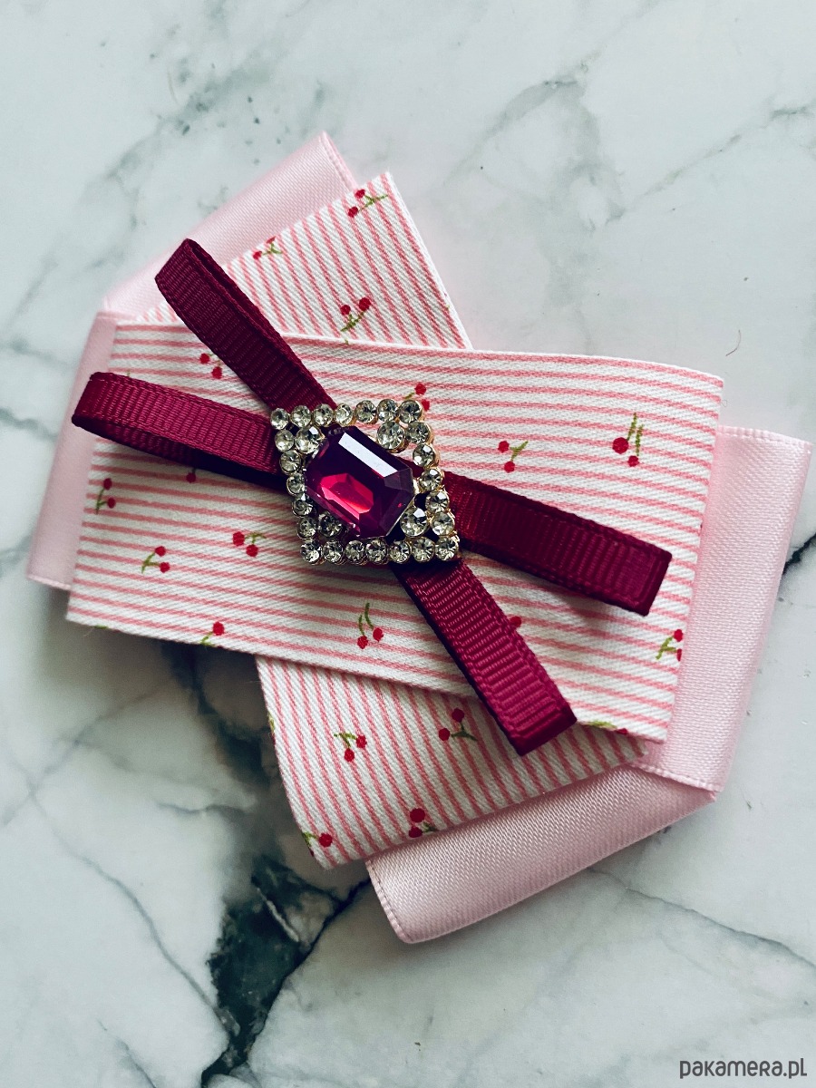 Pudrowy róż, Burgund z dodatkiem prześlicznych wstążek z malutkimi wisienkami.