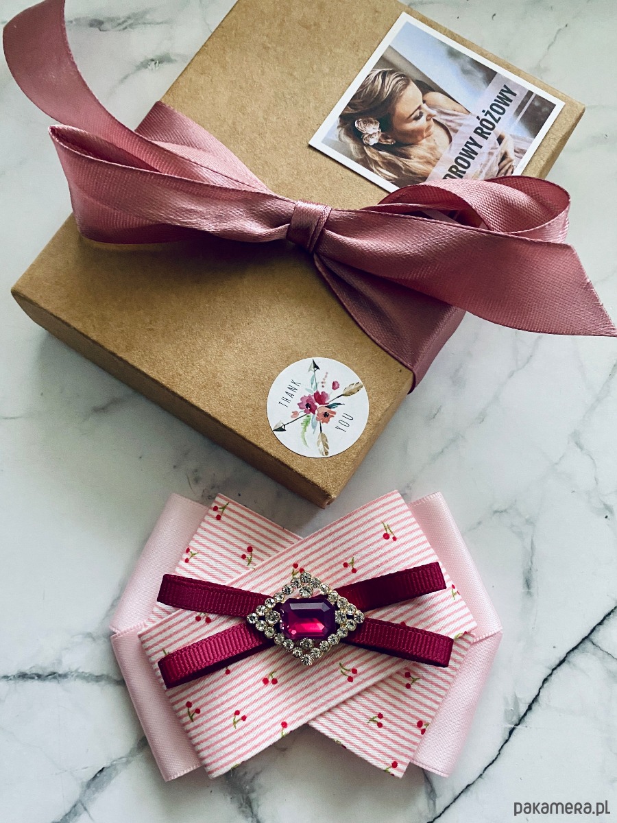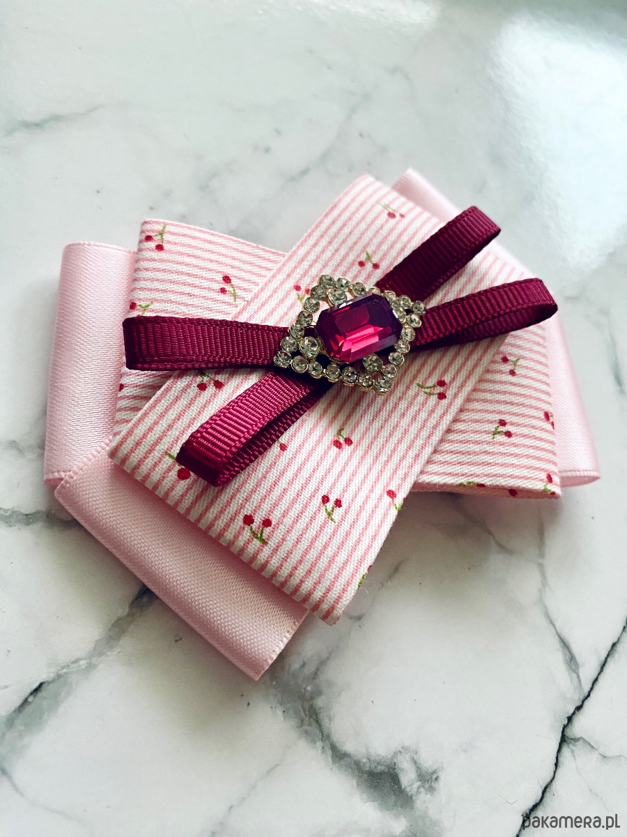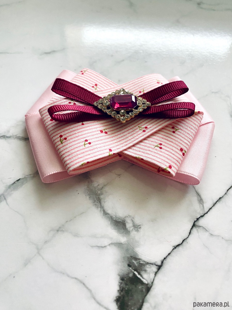 Pudrowy róż, Burgund z dodatkiem prześlicznych wstążek z malutkimi wisienkami.