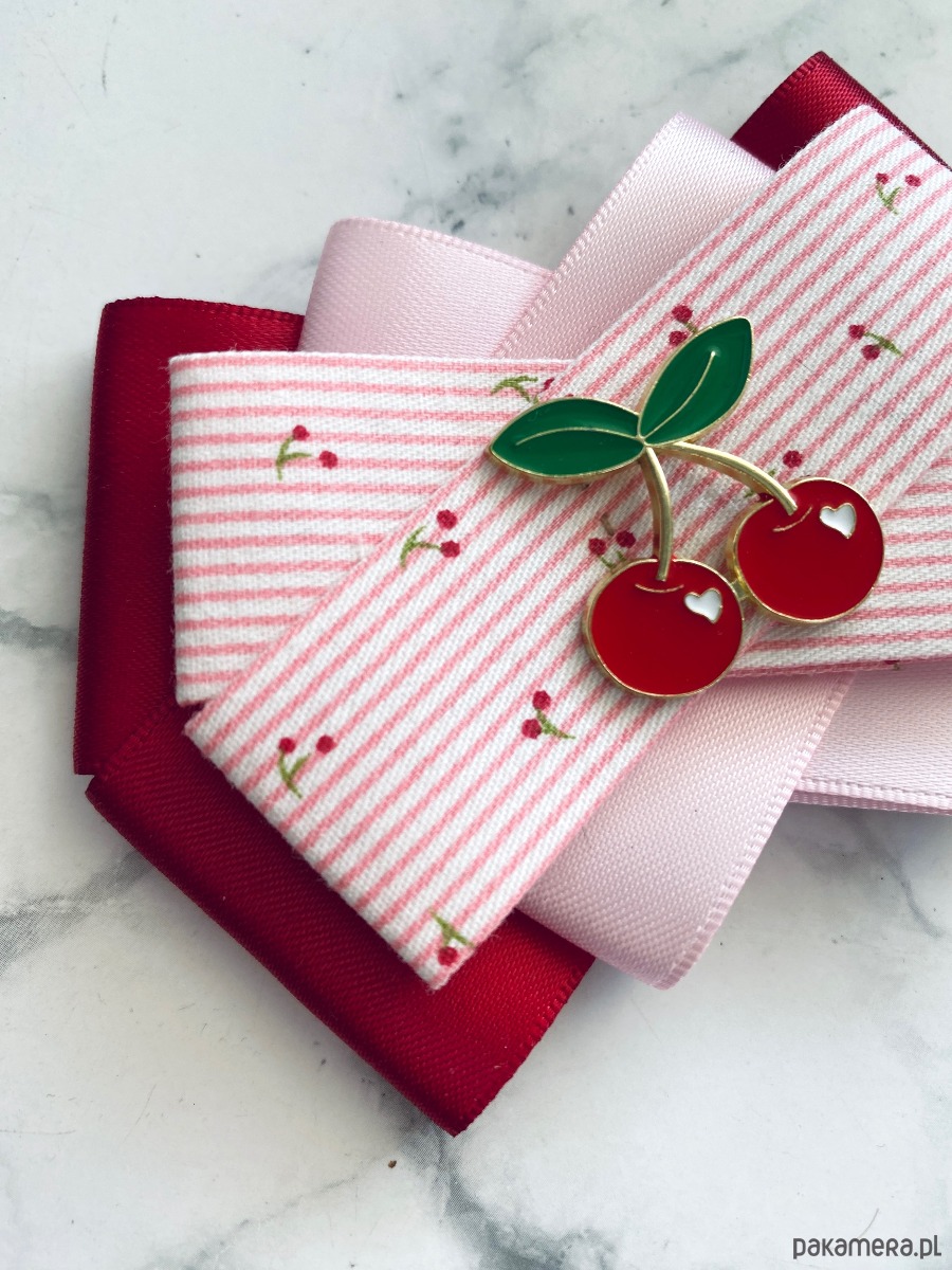 Pudrowy róż, czerwień i zieleń z dodatkiem prześlicznych wstążek z malutkimi wisienkami.