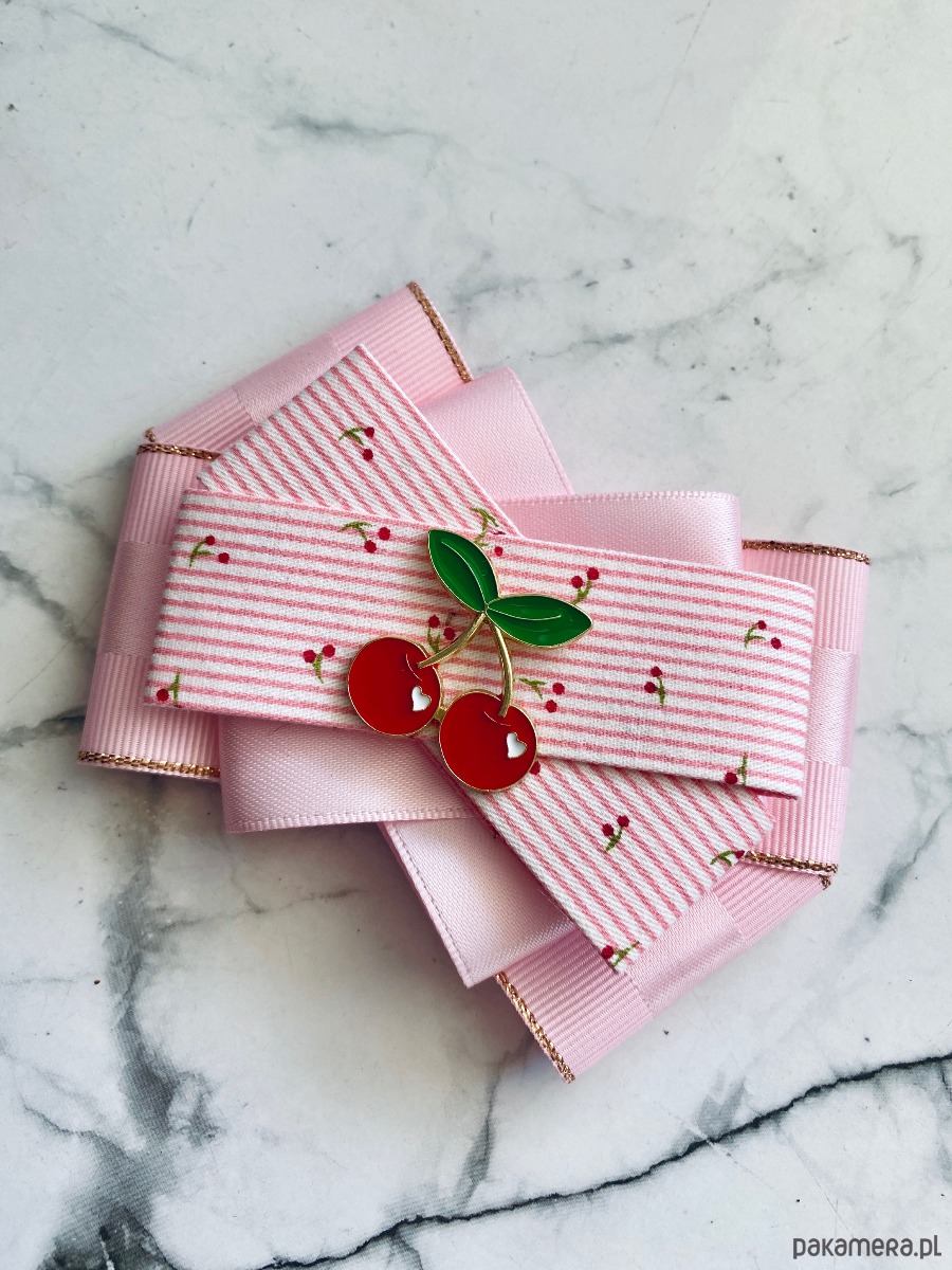 Pudrowy róż, czerwień i zieleń z dodatkiem prześlicznych wstążek z malutkimi wisienkami.