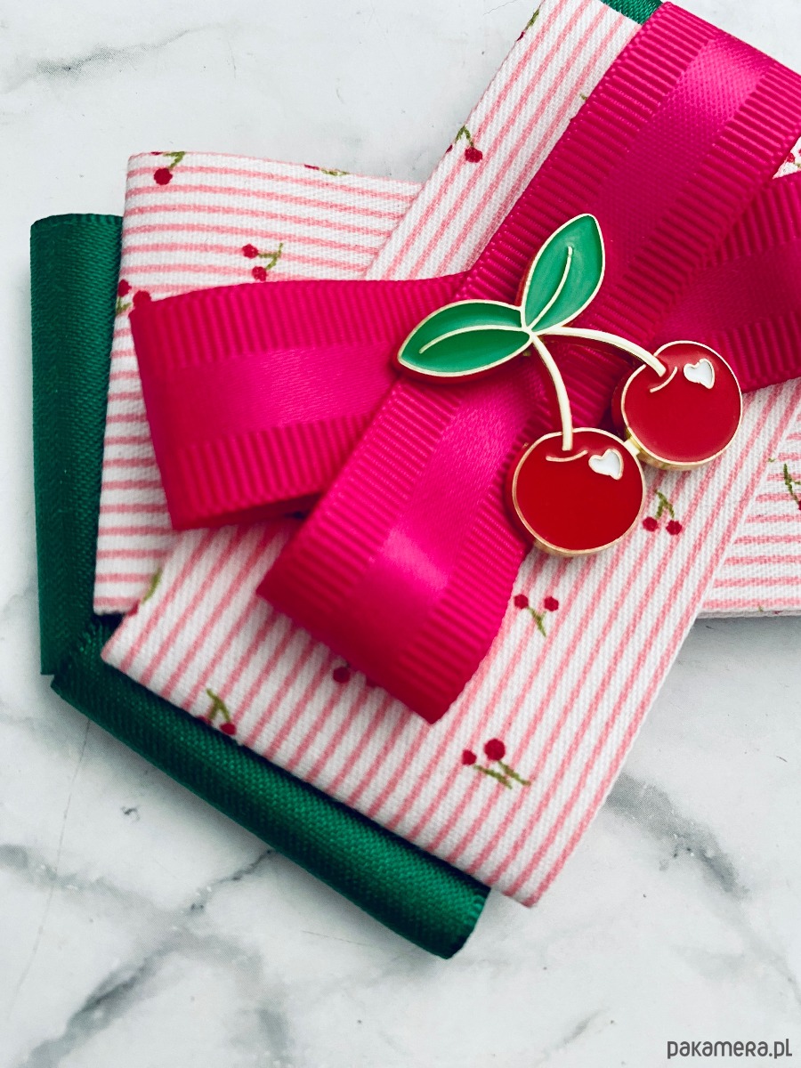 Pudrowy róż, czerwień i zieleń z dodatkiem prześlicznych wstążek z malutkimi wisienkami.