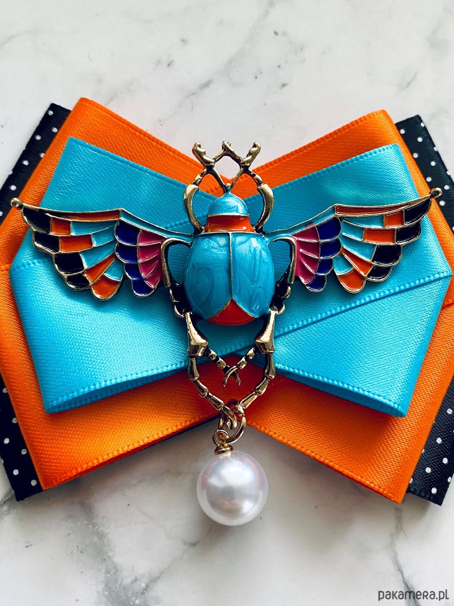 Broszka wykonana z wysokiej jakości taśm i dodatków.