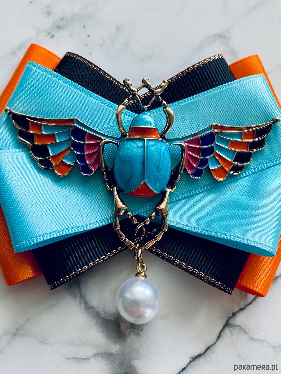 Broszka wykonana z wysokiej jakości taśm i dodatków.