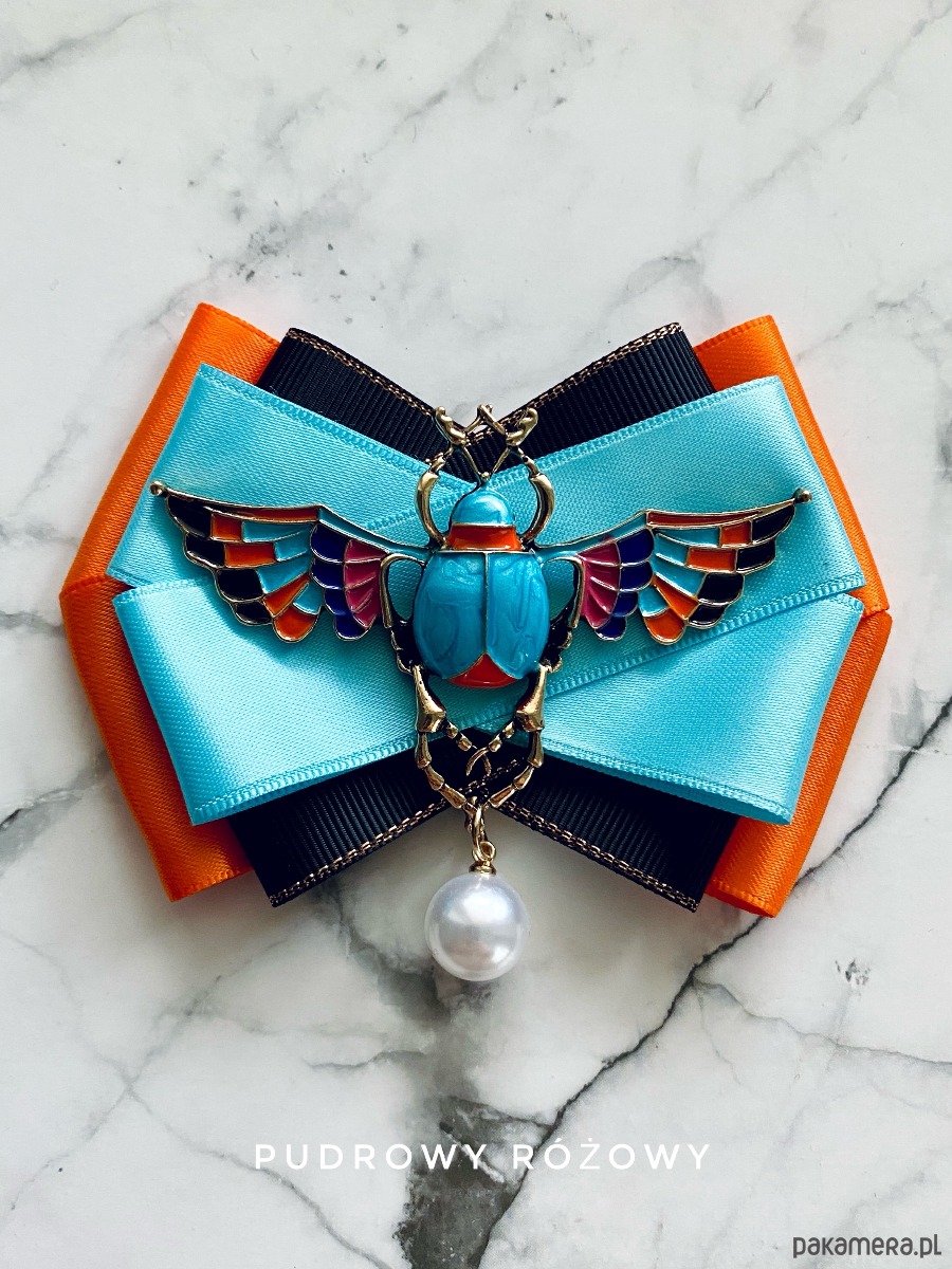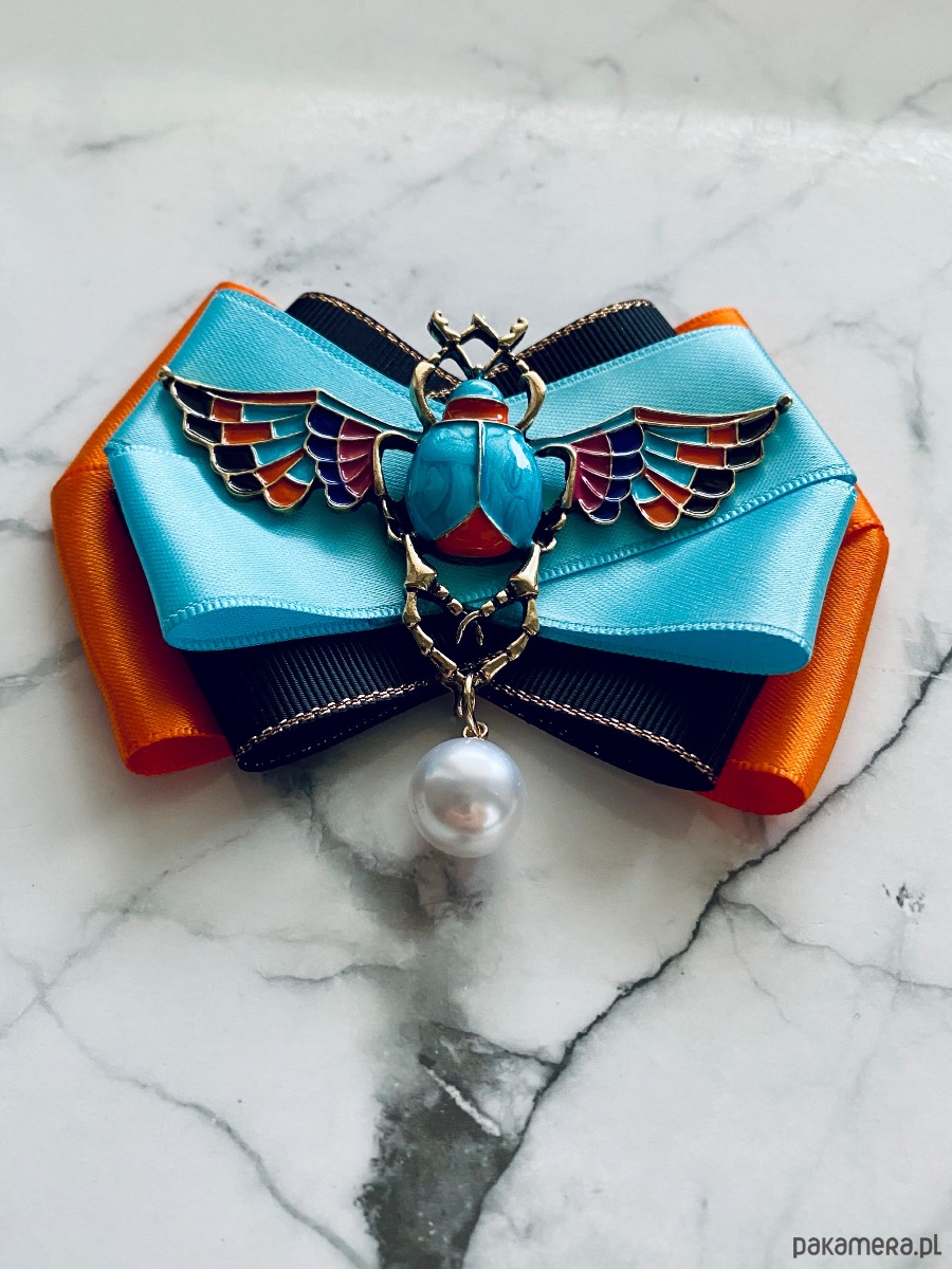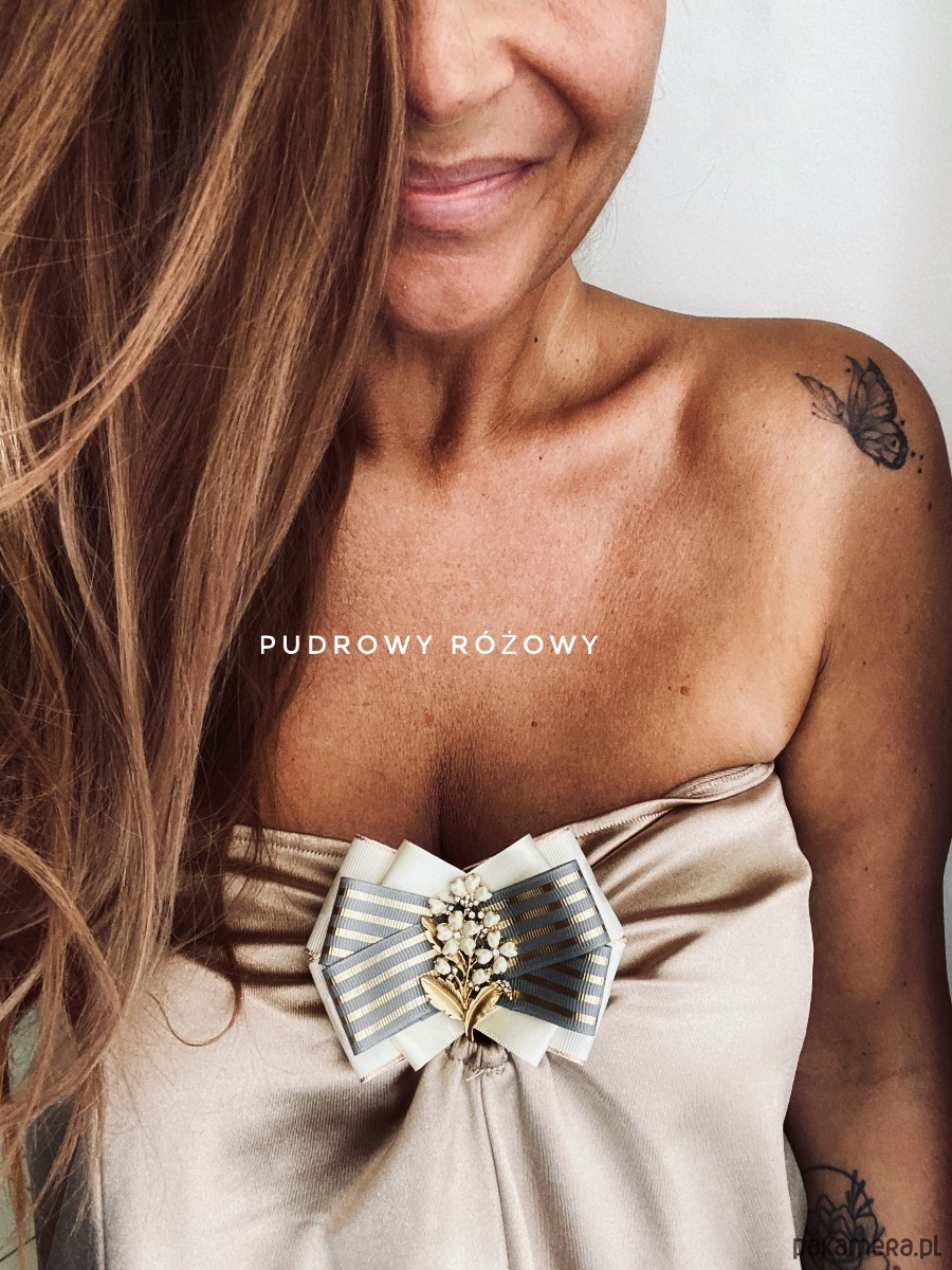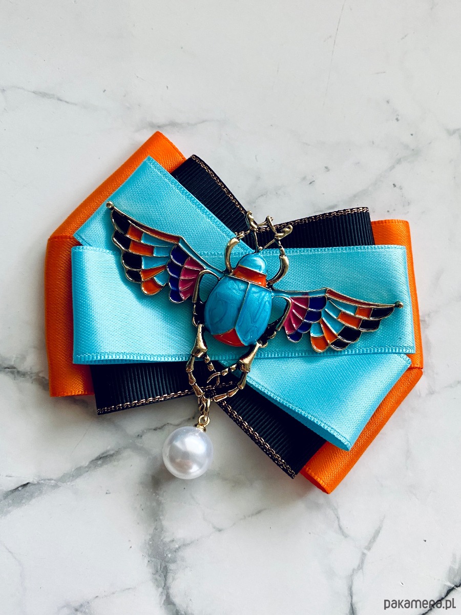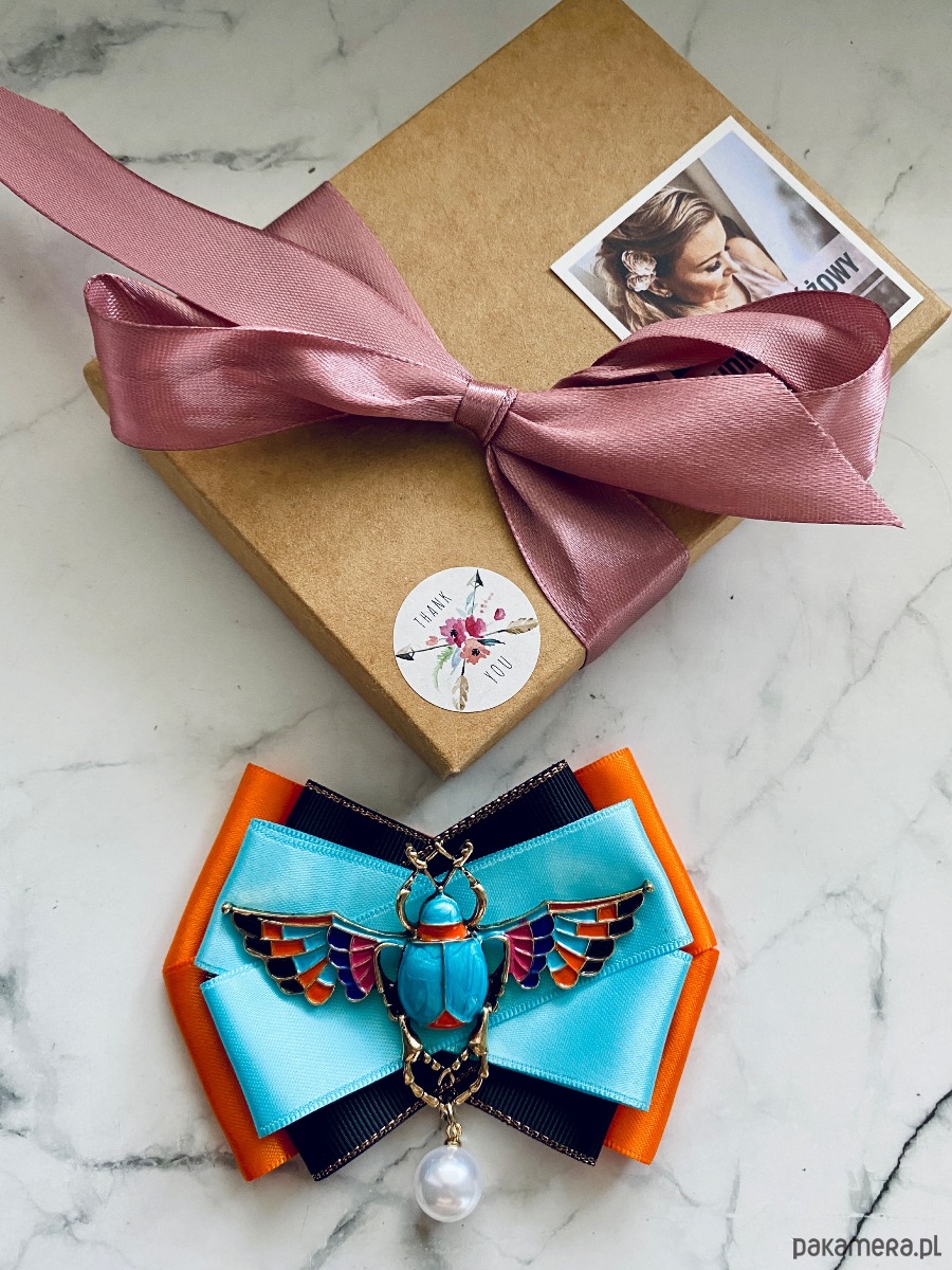 Broszka wykonana z wysokiej jakości taśm i dodatków.