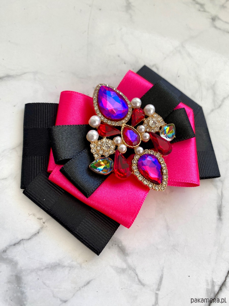 Broszka wykonana z wysokiej jakości taśm i dodatków.
