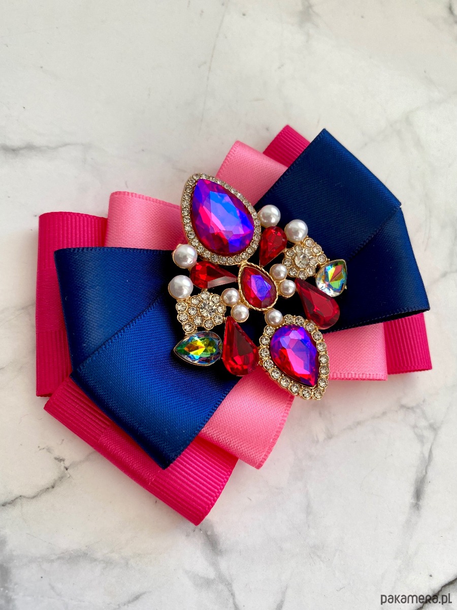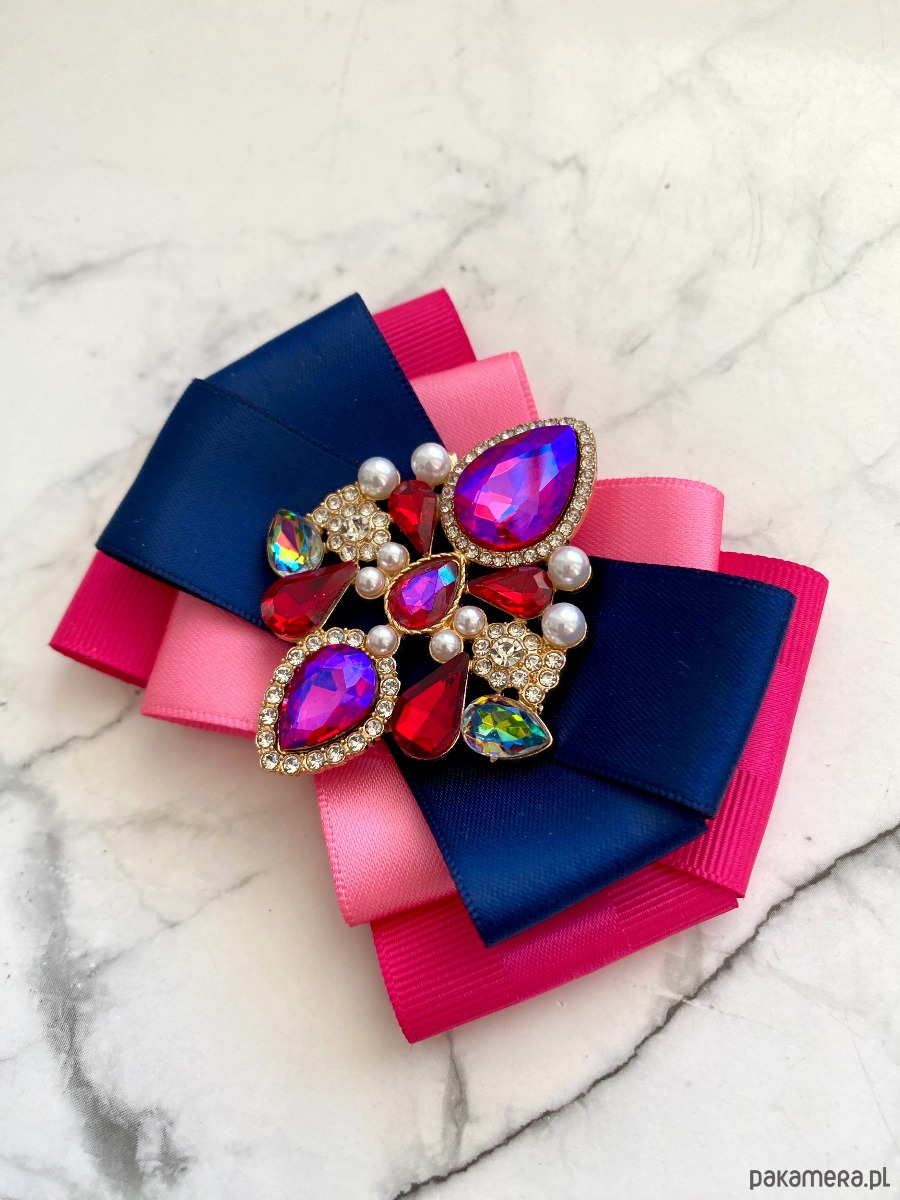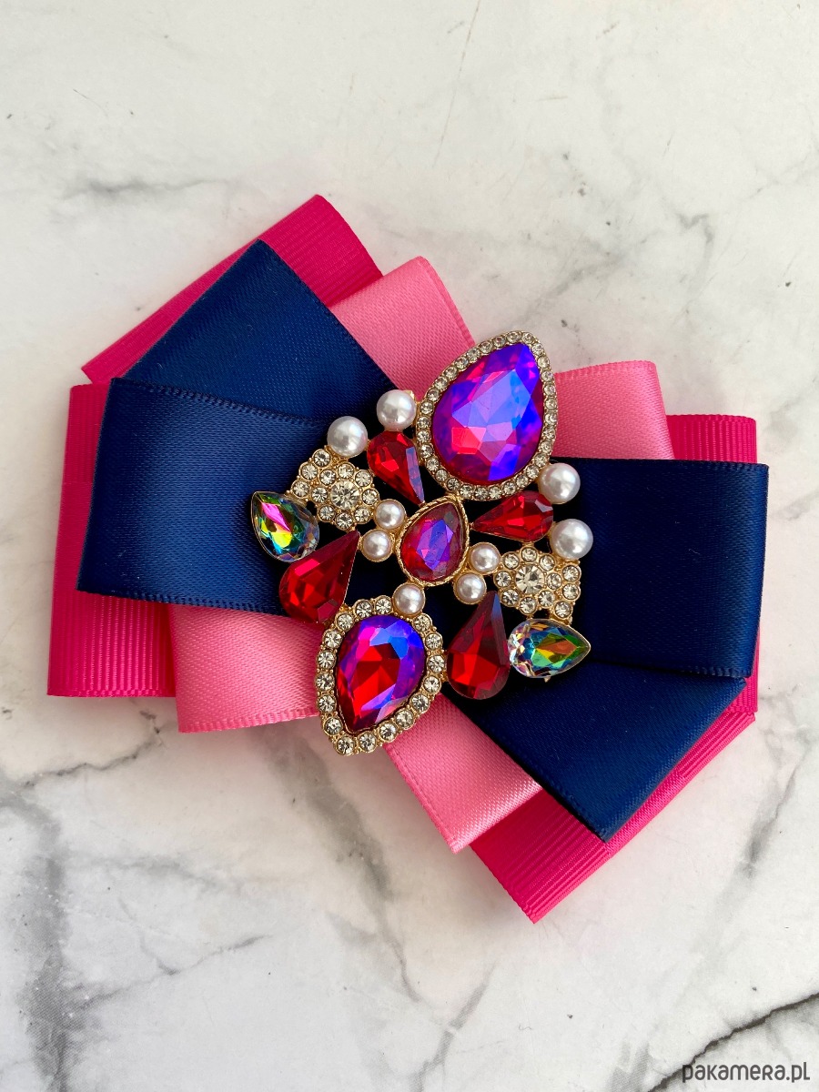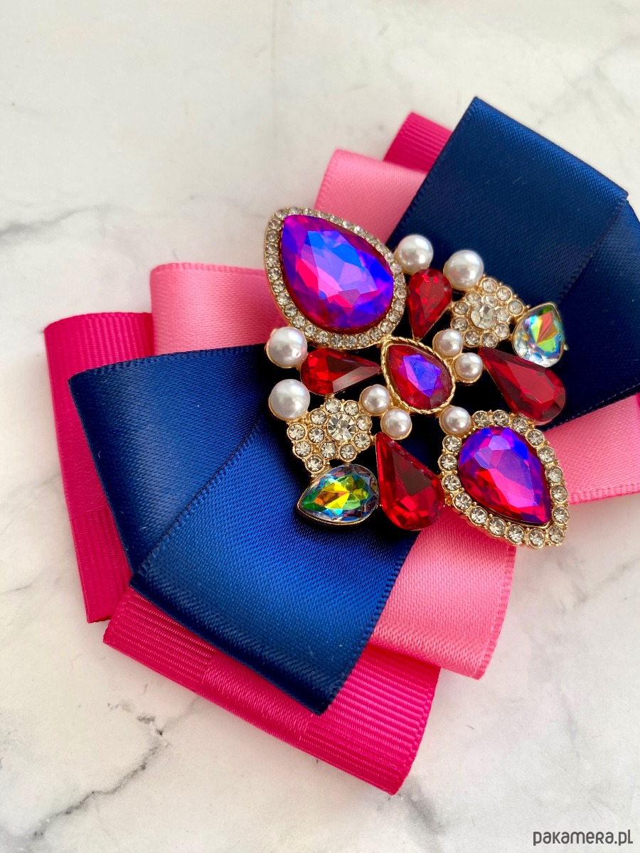 Broszka wykonana z wysokiej jakości taśm i dodatków.