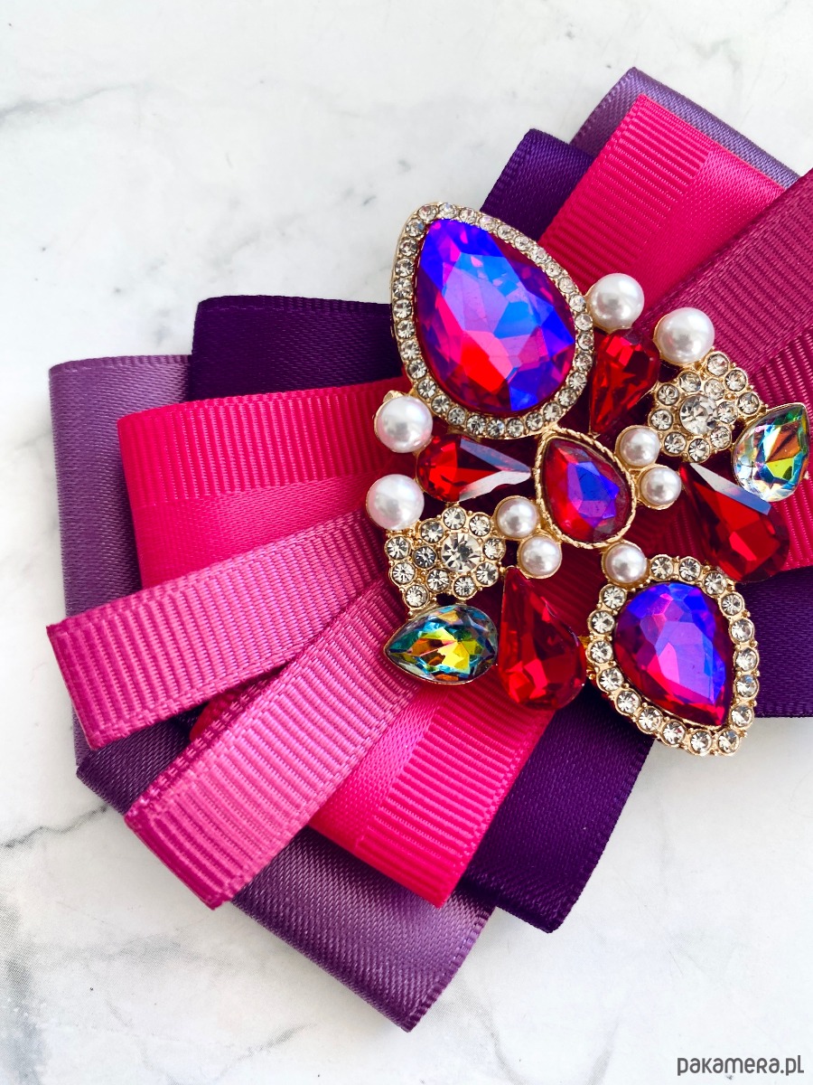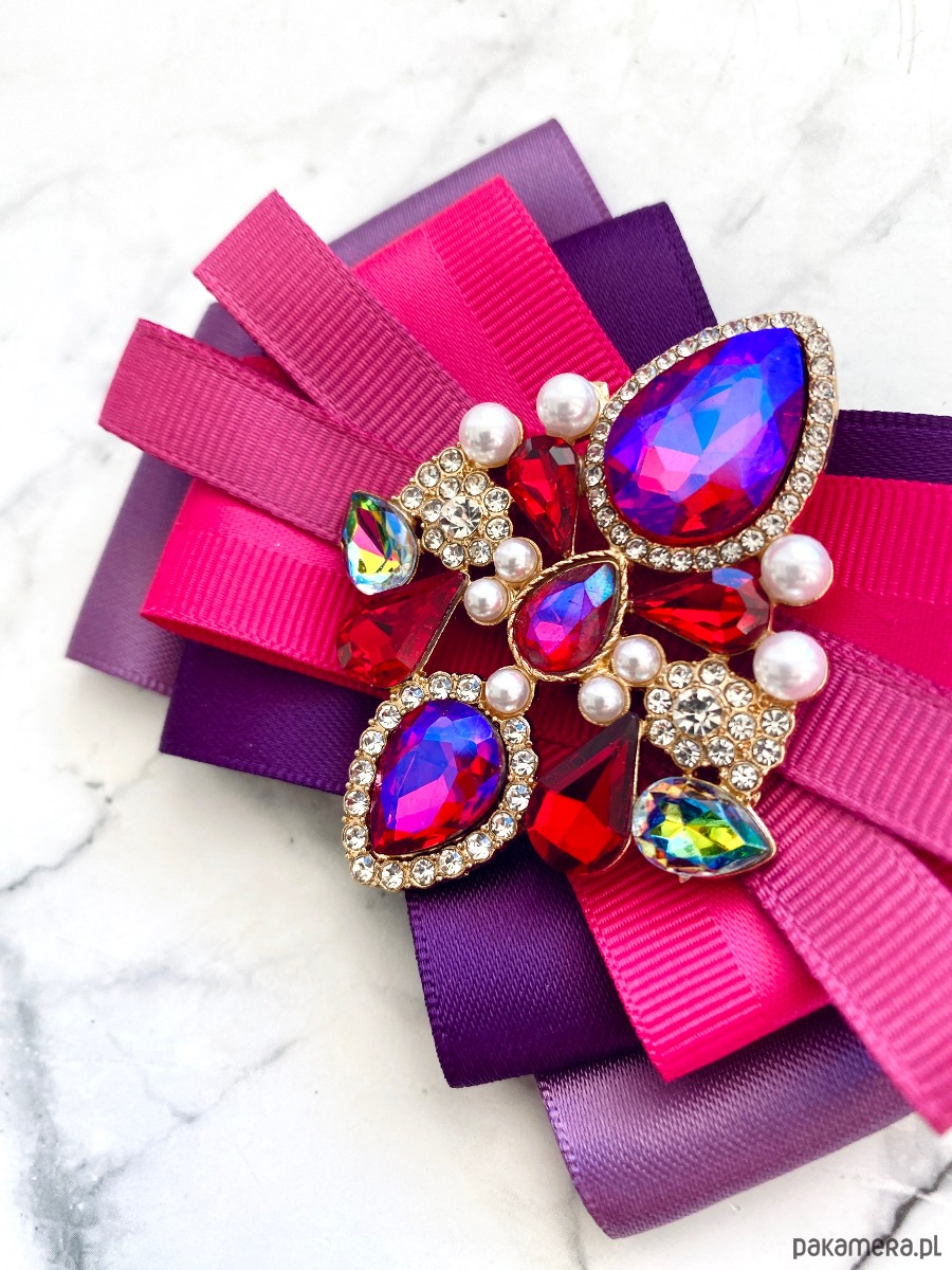 Broszka wykonana z wysokiej jakości taśm i dodatków.