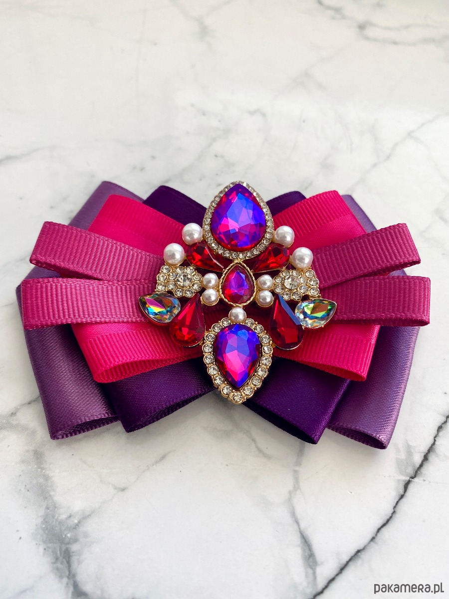 Na środku naszyta cudowna ozdoba biżuteryjna z kryształków w kolorze różowym kameleon który zmienia się w zależności od padania światła. Dodatkowo małe perełki, które nadają lekkości i kobiecości.