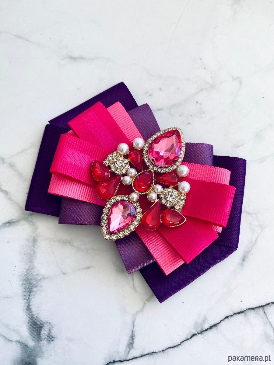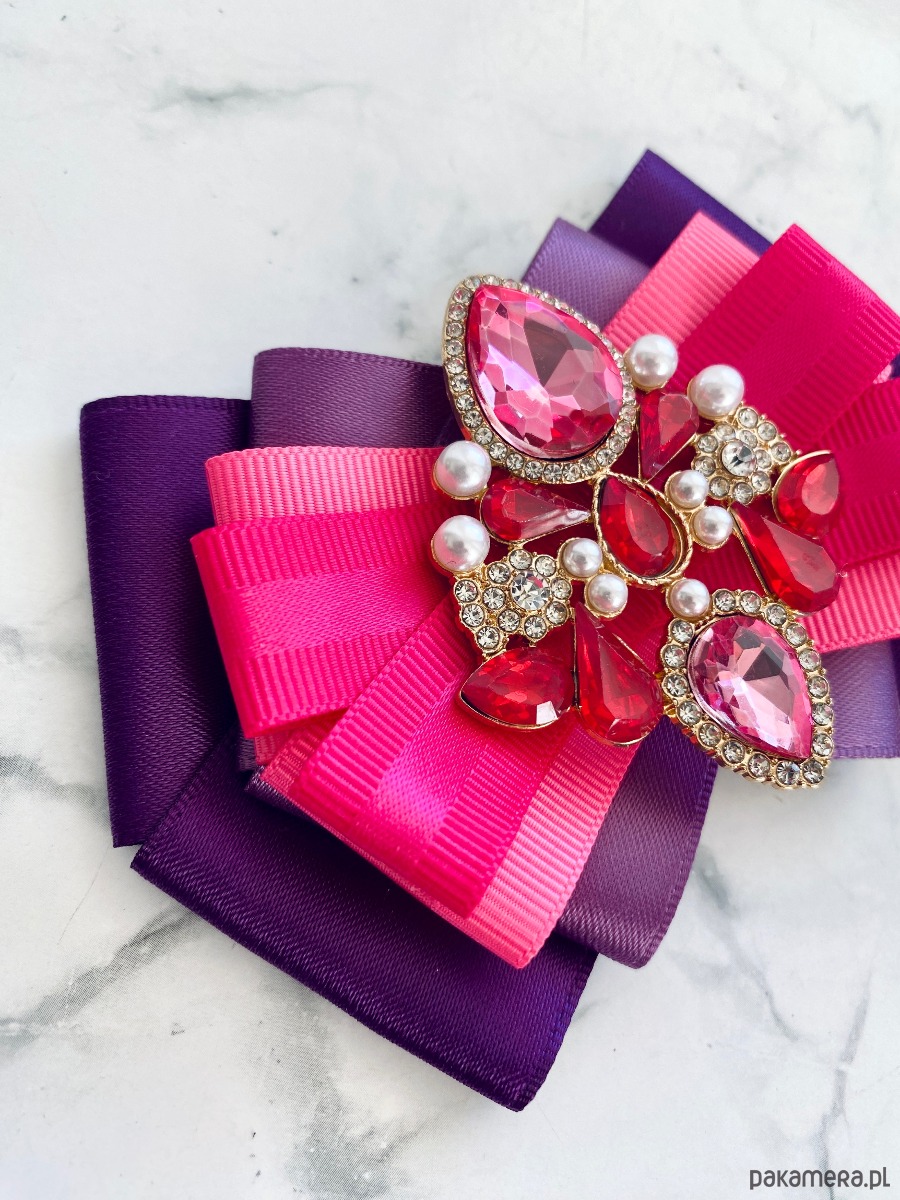 Broszka wykonana z wysokiej jakości taśm i dodatków.