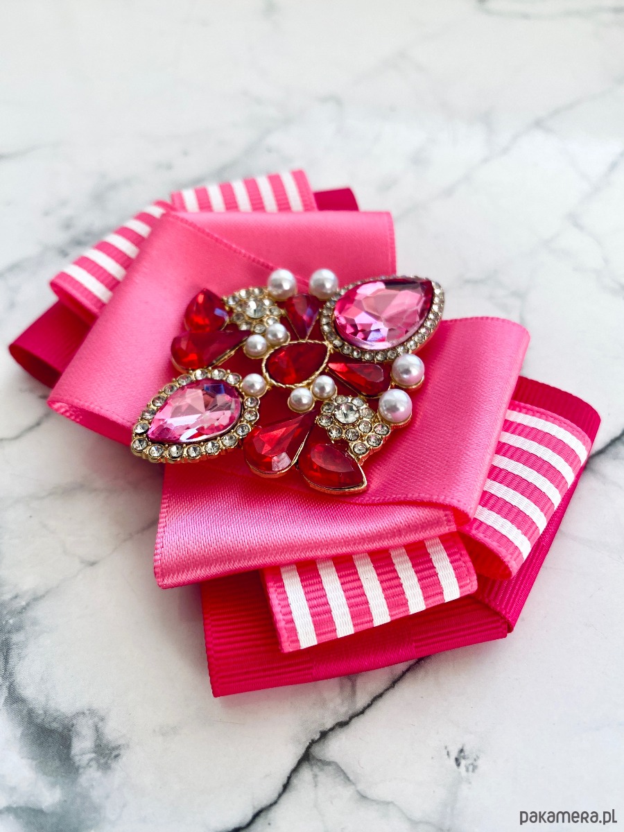 Broszka wykonana z wysokiej jakości taśm i dodatków.