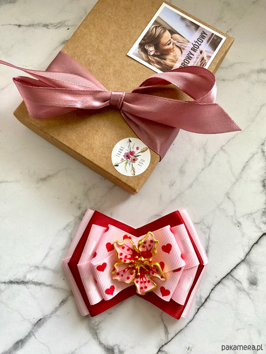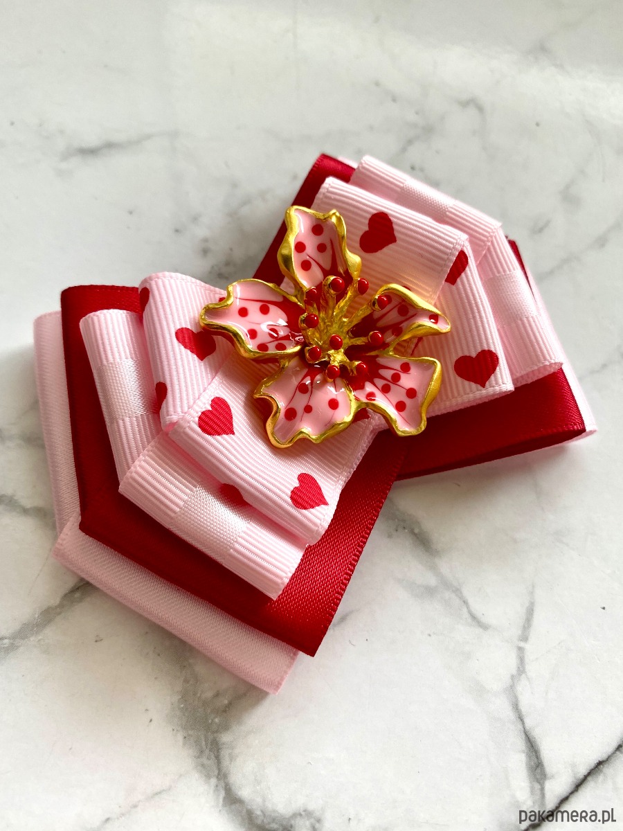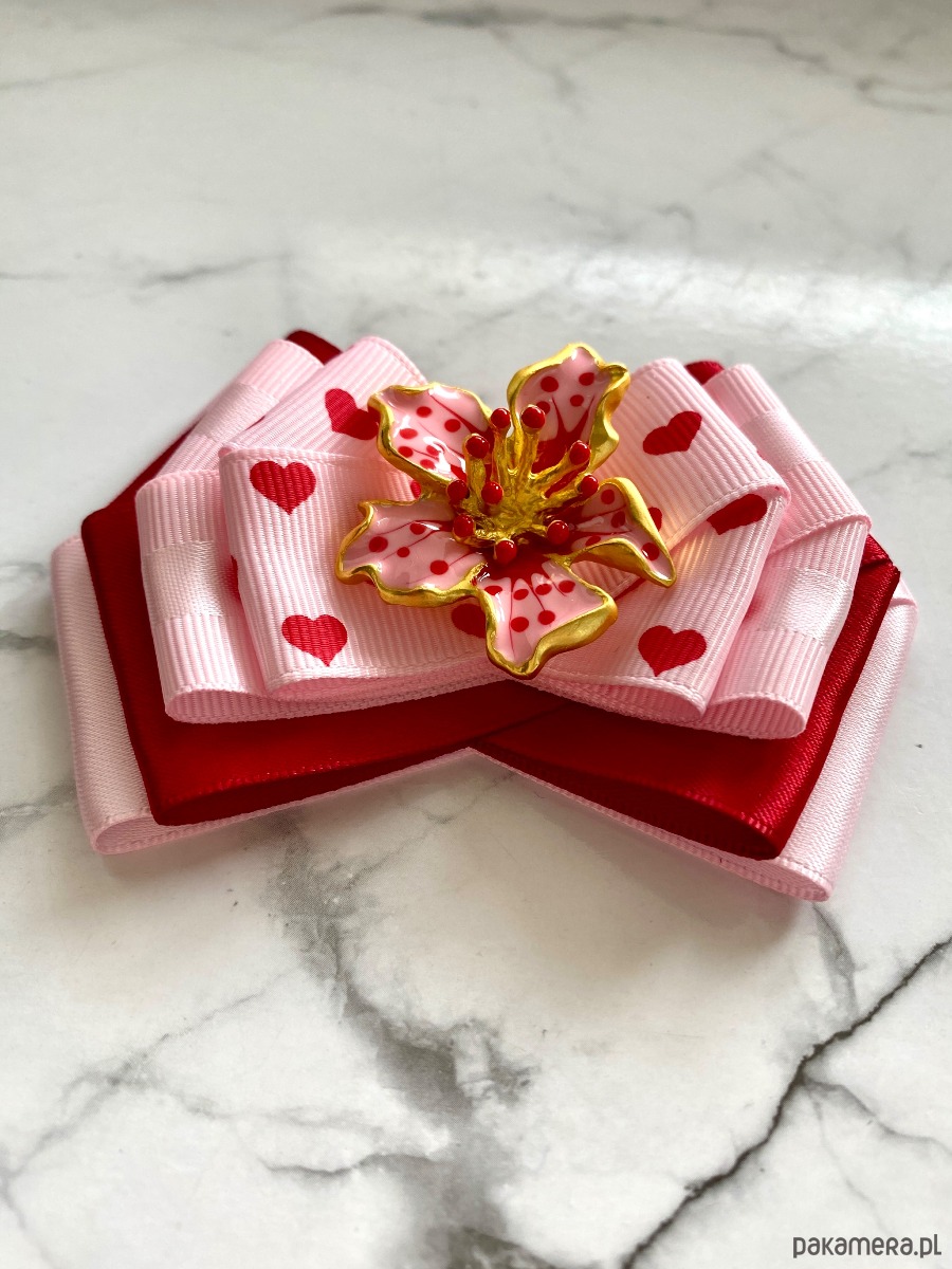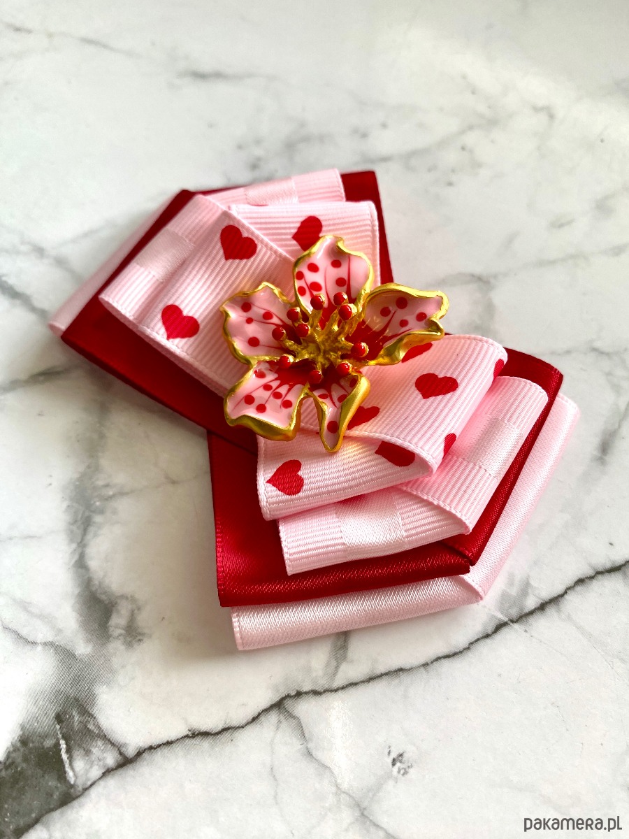 Broszka wykonana z wysokiej jakości taśm i dodatków.