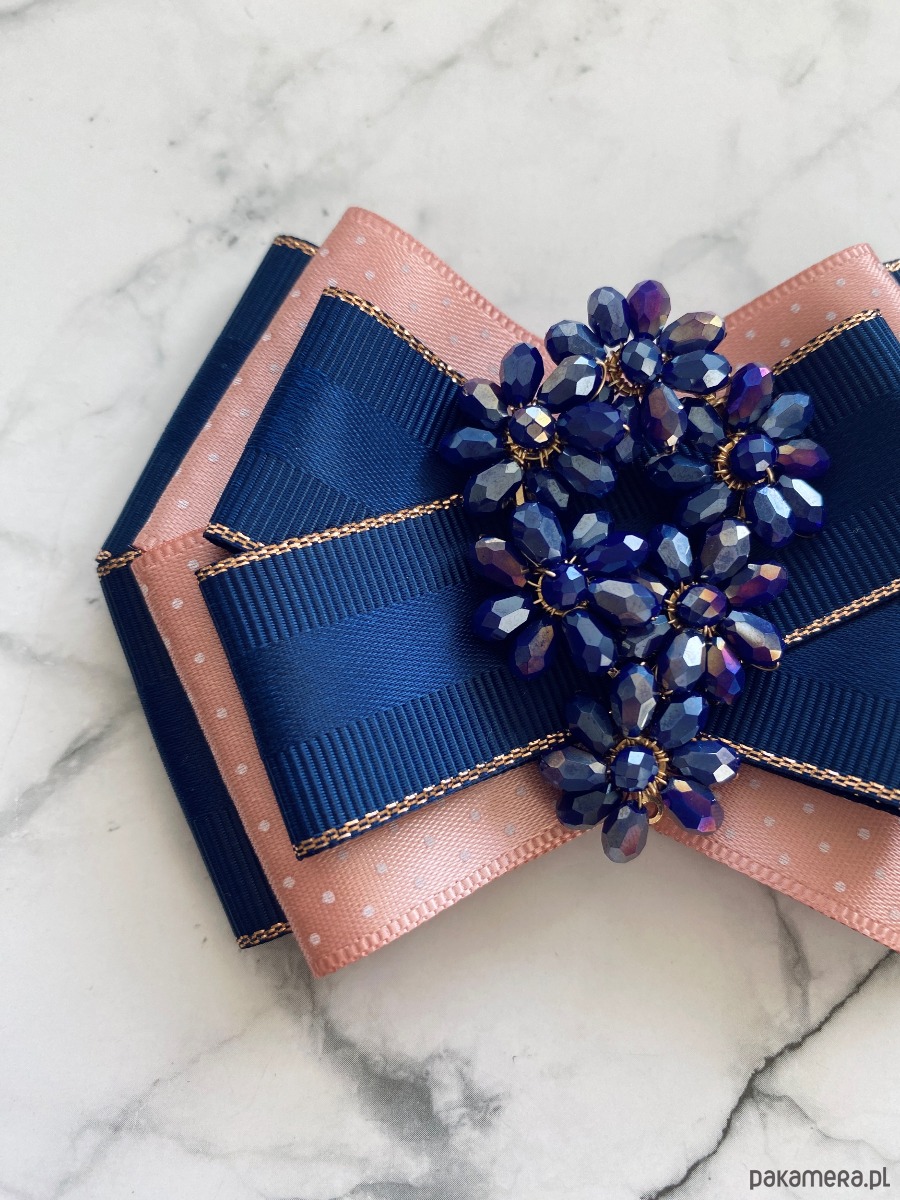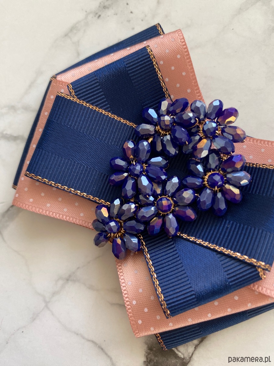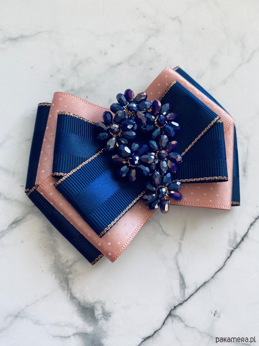 Brosza w kolorze granatu i pudrowego różu.
