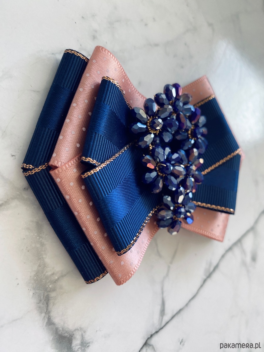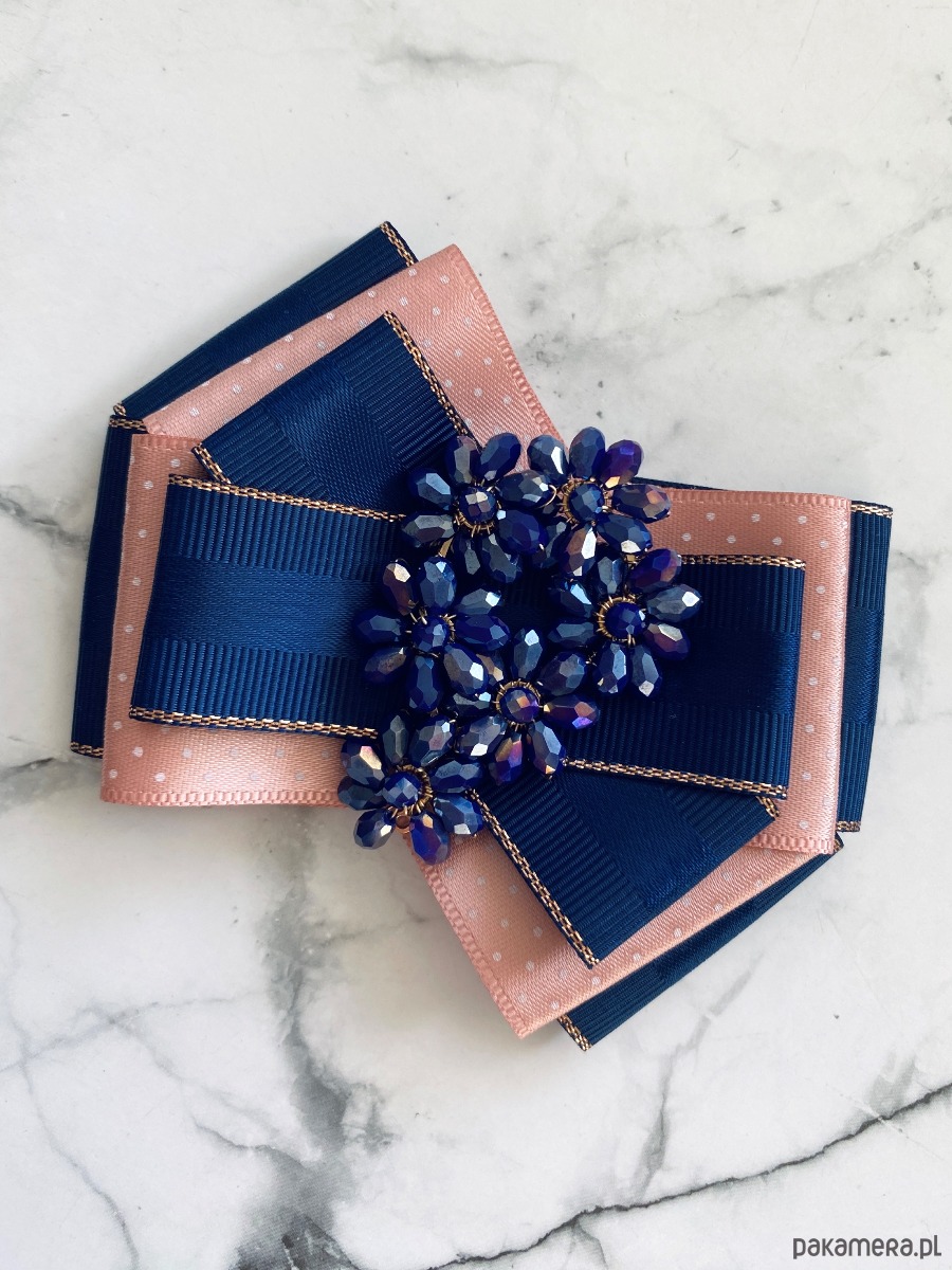 Broszka wykonana z wysokiej jakości taśm i dodatków.