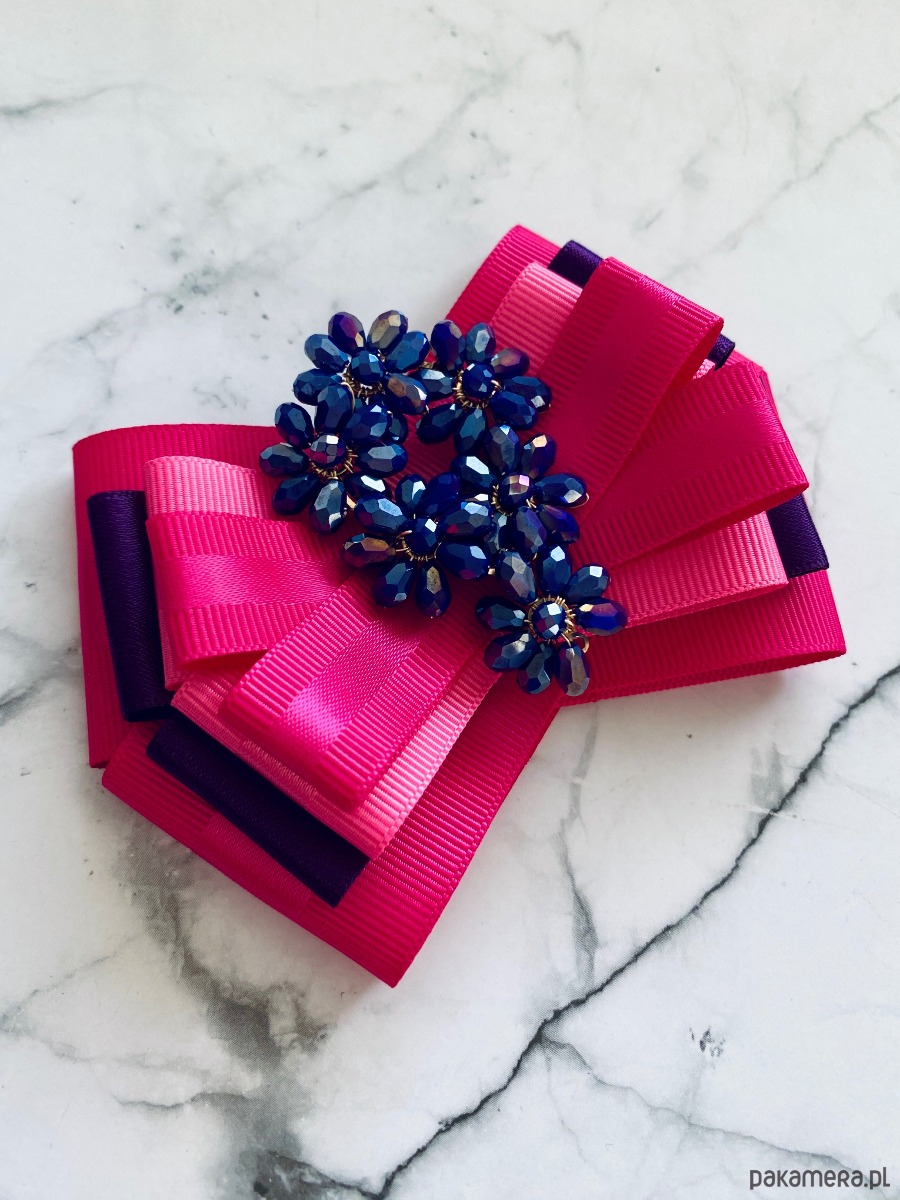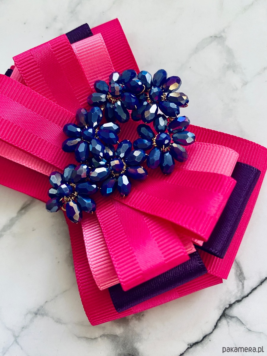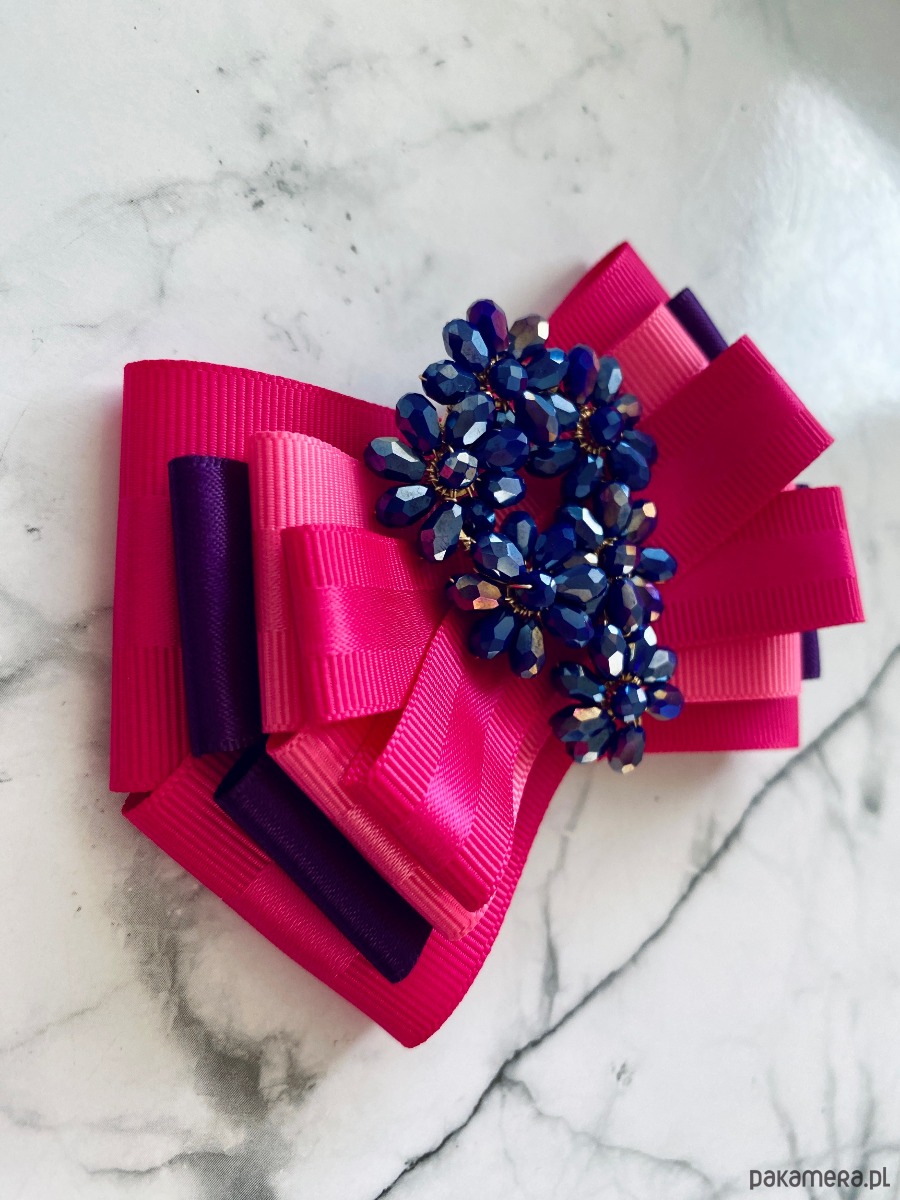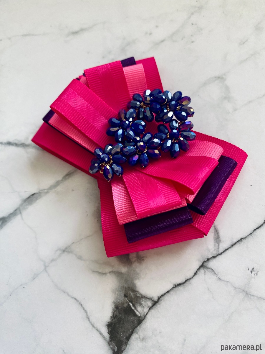 Brosza w kolorze fuksji, fioletu i pudrowego różu.