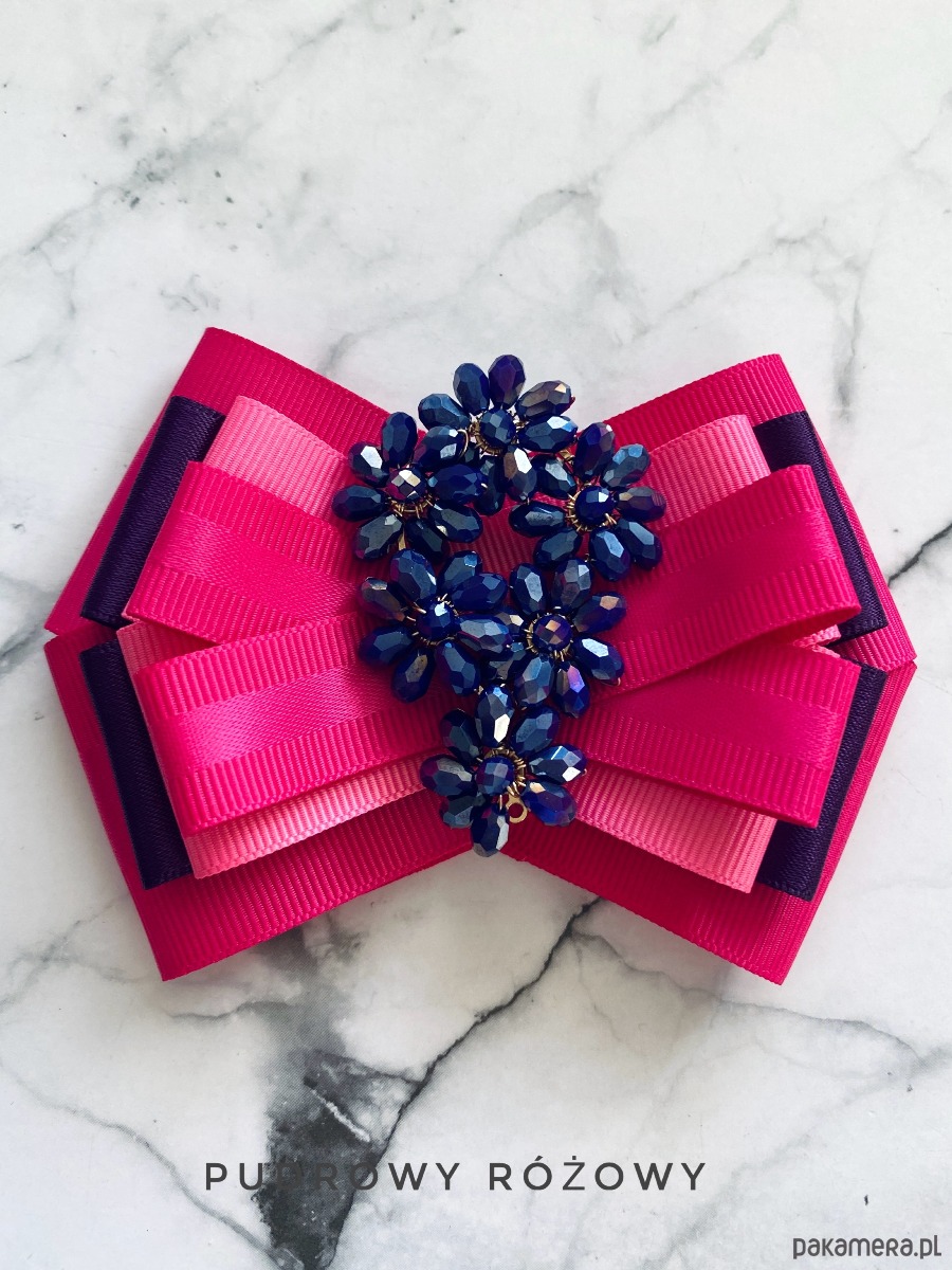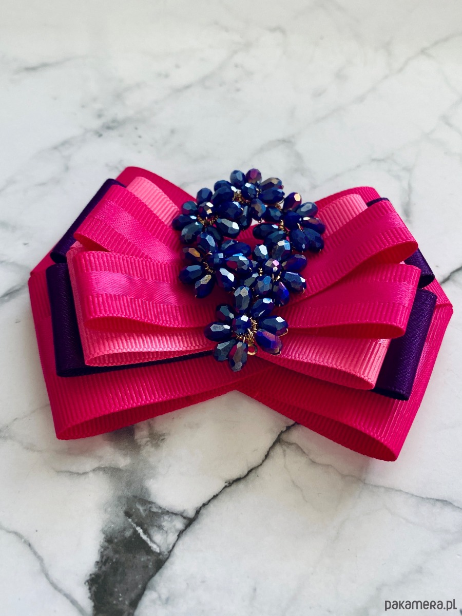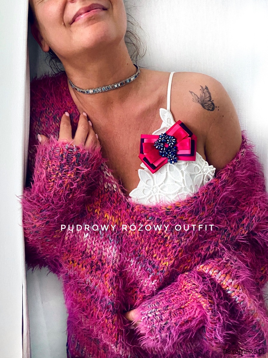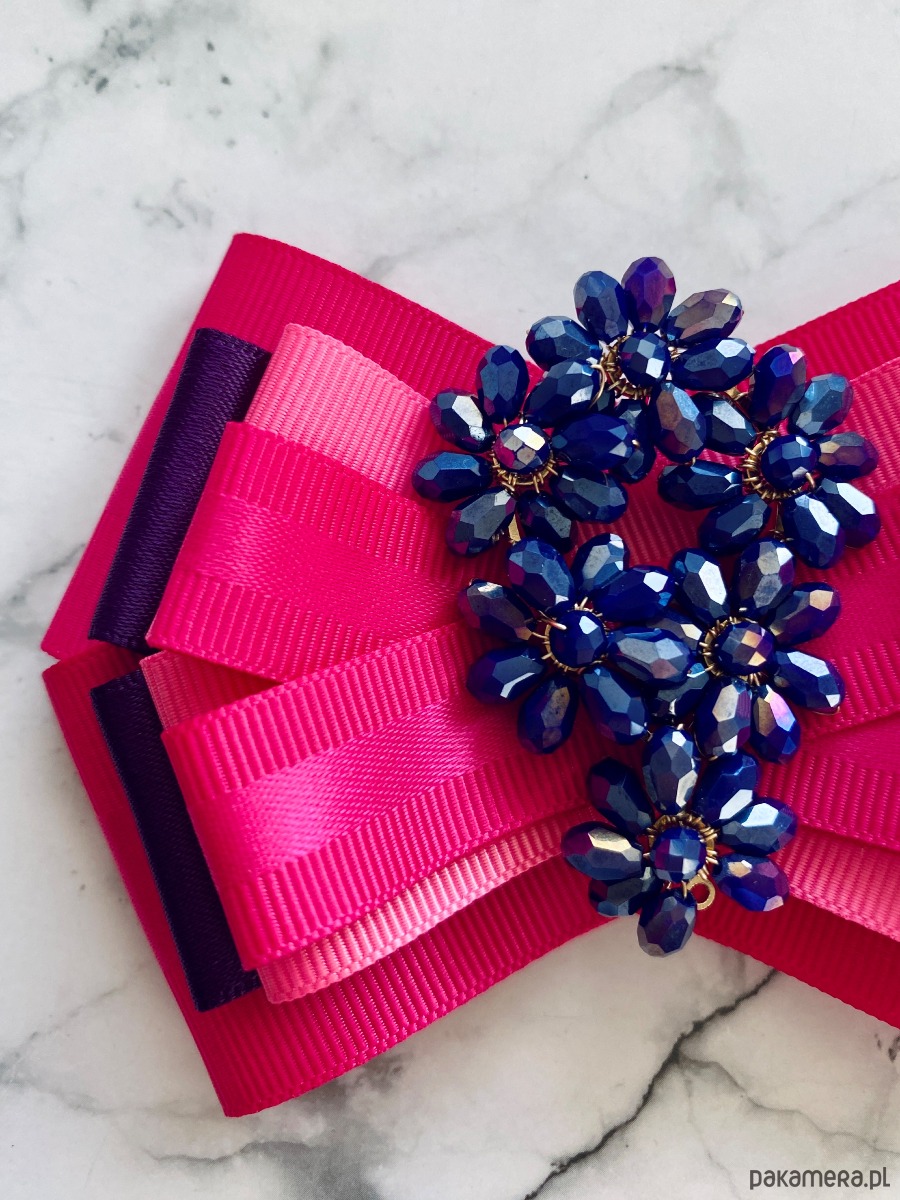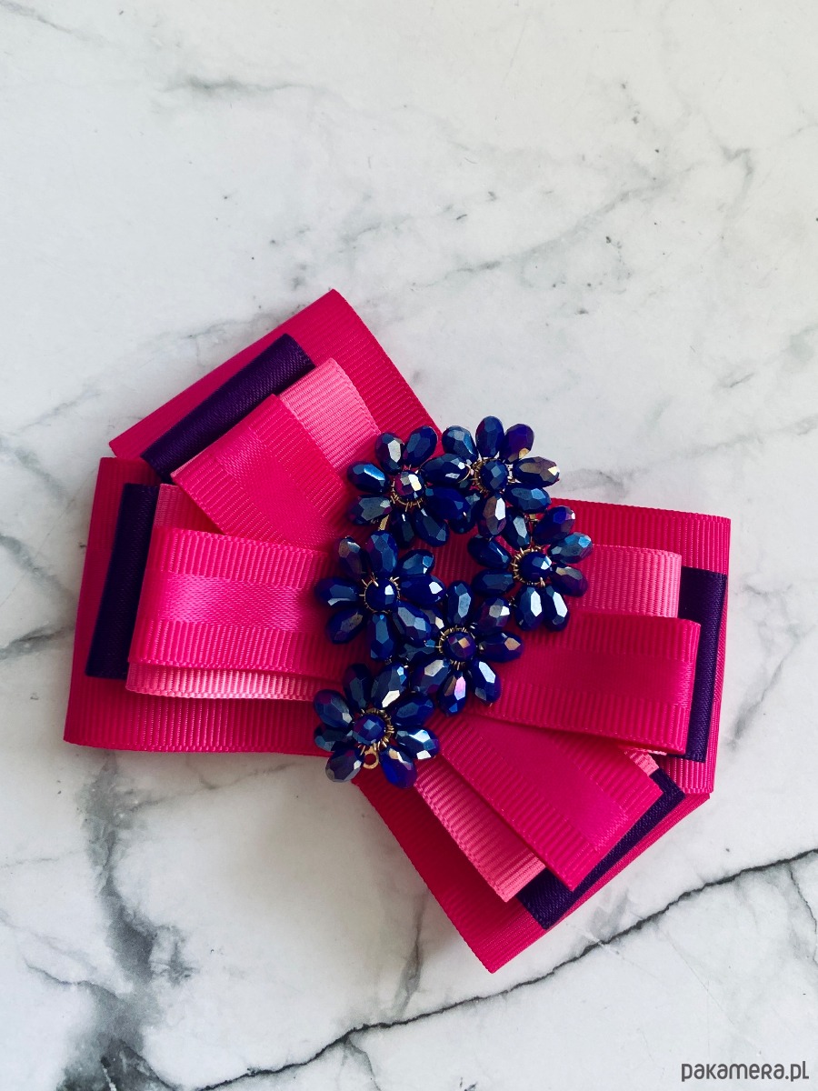 Brosza w kolorze fuksji, fioletu i pudrowego różu.