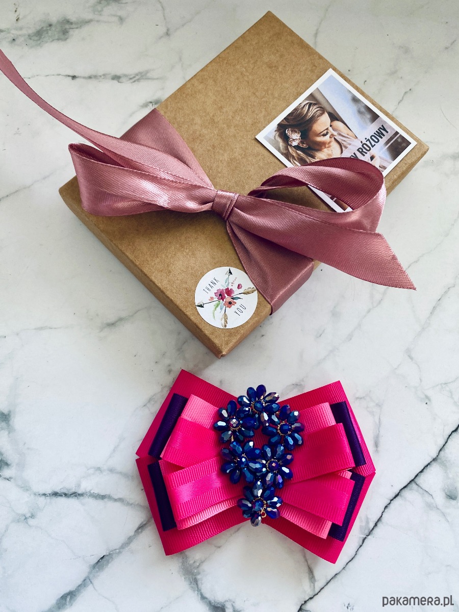 Broszka wykonana z wysokiej jakości taśm i dodatków.