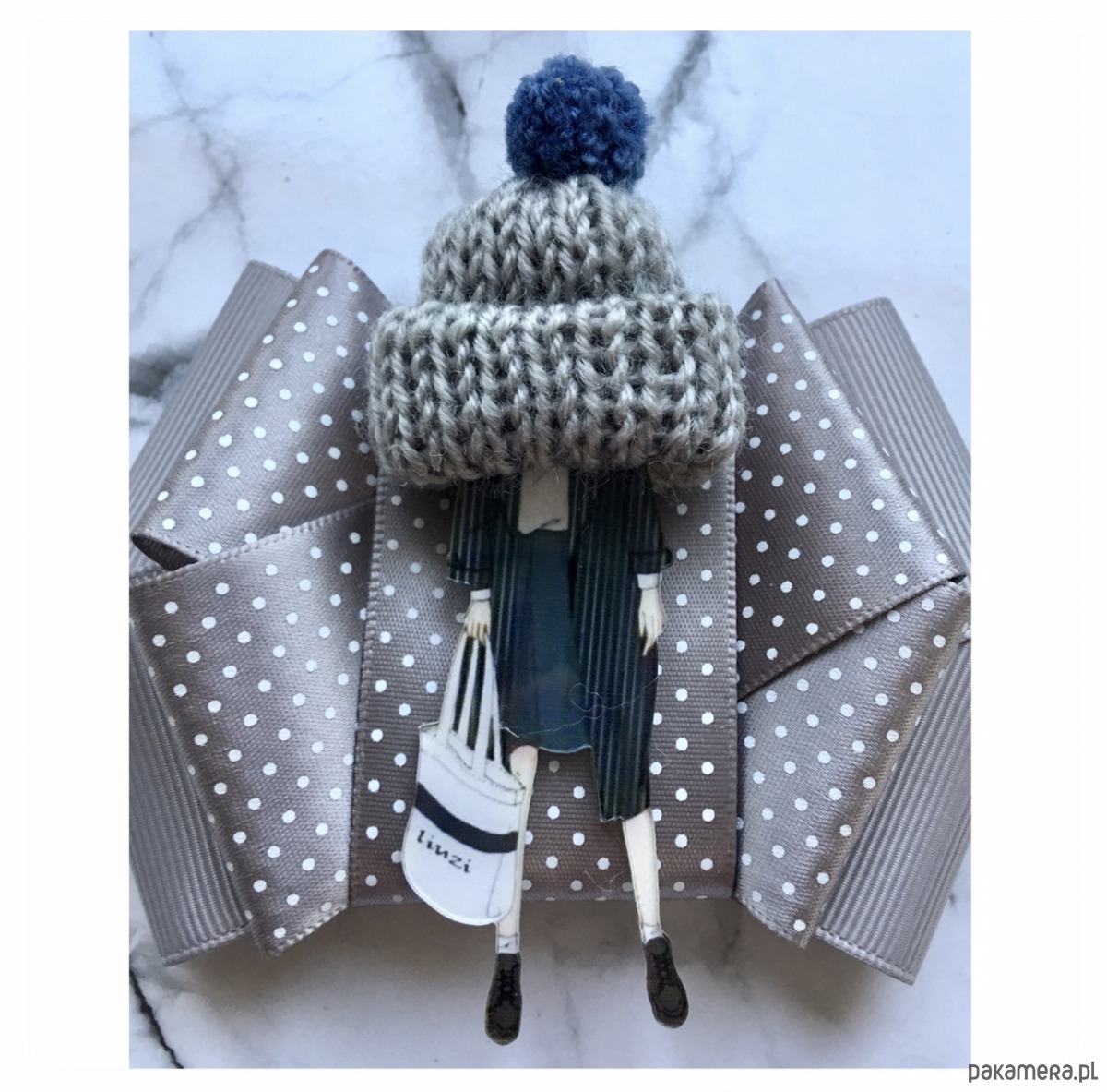Broszka wykonana z wysokiej jakości taśm i dodatków. Broszka w najmodniejszych kolorach tego sezonu. Piękna dekoracyjna ozdoba naszyta na środku. Duża Lalka w wełnianej czapie . Będzie idealnie pasować zarówno do koszul, bluzek, swetrów, sukienek, żakietów oraz do płaszczy, kurtek, szali i chust. Idealna do każdej stylizacji, zarówno do sportowej jak również do eleganckich stylizacji.
