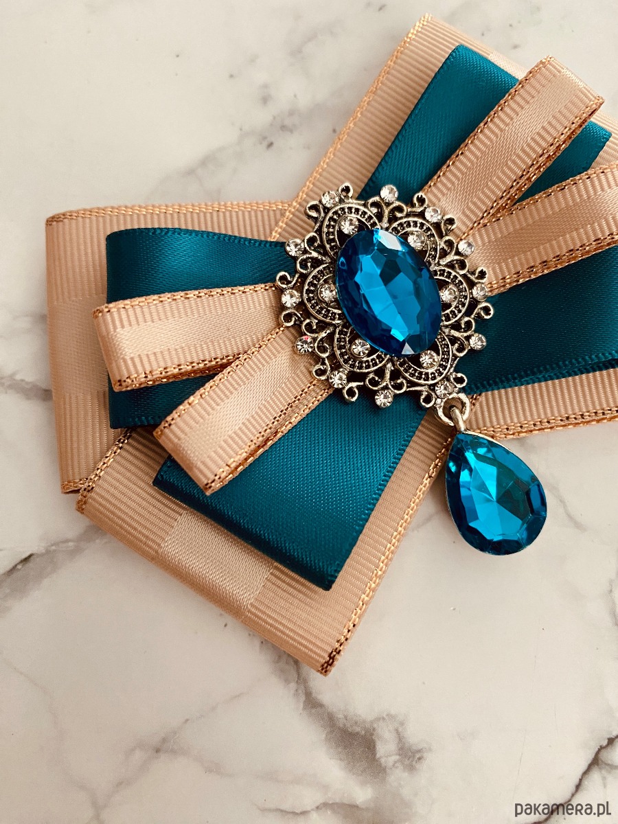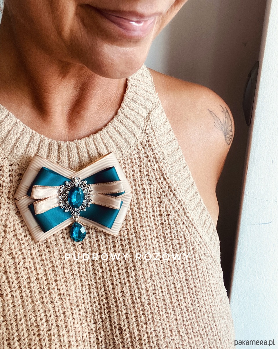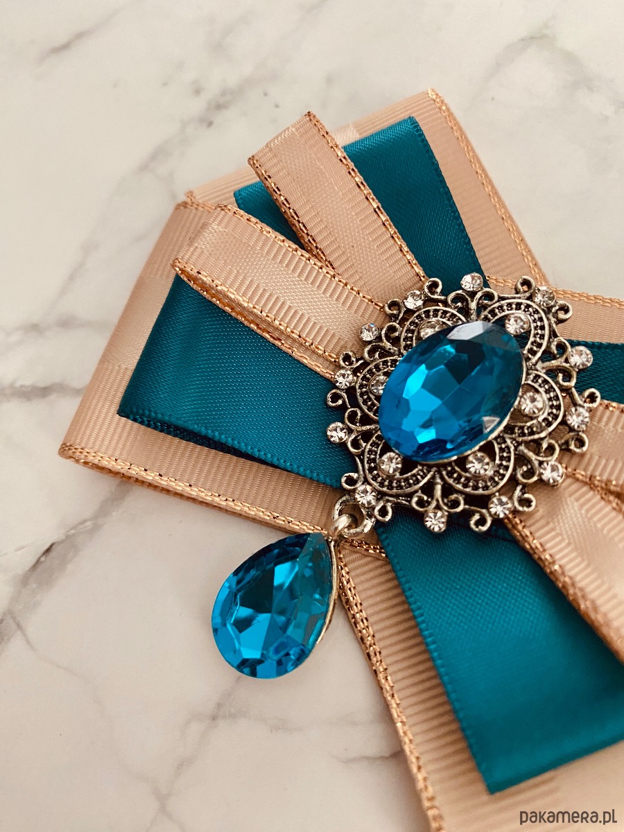 Brosza w lazurowym wydaniu. Beż w połączeniu z niebieskim w lazurowym odcieniu. Duet niebanalny aczkolwiek przepiękny.