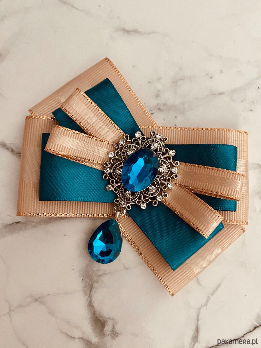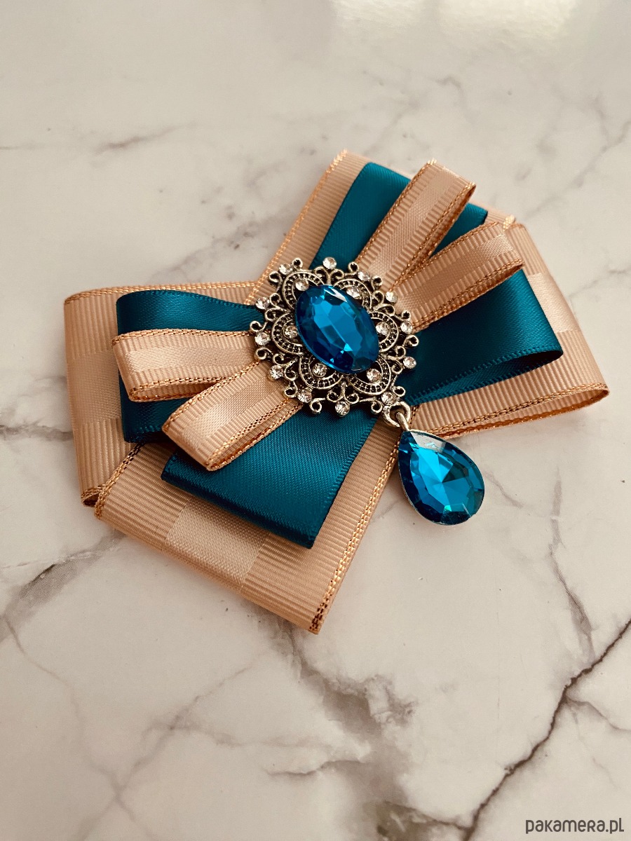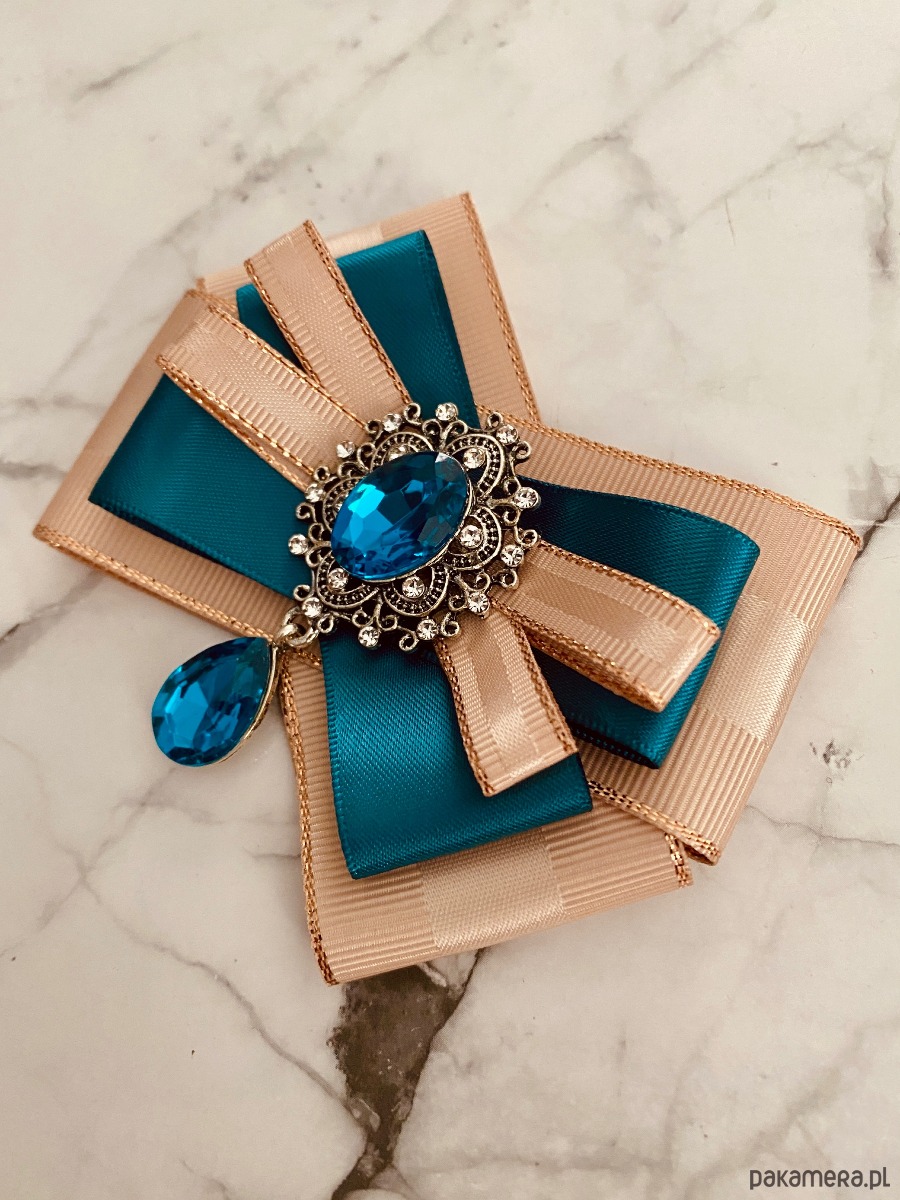 Broszka wykonana z wysokiej jakości taśm i dodatków.