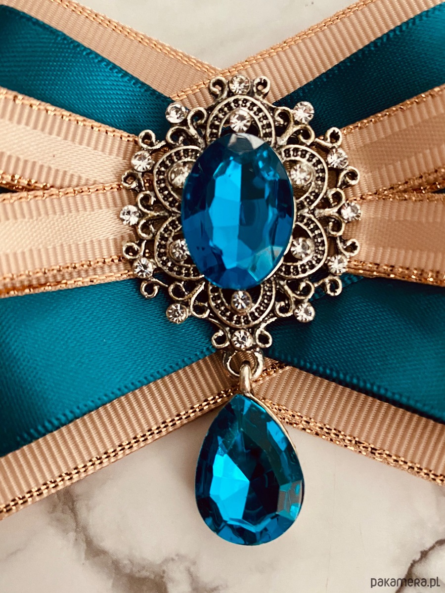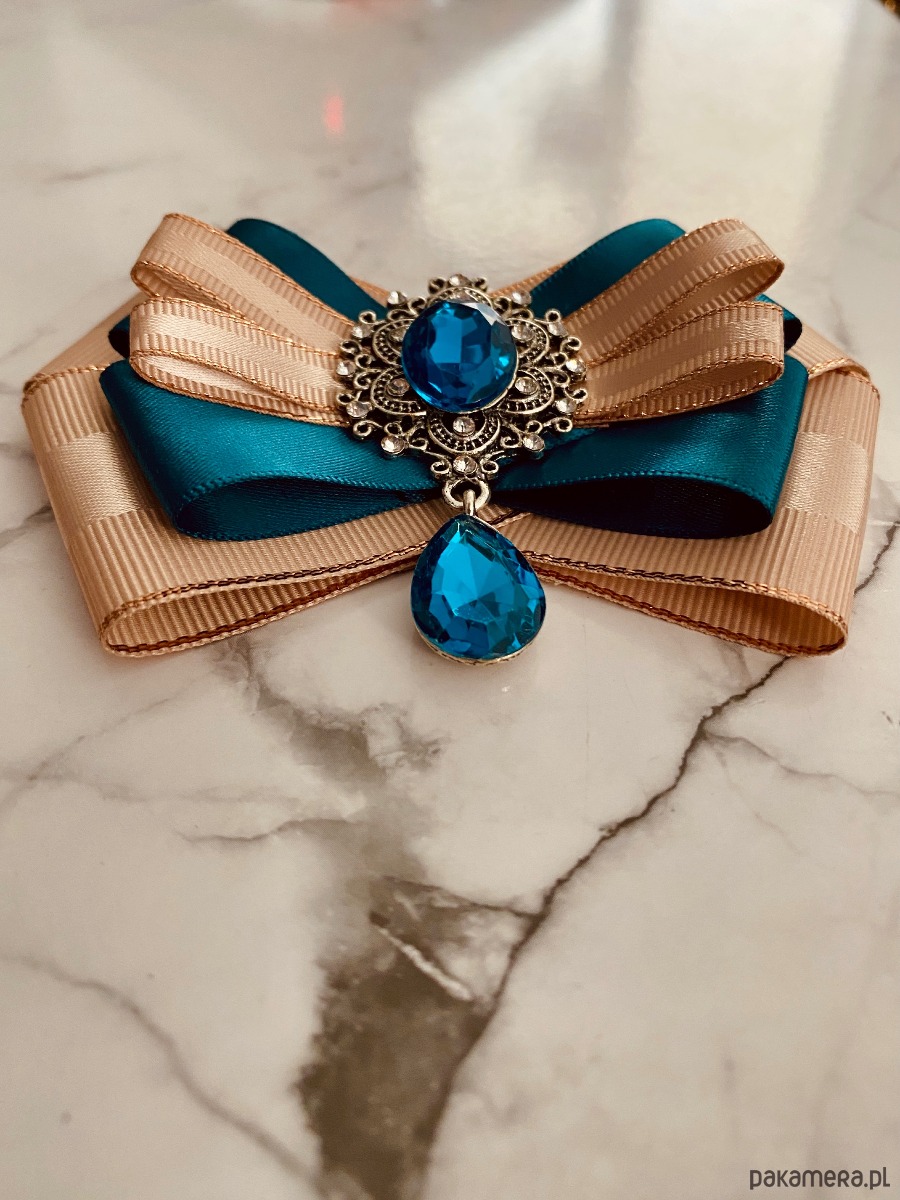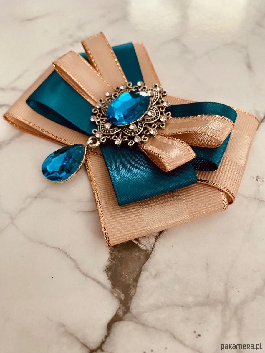 Broszka wykonana z wysokiej jakości taśm i dodatków.