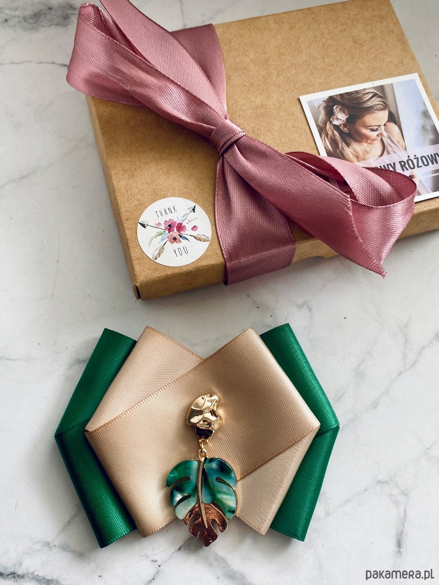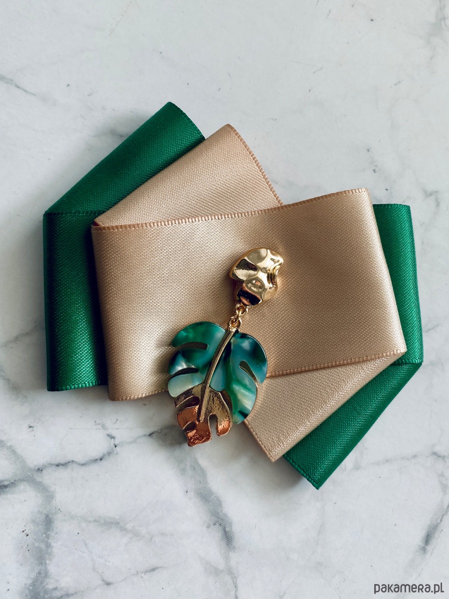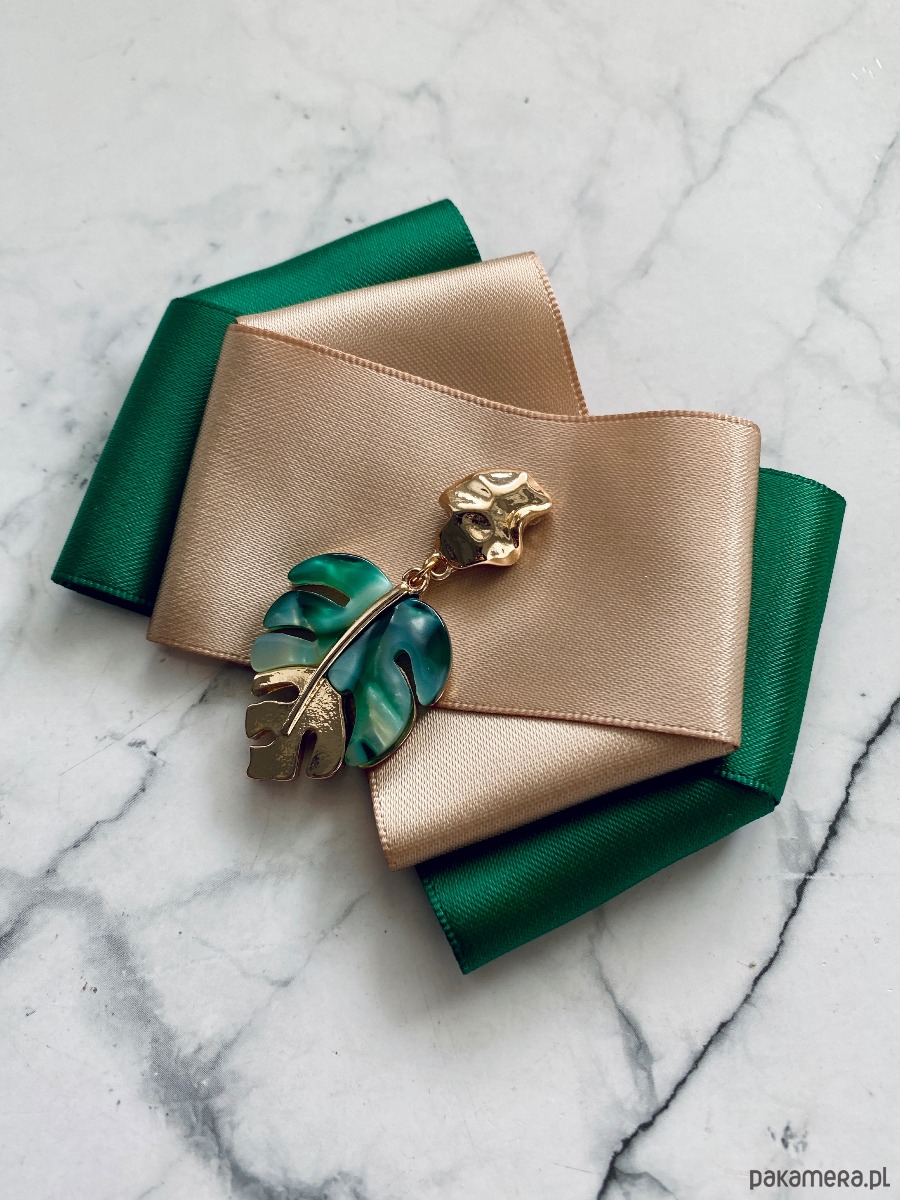 Broszka wykonana z wysokiej jakości taśm i dodatków.